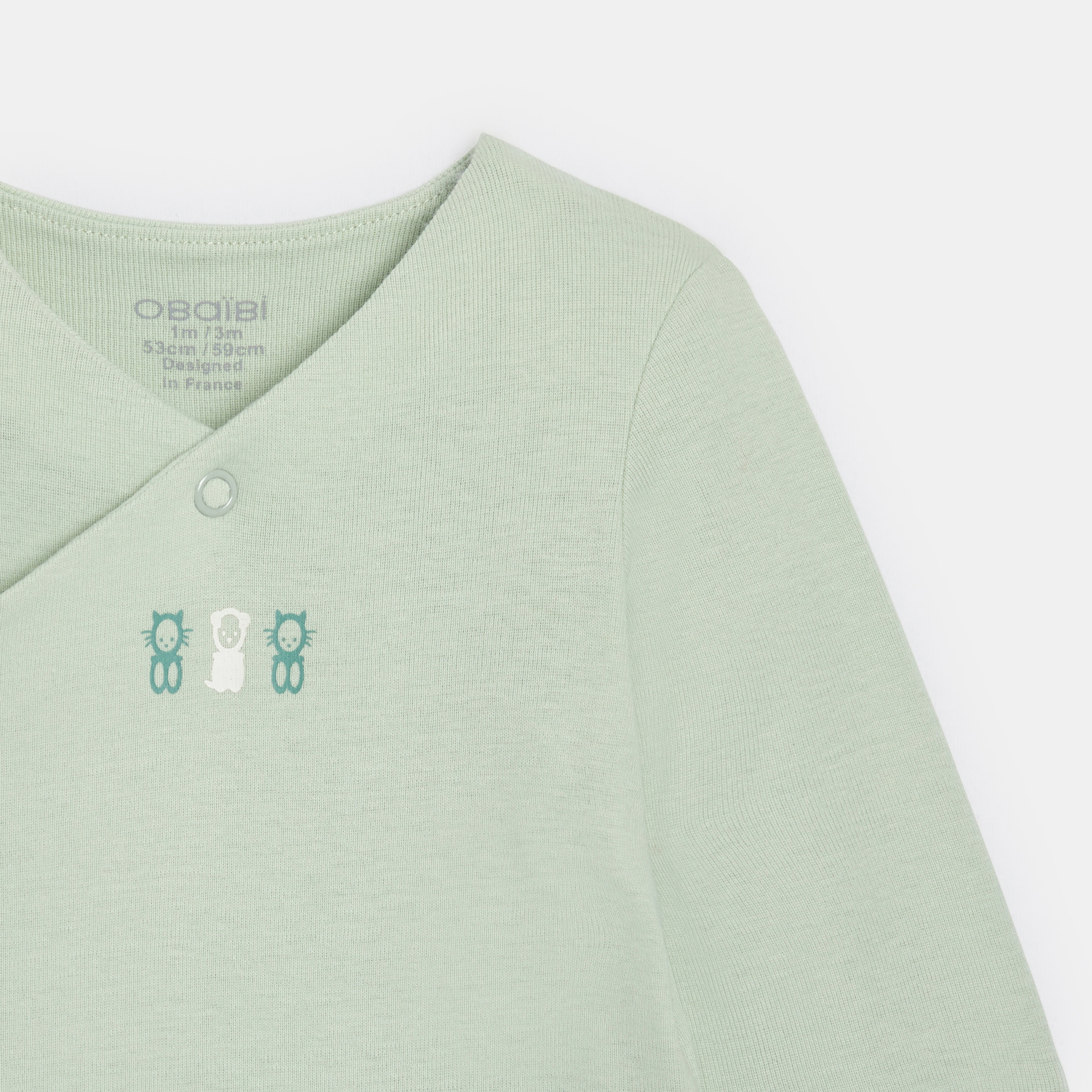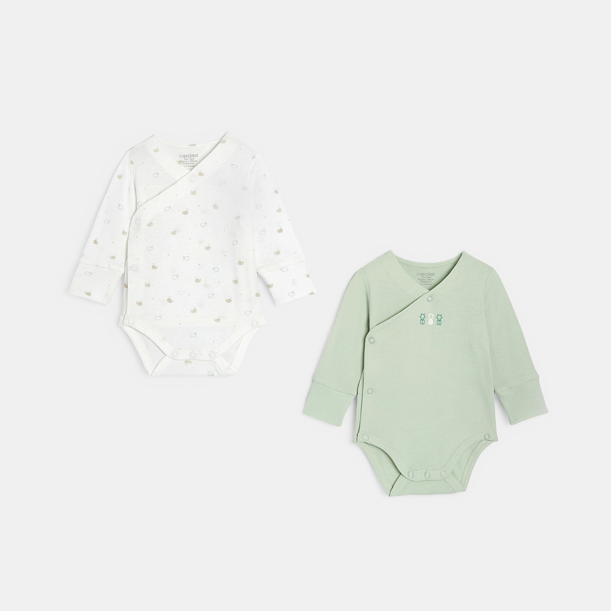Проектирано да расте заедно с бебето, това боди има два реда копчета за пристягане в областта на крачола и сгъваеми ръкави. Кръстосано закопчаване с копчета за лесно обличане. Комплект от две бодита.