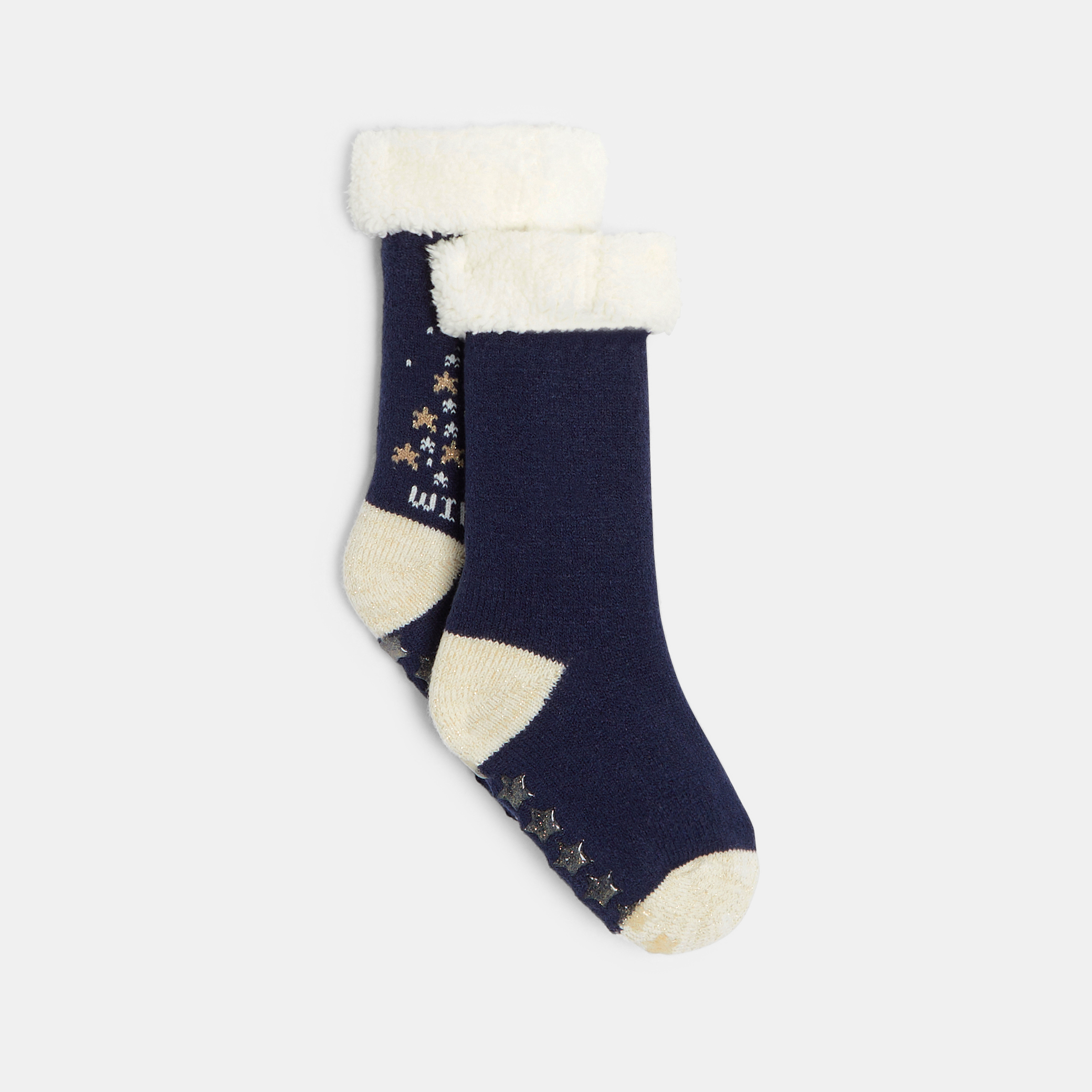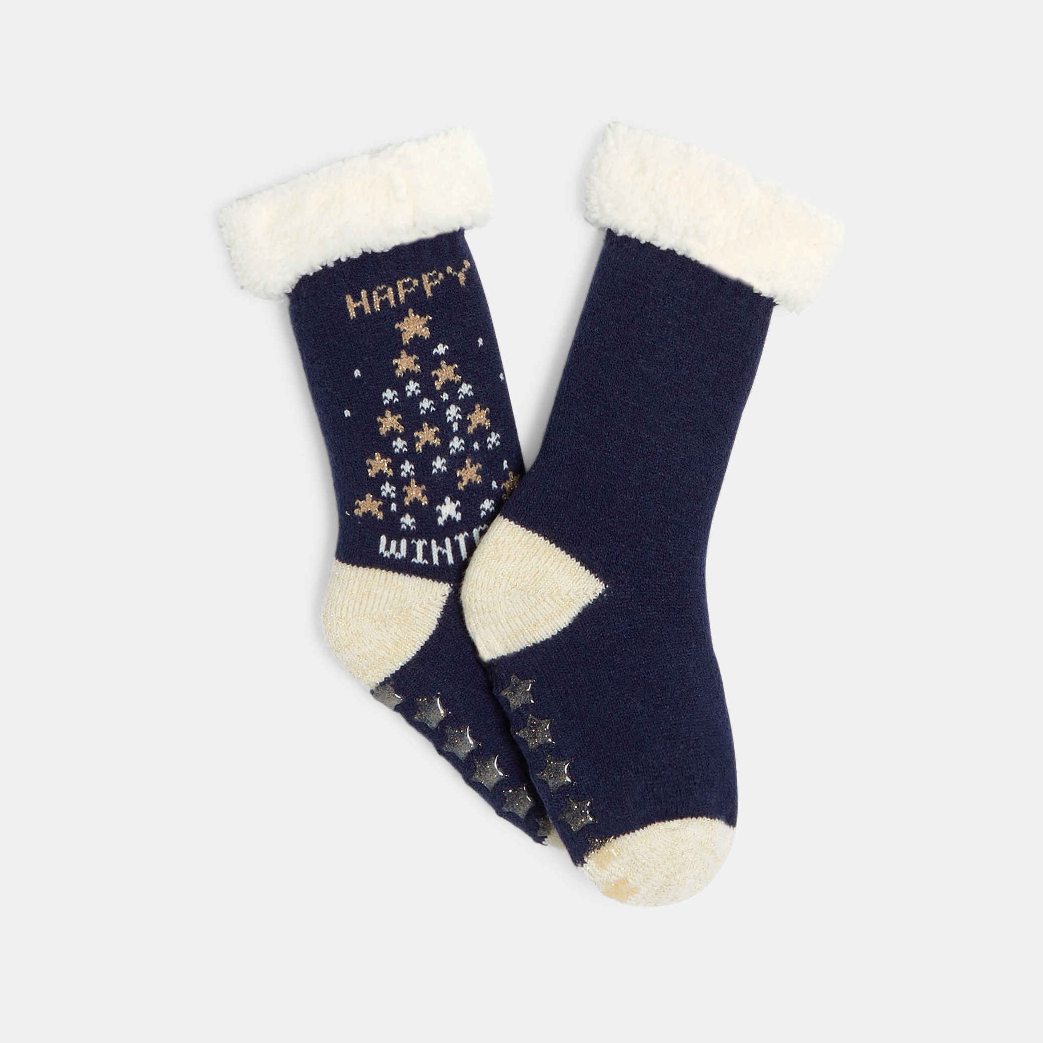 Много меки и непързалящи се: този чифт високи чорапи поддържат краката на момичетата топли! Чорапи - чехли от мека, еластична плетка, подплатени с вълна от шерпа. Коледен мотив. Маркирана пета и пръсти. Идея за подарък.