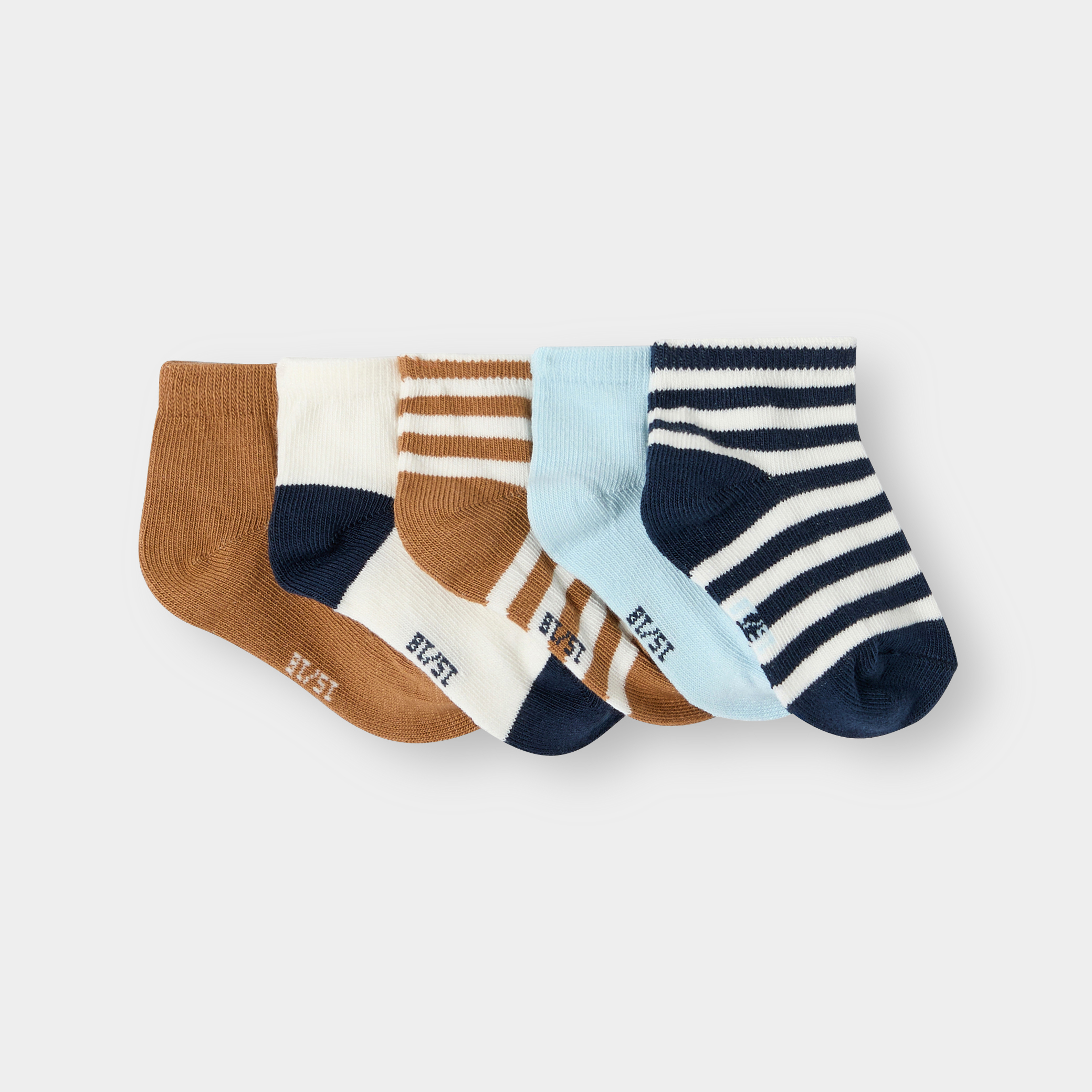 Добавете нотка мекота към ежедневието с този комплект чорапи до глезена, съответстващи на колекцията Obaïbi. Изработени от меко памучно трико за максимален комфорт на момчетата. Лесни за обуване, идеални за натоварени сутрини. Размерът е отпечатан на подметката. Комплект от 5 чифта, на райета или едноцветни, идеални за всеки повод.