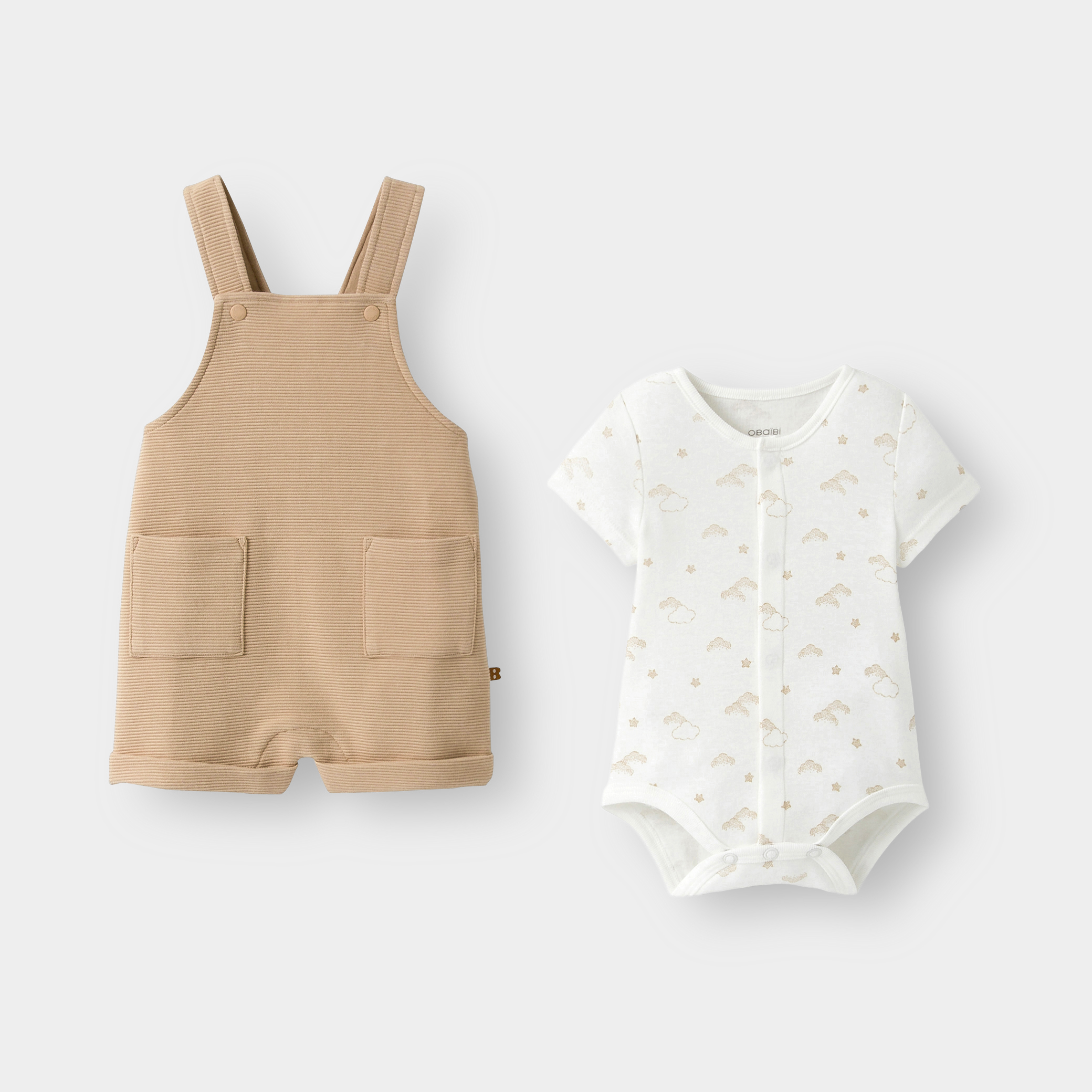 За летните дни малчуганите ще бъдат обгърнати от мекота с този шикозен тоалет. Харесваме гащеризона от мек, оребрен памук за максимален комфорт. Бодито с къс ръкав допълва комплекта. Лесно обличане благодарение на закопчаванията с тик-так отпред.Състав