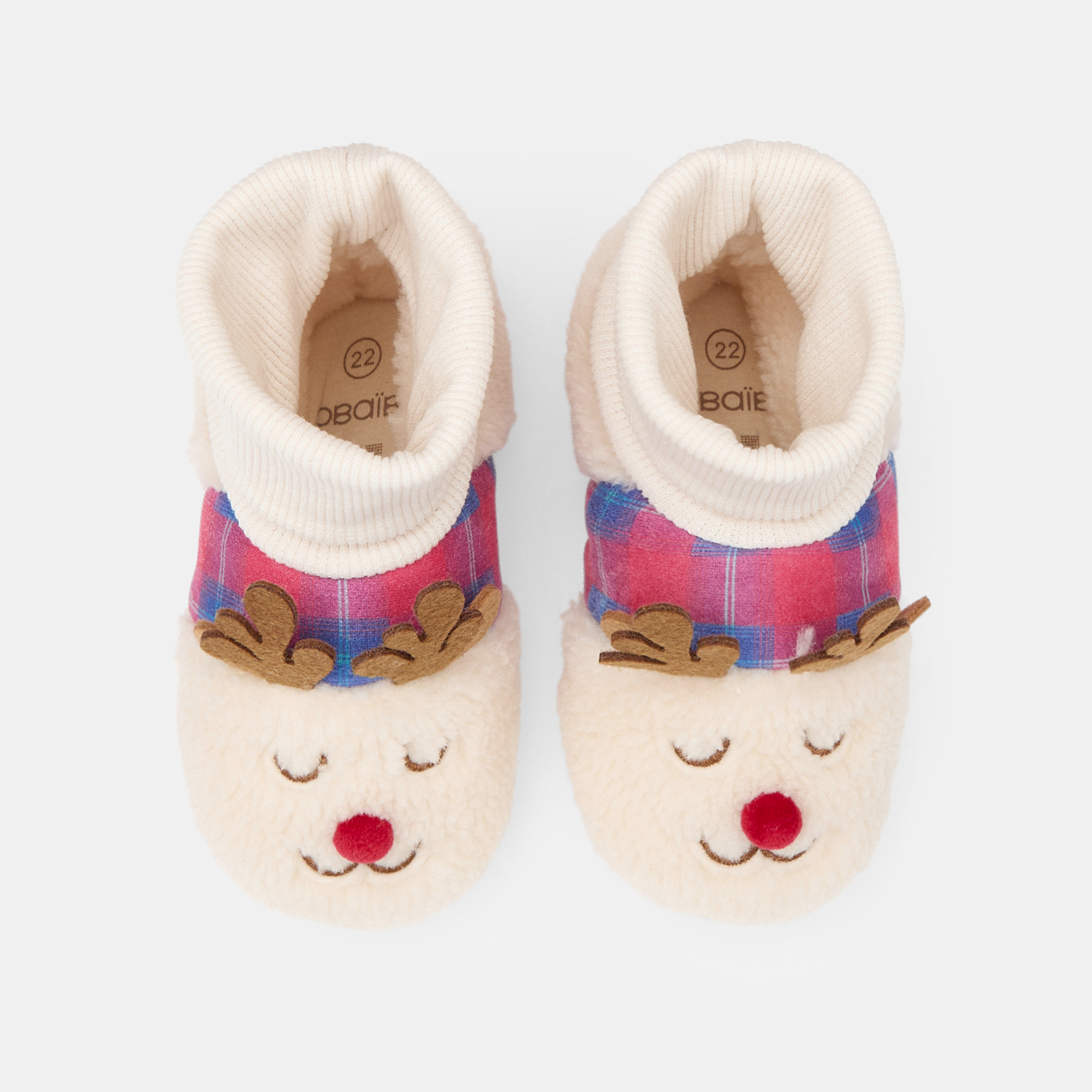 Облечени в празнични цветове, чак до пръстите на краката! Малчуганите ще харесат комфорта и мекотата на тези забавни пантофки, които ще държат малките им крачета топли! Лесен за обуване дизайн, точно като чорап.