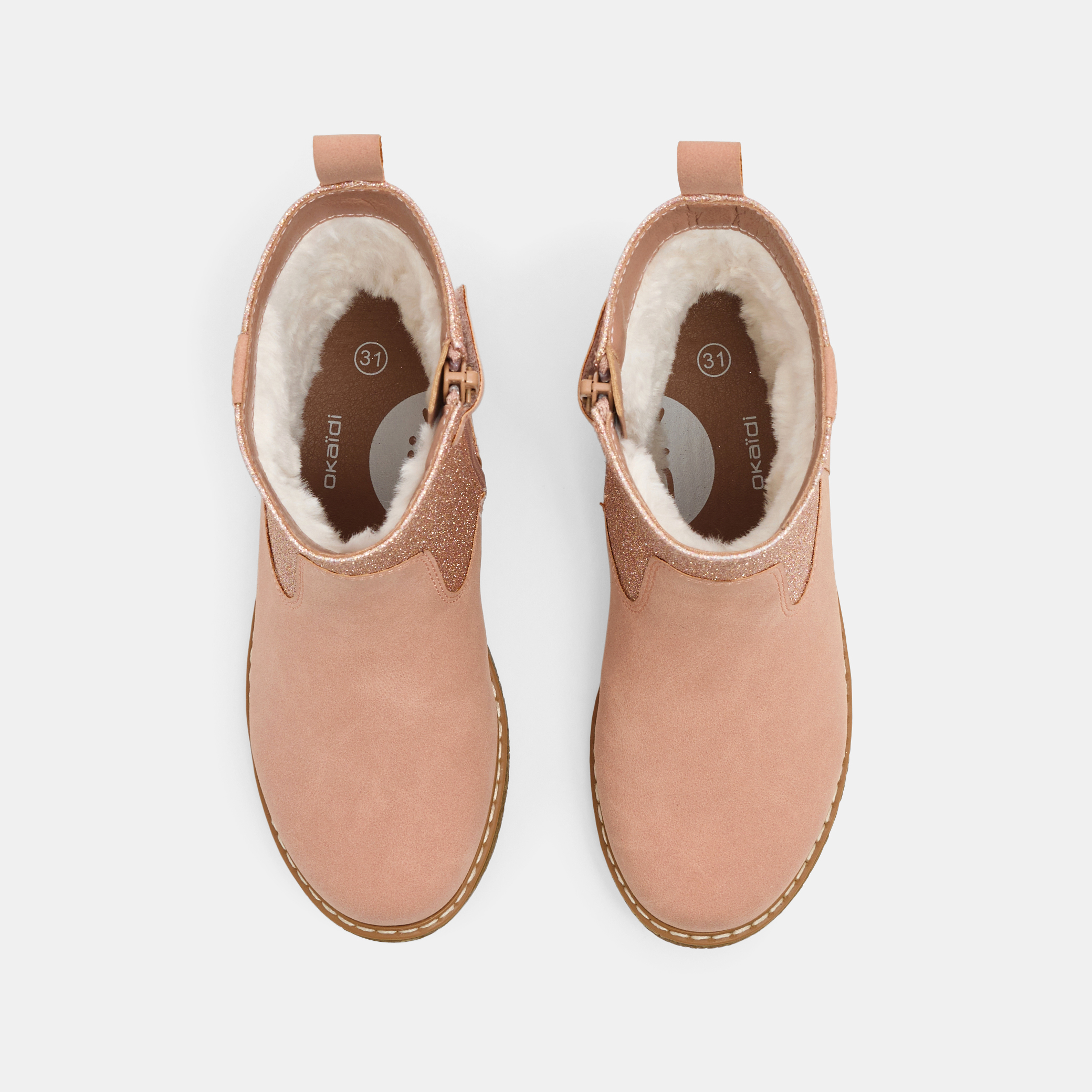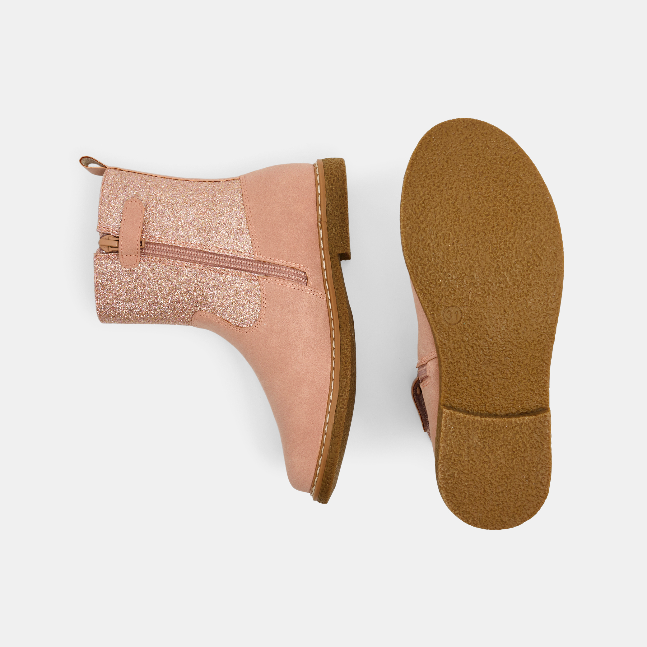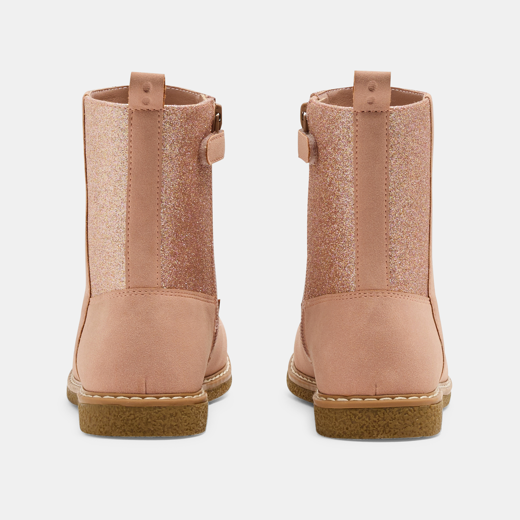 Ето чифт ботуши, които всяко момиче иска: брокат, които да накарат очите ѝ да блестят, розов цвят, който да подхожда на гардероба ѝ, и кожена подплата за топлина! Закопчаване с цип отстрани. Плоска подметка.Състав