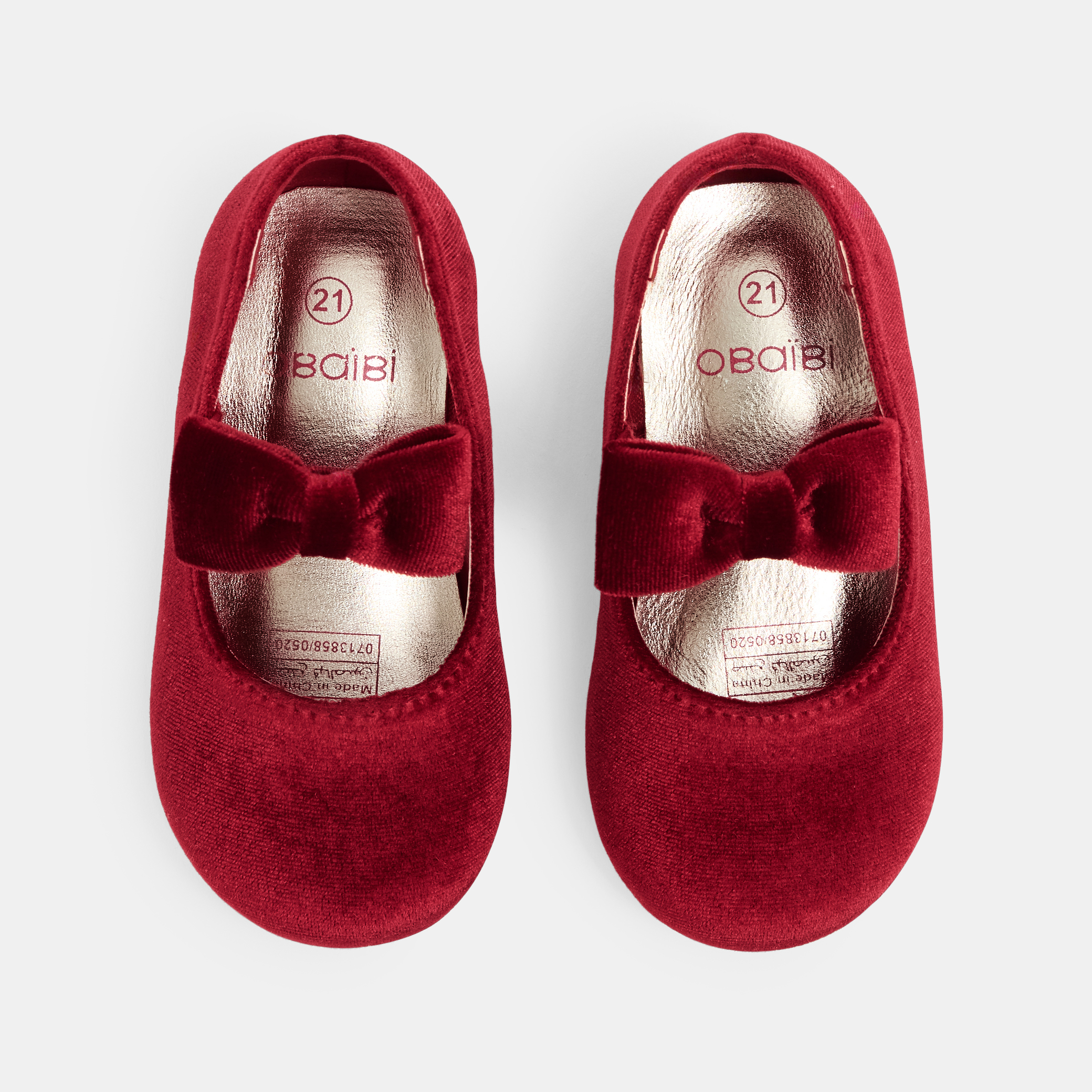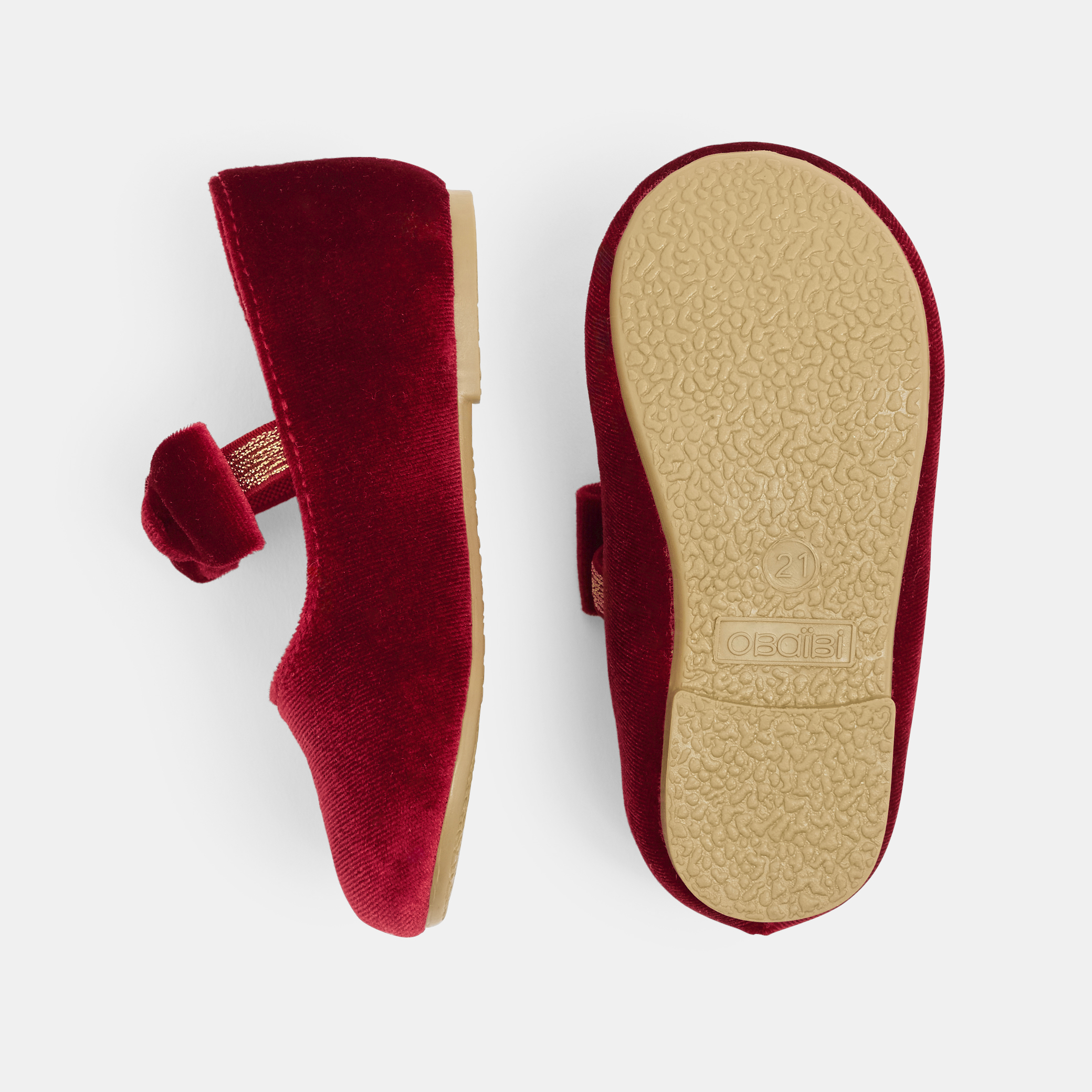 Кадифето винаги е стилен и надежден избор за аксесоар към парти облекло. Тези червени кадифени балеринки, украсени с голяма еластична панделка, ще бъдат сензация за момичетата. Те се съчетават с колекцията Obaïbi.