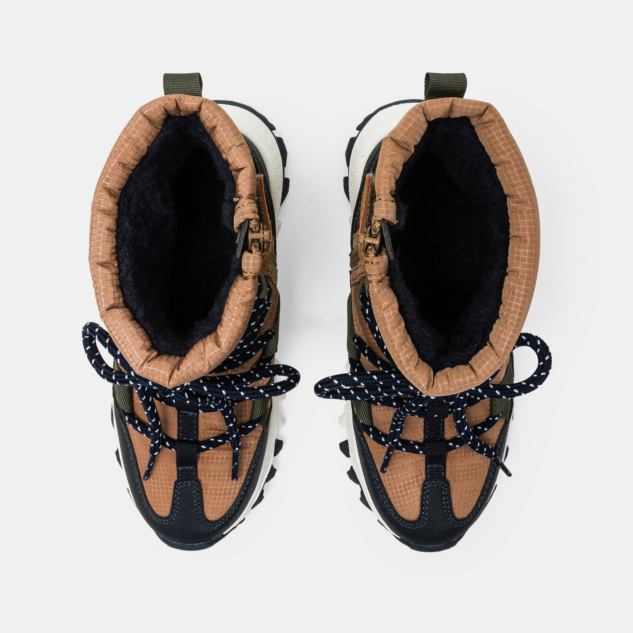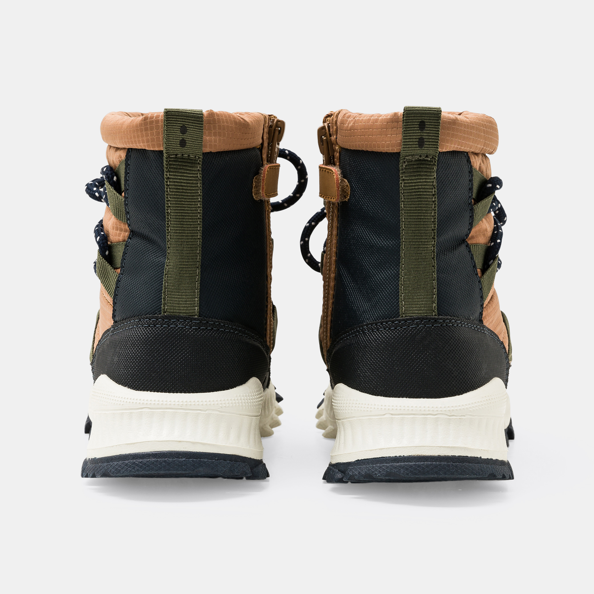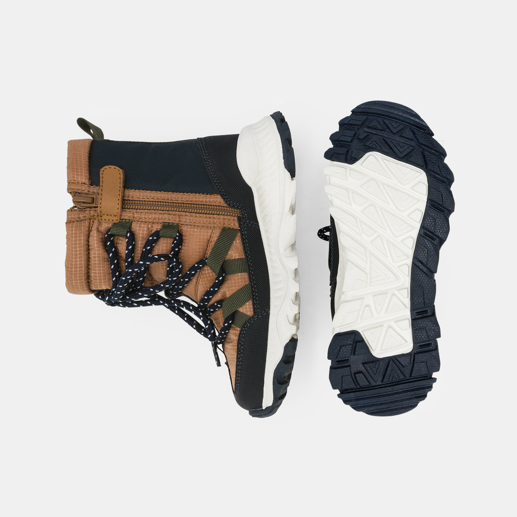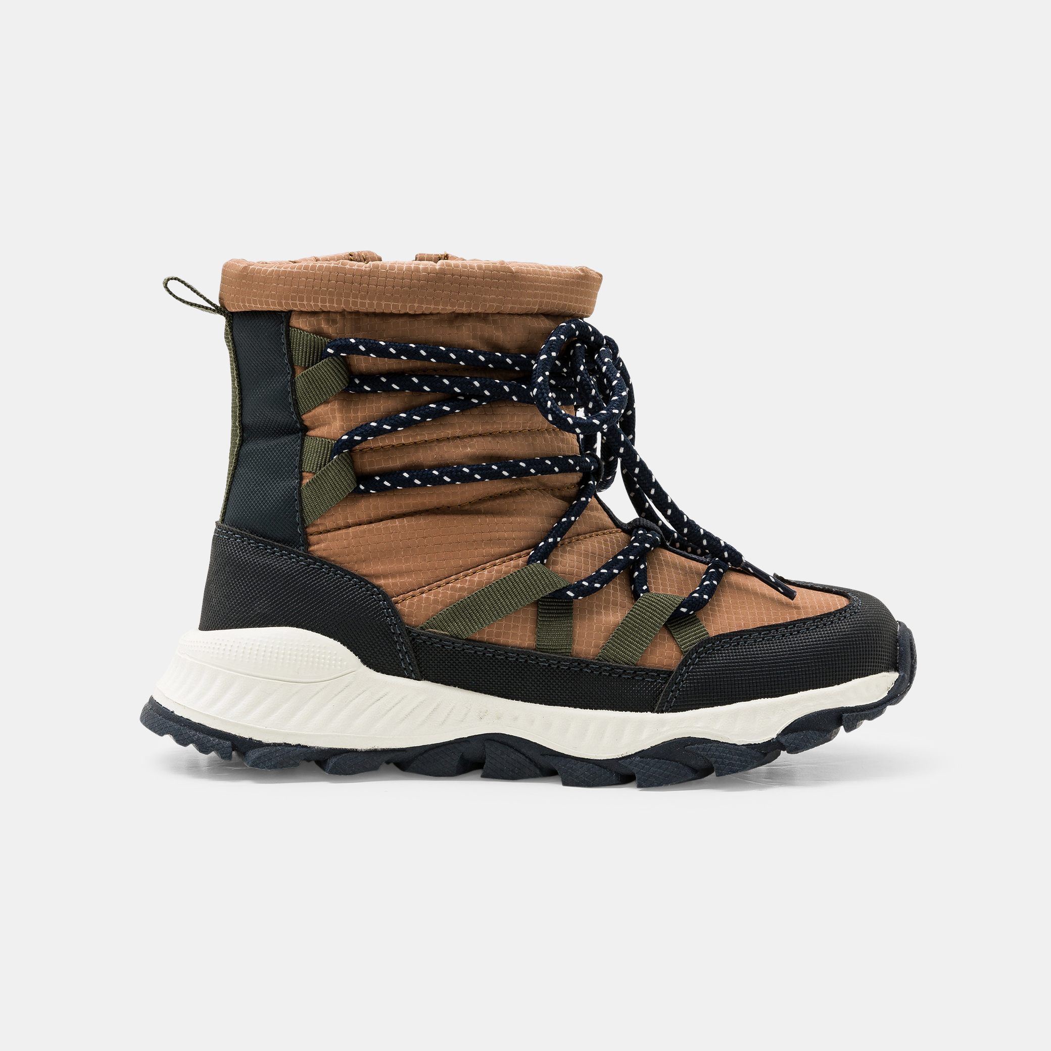 Страхотно, вали сняг! Това е идеалната възможност да обуете тези планински обувки, специално проектирани за студени дни. Високи, водоустойчиви и подплатени с изкуствена кожа, те поддържат детските крачета топли и сухи, дори в разгара на зимата. Закопчаване с връзки и странични ципове. Подметка грайфер.Състав