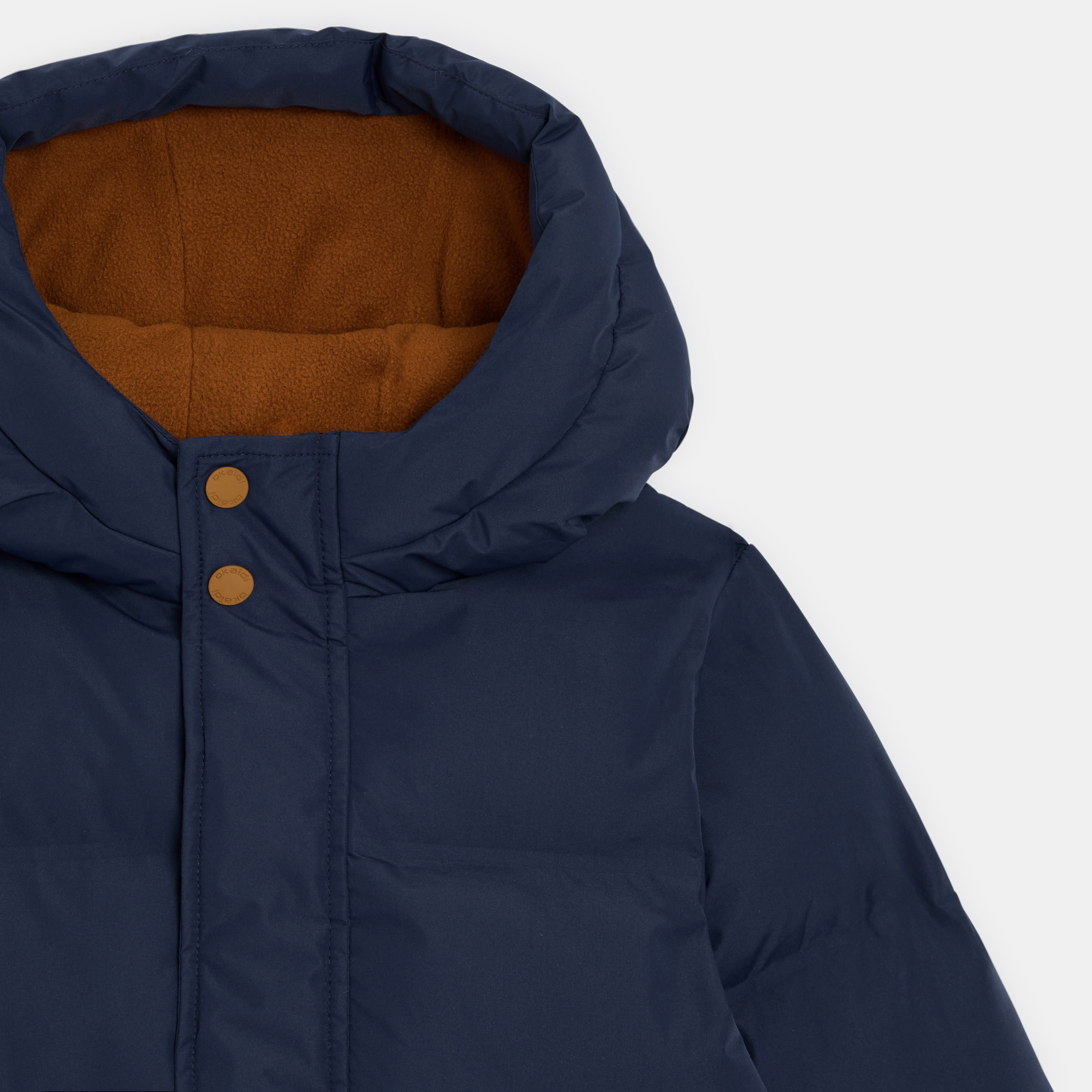 Това пухено яке е задължително за зимата! То е с по-голяма дължина и е изработено от водоотблъскваща материя с топла подплата от полар. Вградената качулка, дългите ръкави и оребрените маншети гарантират оптимален комфорт. Има два практични големи джоба с капаци. Идеален за справяне със студа всеки ден!Състав