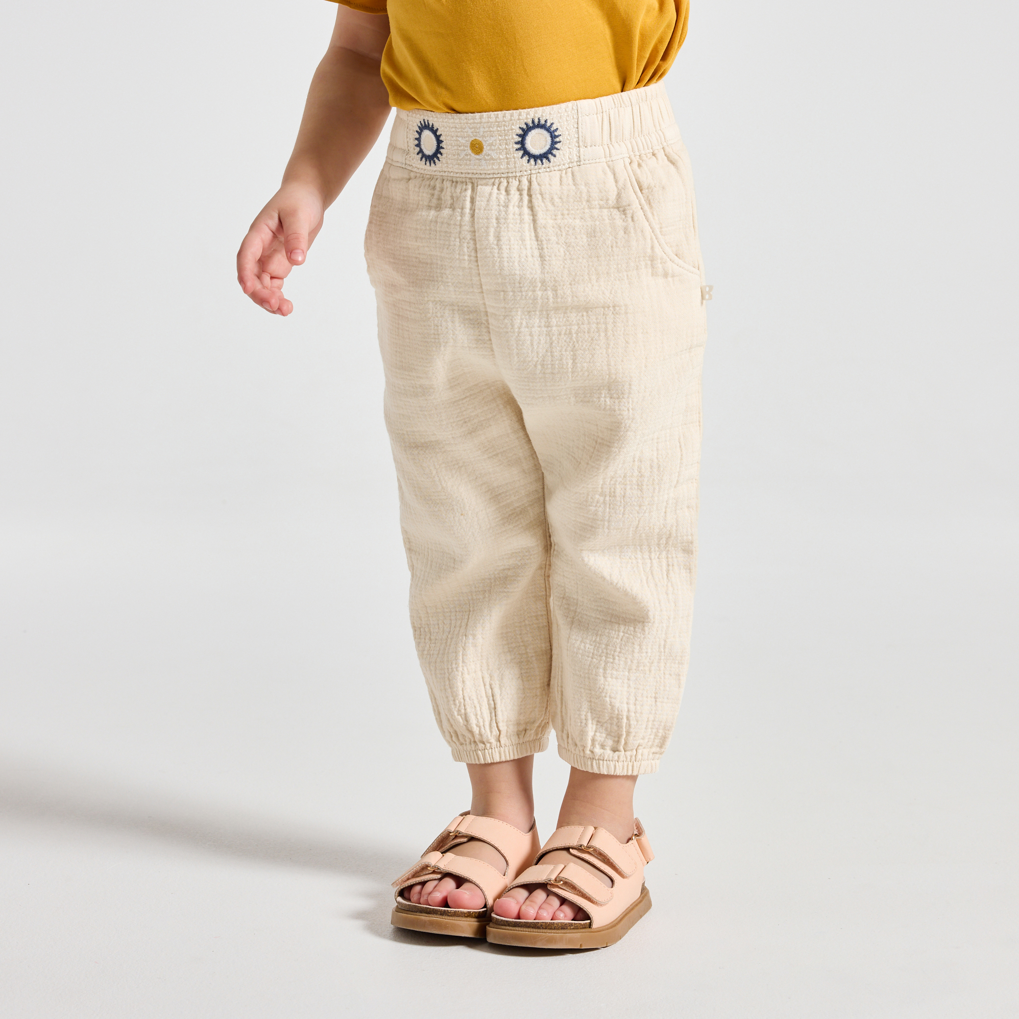 Бежови панталони от памучен плат
