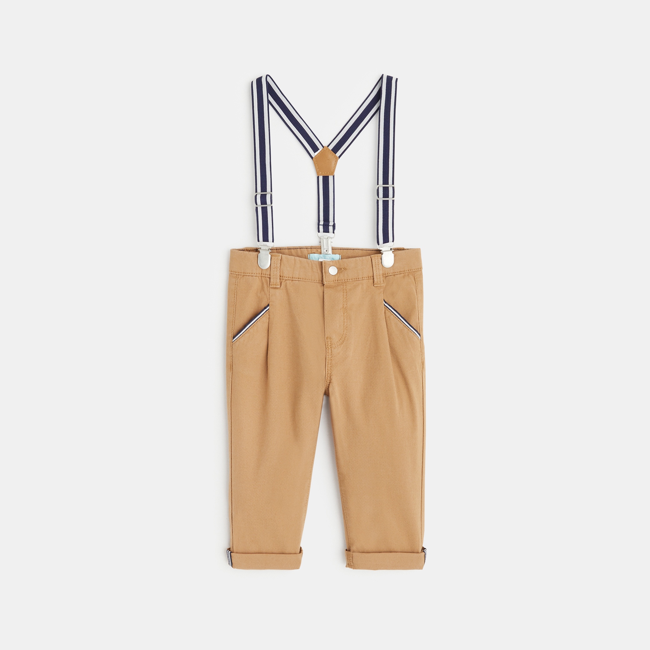 Обичаме удобната кройка на тези шикозни панталони от елегантен памук. Подвижни тиранти. Размерът се регулира с копчета.
