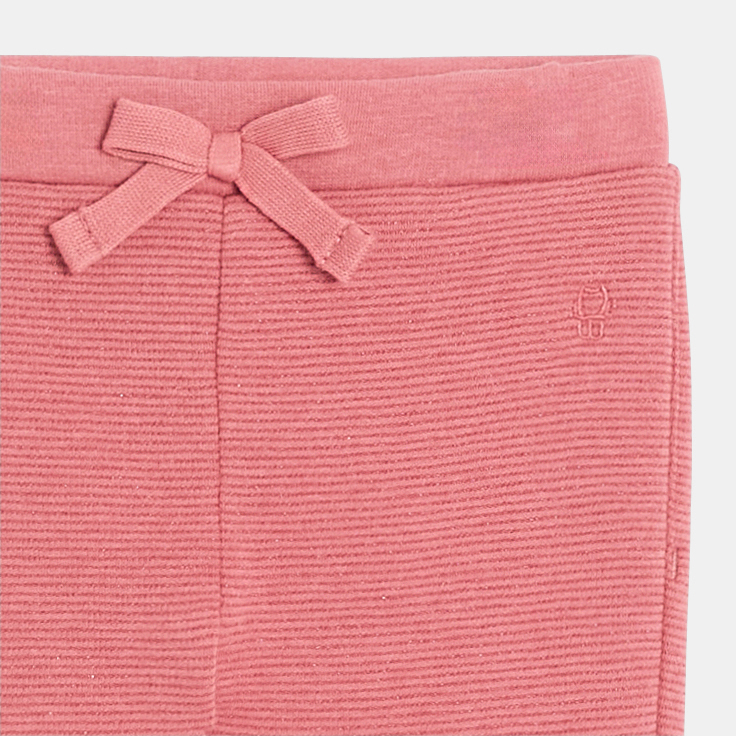 Малките момиченца могат да се движат свободно в тези еластични панталони с текстура. Приятни за носене и леко искрящи, те ще придадат елегантен вид на облеклото. Удобна плоска еластична талия.Състав