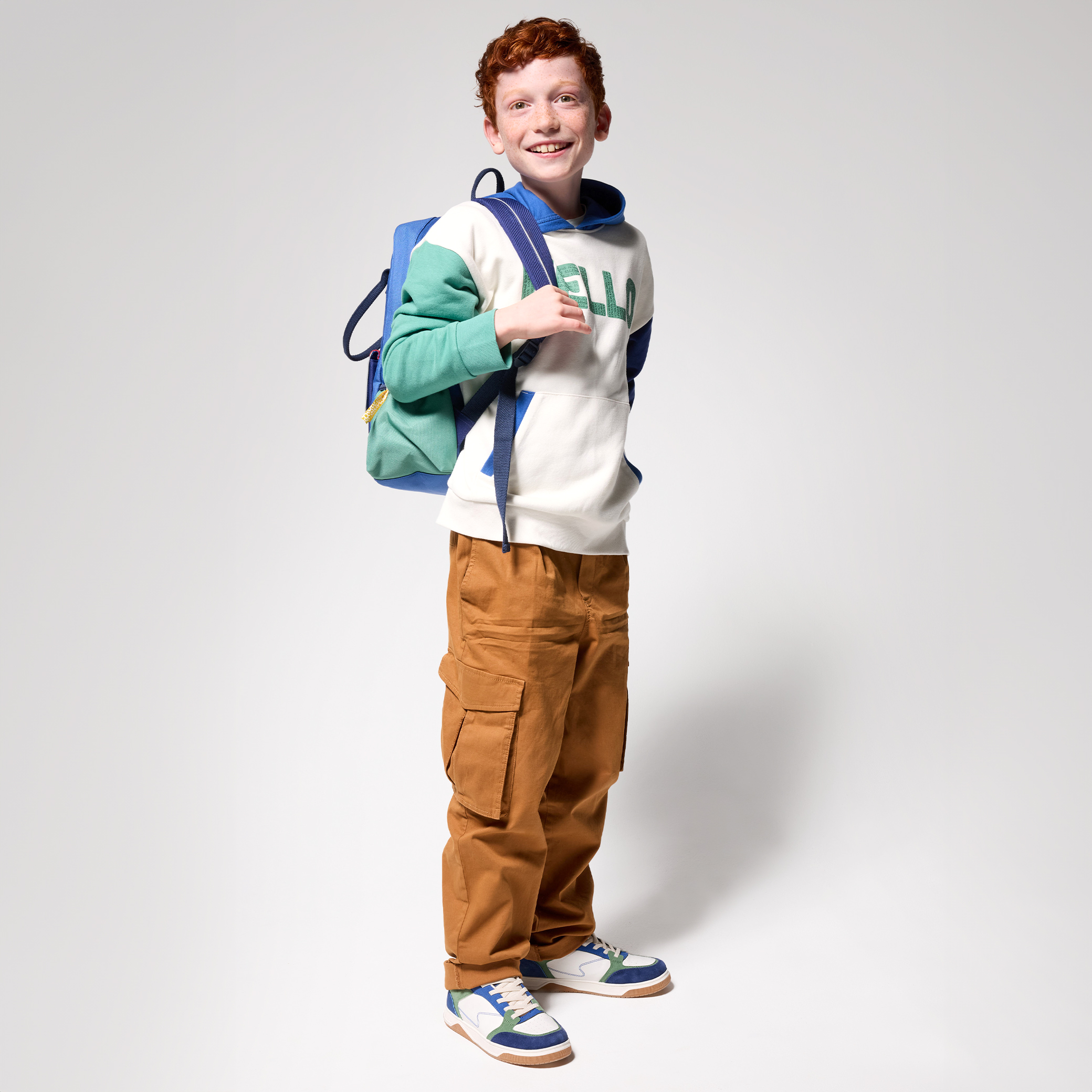 Готови за всякакви приключения в града или сред природата, момчетата ще се чувстват удобно в тези широки панталони с много джобове. Удобният регулируем колан на талията е ключов фактор при ежедневното носене. Халки за колан. Закопчаване с копчета и цип. Шевове в един тон.Състав