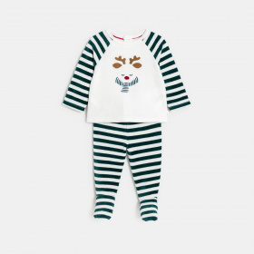 Идеална за топла зима и празнични тържества в края на годината, тази раирана пижама ще стопли нощите на момчетата. Горнище с дълги ръкави от мека боа, изцяло притиснато отзад и кадифени панталонки с крачета до 12 месеца, след това деколте с копчета отзад и еластична долна част от 18 месеца.