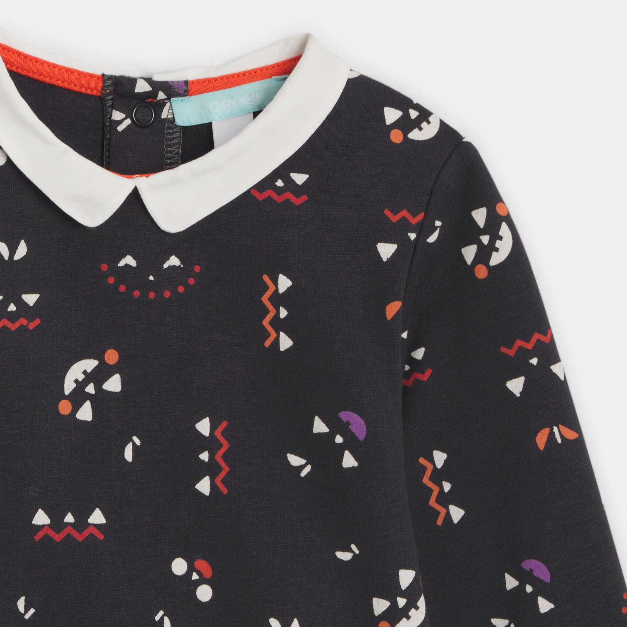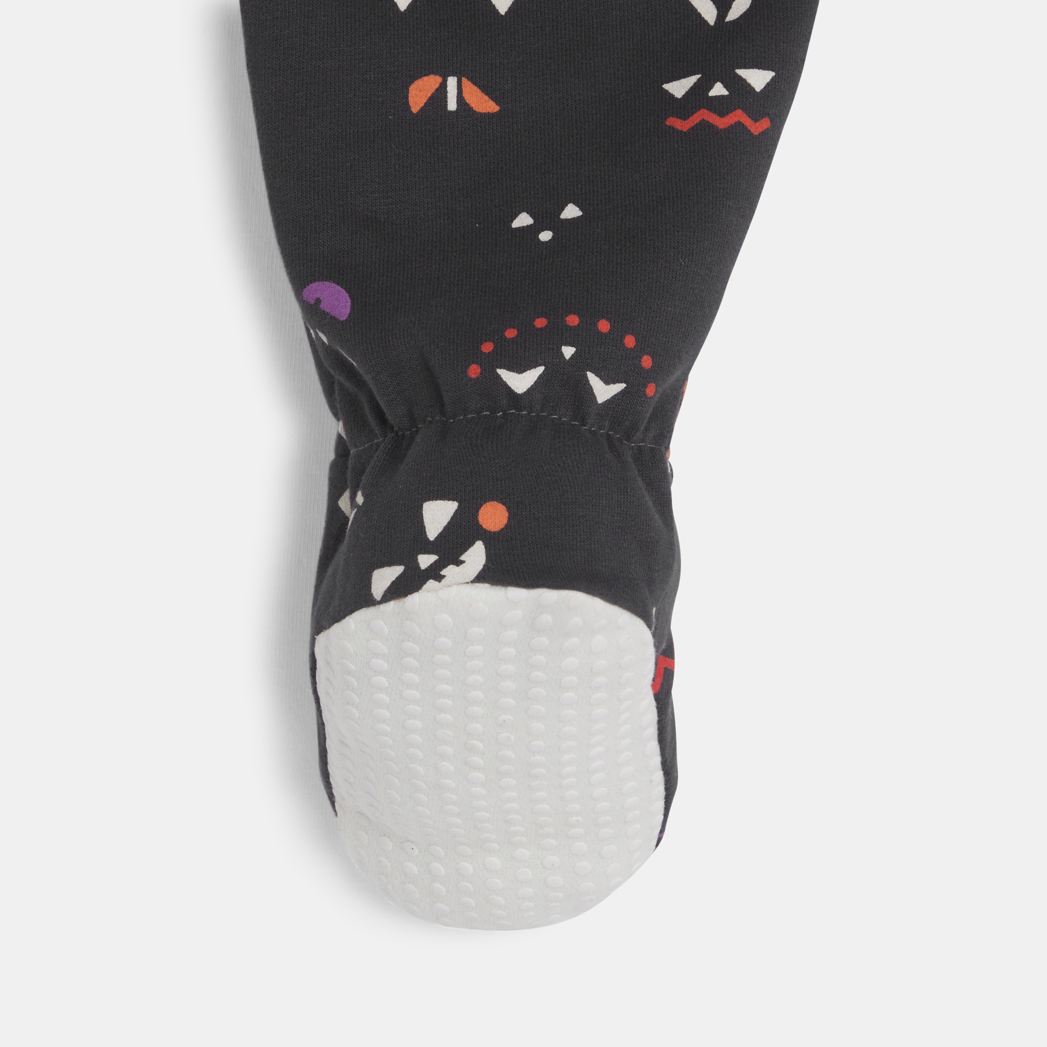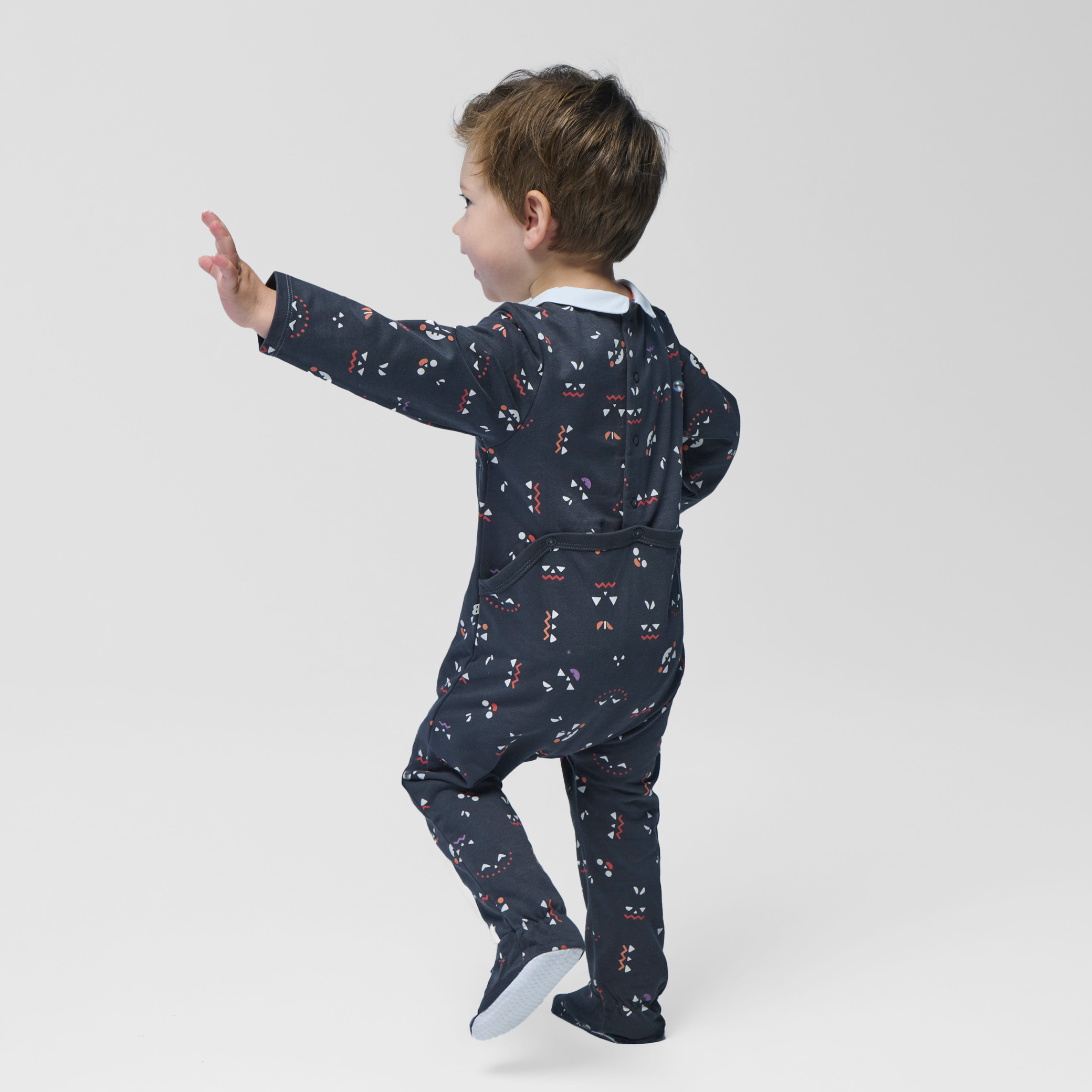 Тази очарователна светеща пижама превръщат времето за лягане в радостен момент, носейки комфорт на децата, които се страхуват от тъмното. С оригиналните си светещи в тъмното шарки, те предлагат идеално решение за нощно събуждане, без да е необходима ярка светлина в стаята на момчетата. Неплъзгащите се зони под краката осигуряват оптимална безопасност по време на първите стъпки. Закопчаванията с тик-так на гърба и презрамката улесняват обличането.Състав