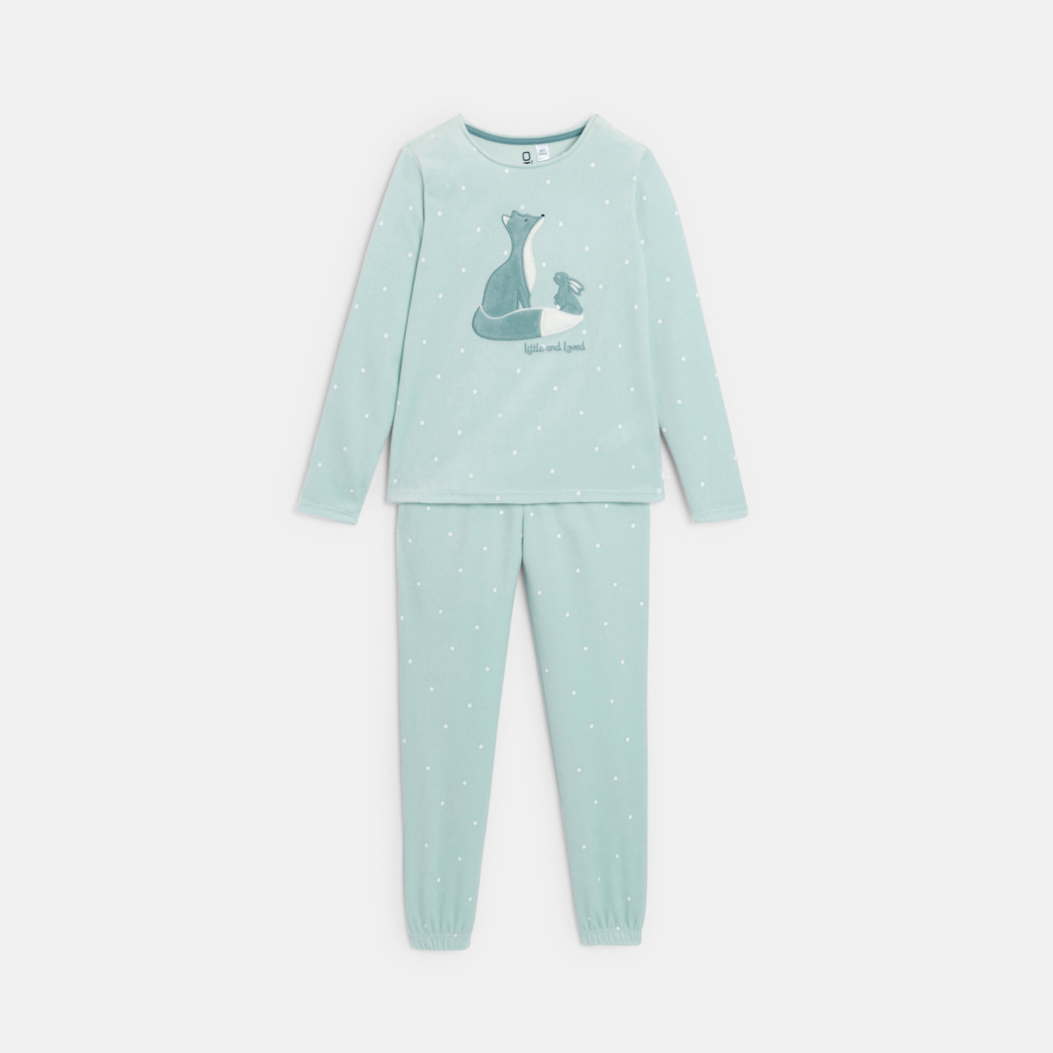 Кадифена пижама от 2 части с шарка на лисица и заек