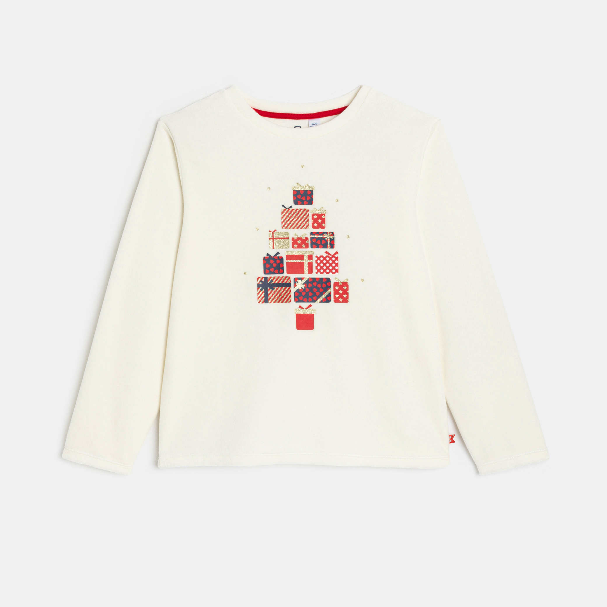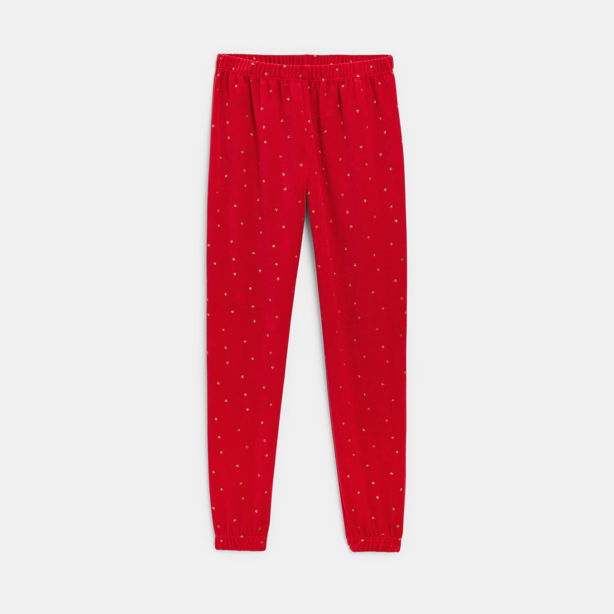 Очарователен пижама от две части, състояща се от кремав топ с дълъг ръкав и закачлив принт на елха и червен панталон със златни точки. Изработена от кадифе, тя осигурява комфорт и свобода на движение. Ластичната талия я прави лесен за обличане. Идеалена за уютни вечери през празничния сезон.Състав