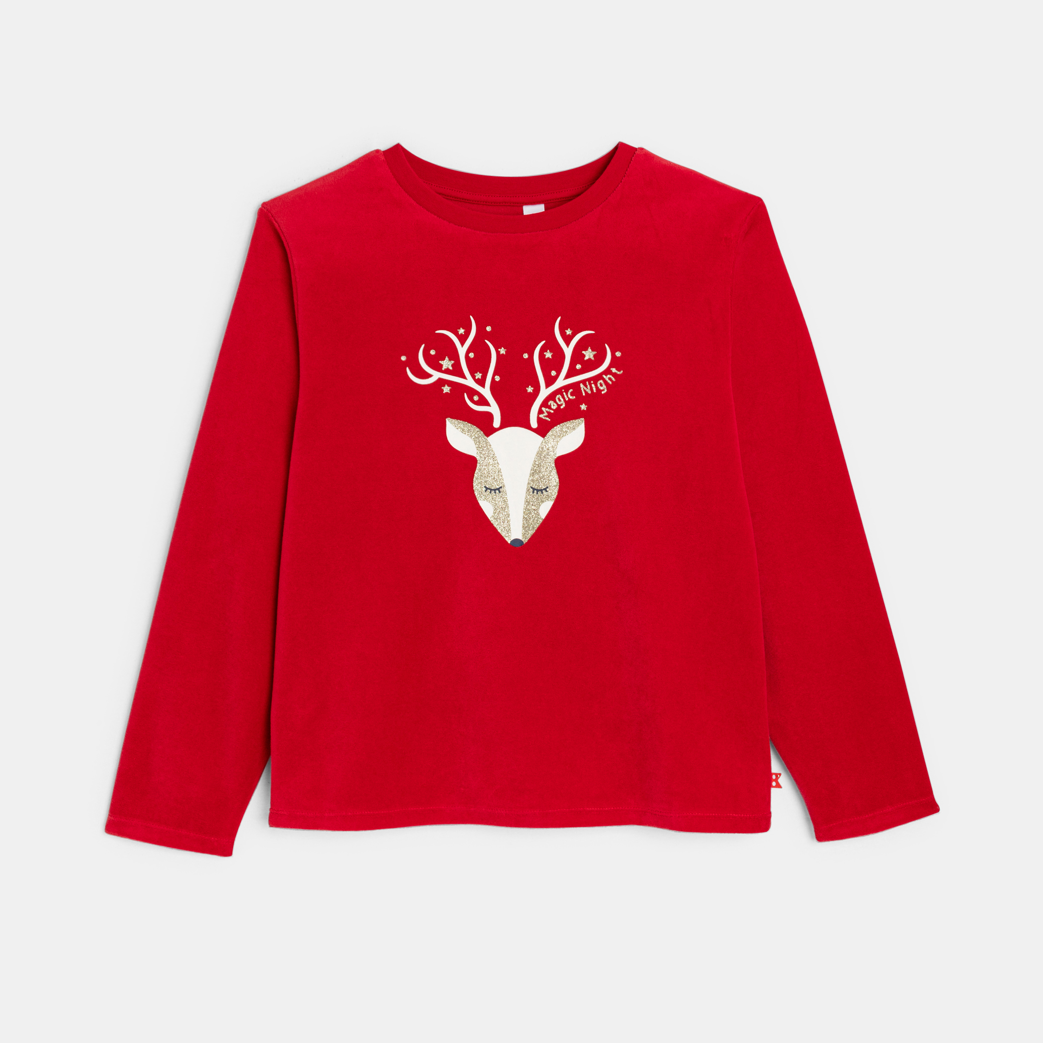 Пижама от две части с червено кадифе и щампа на елени