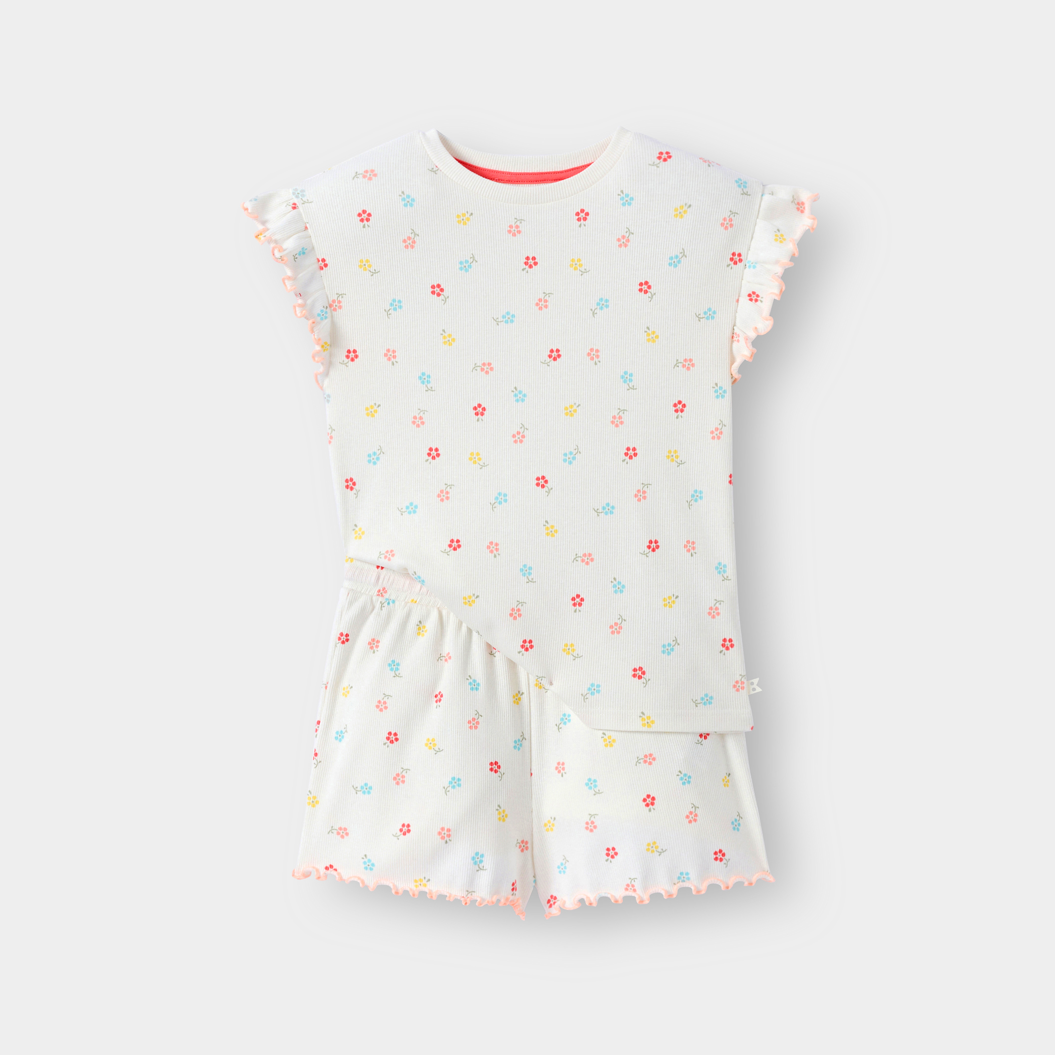 Бяла пижама от две част с флорални мотиви