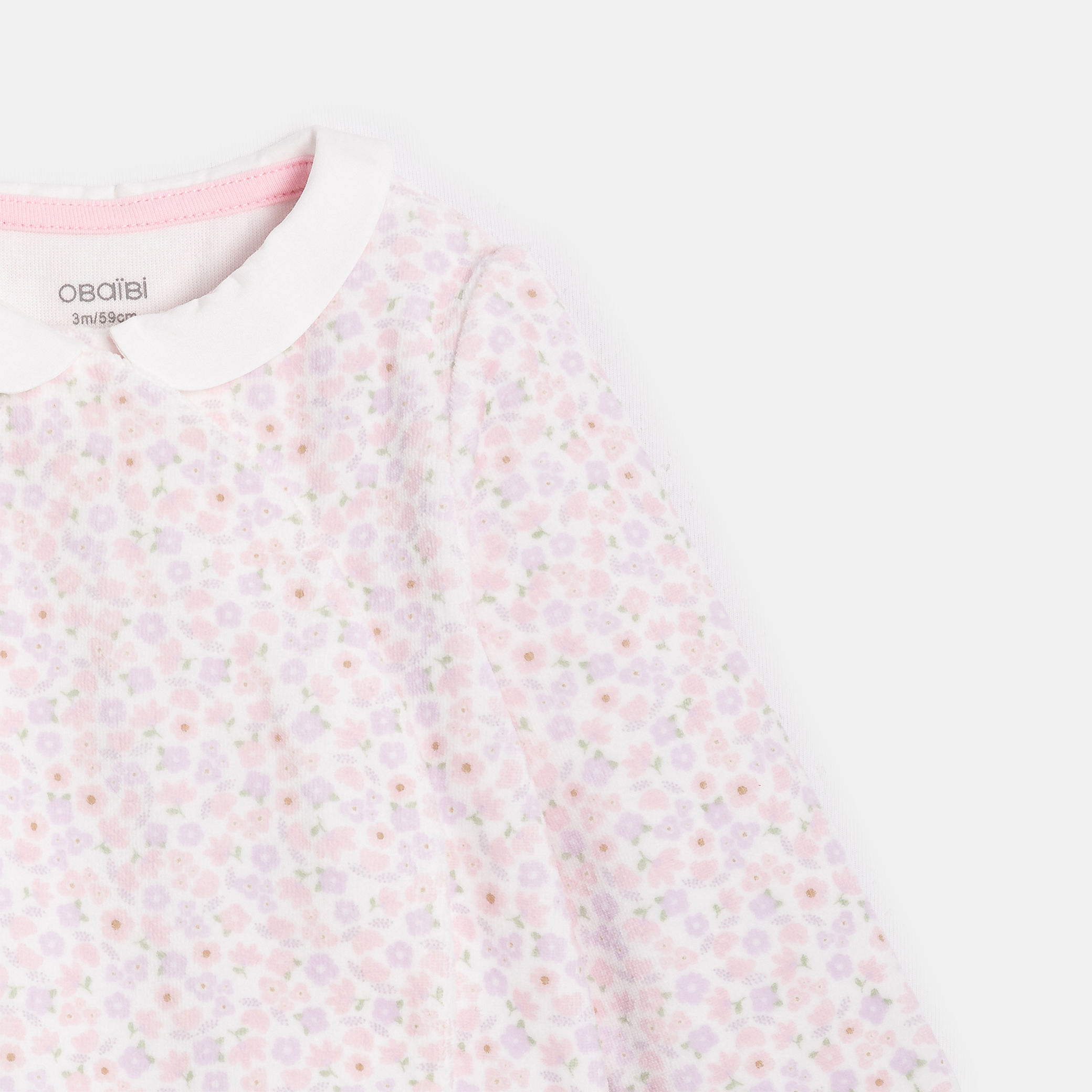 Мекотата е гарантирана с този розов спален комплект, украсен с флорални мотиви. Изработен от меко кадифе, той има яка тип "Питър Пан" и дълги ръкави. Практичен и удобен, той се отваря отпред със закопчалка за бързо и лесно обличане.Състав