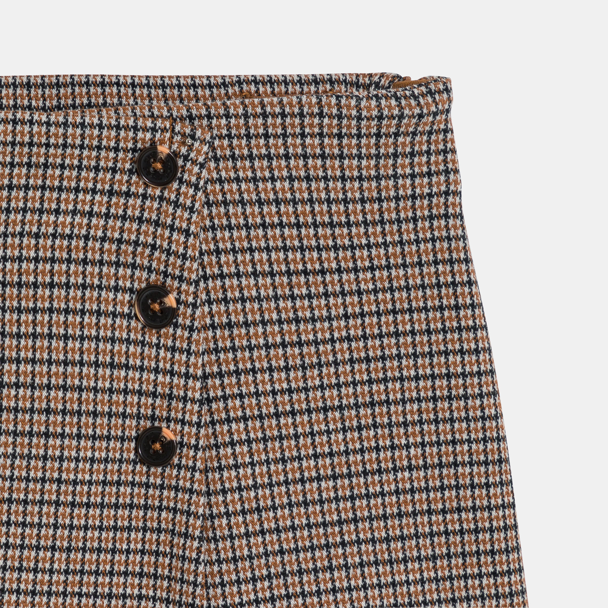 Допълнителна нотка ретро шик във визиите на момичетата е обявена за есенно-зимния сезон! Пример, избран с тази модерна и много практична ежедневна пола. Панел с фалшиво закопчаване отпред Страничен отвор с цип. Регулируем размер на талията.