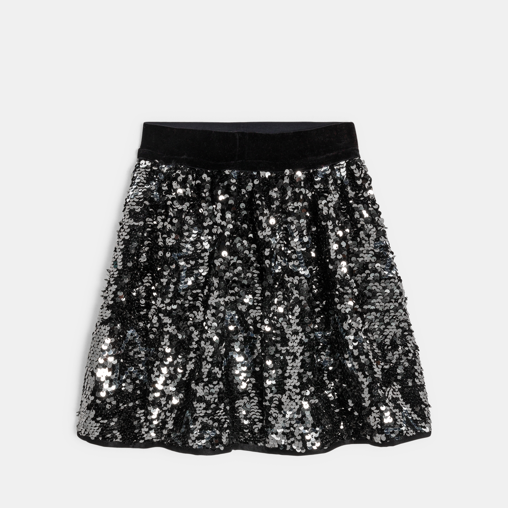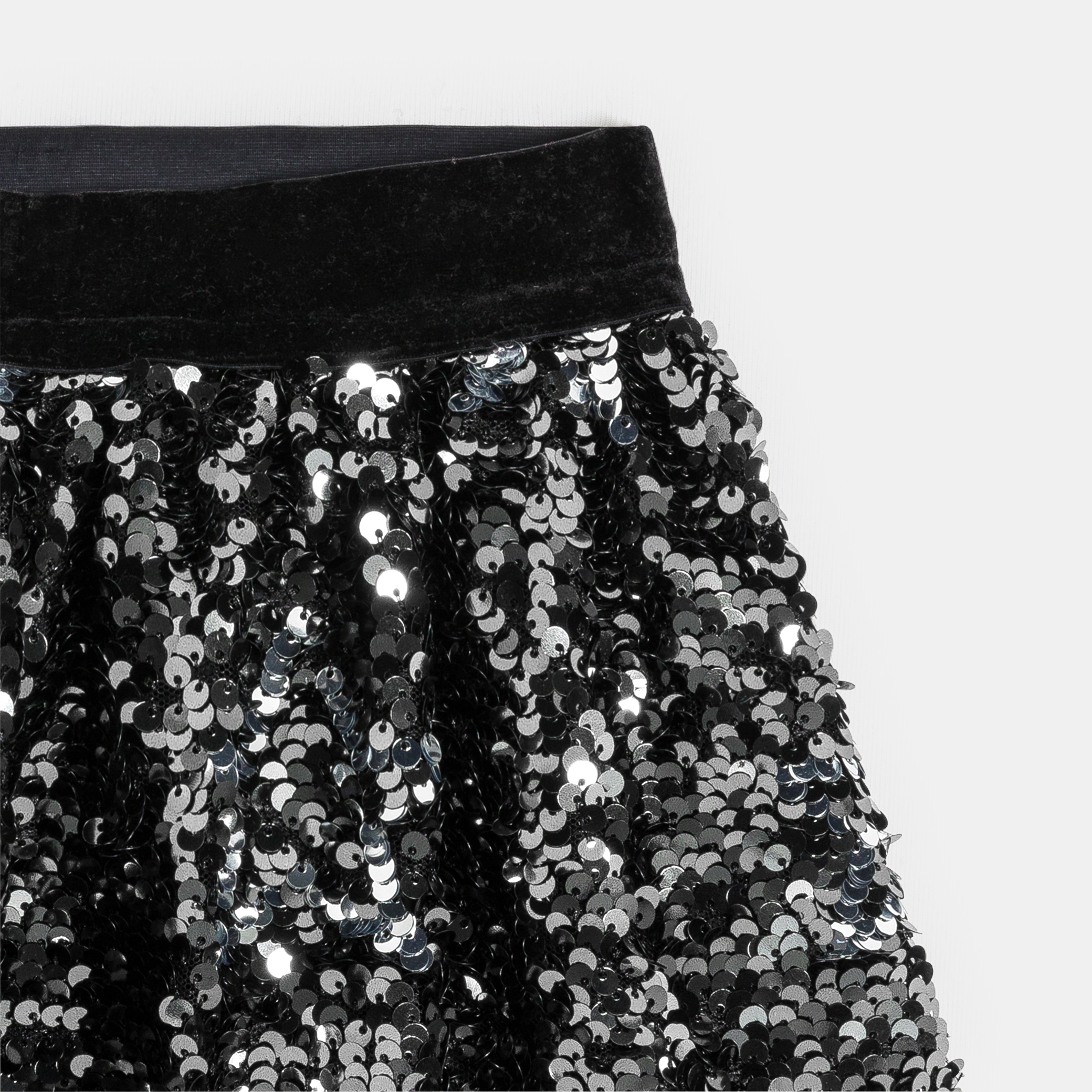 Тази черна разкроена пола, украсена със сребърни пайети, е идеална за блясък при специални поводи. Изработена от мека материя и с еластична кадифена талия, тя гарантира комфорт и елегантност при всяко движение. Перфектна за партита или вечерни излизания, тя съчетава блясък и практичност благодарение на лесния си за носене дизайн. Задължителна дреха за празнична и изискана визия.Състав