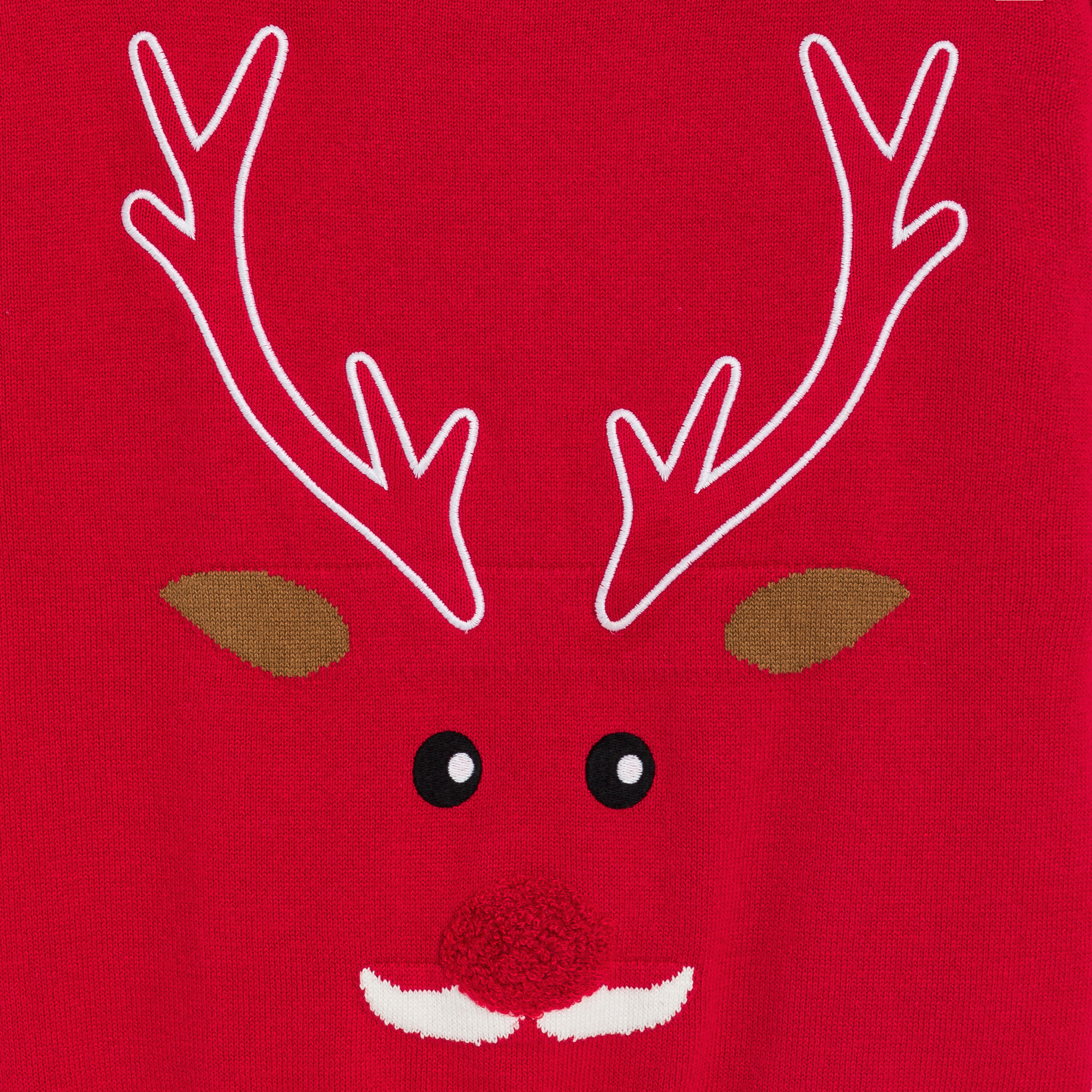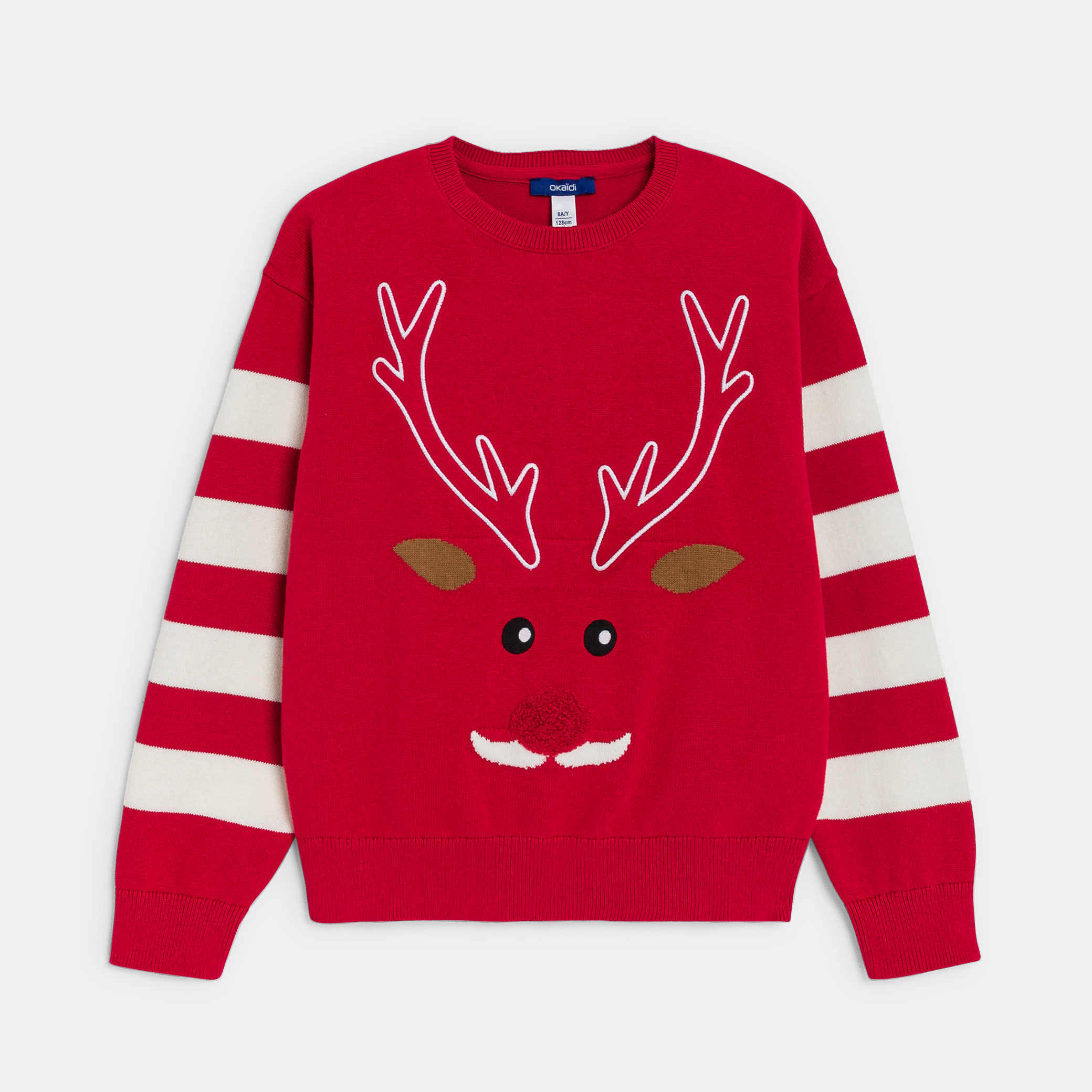 През зимата момчетата имат още повече хумор! Те обичат духа на "коледния пуловер" на този луксозен модел. Мека и еластична мрежа. Права кройка. Жакардов десен, бродерия и помпон. Дълги ръкави. Права основа. Оребрени ръбове.