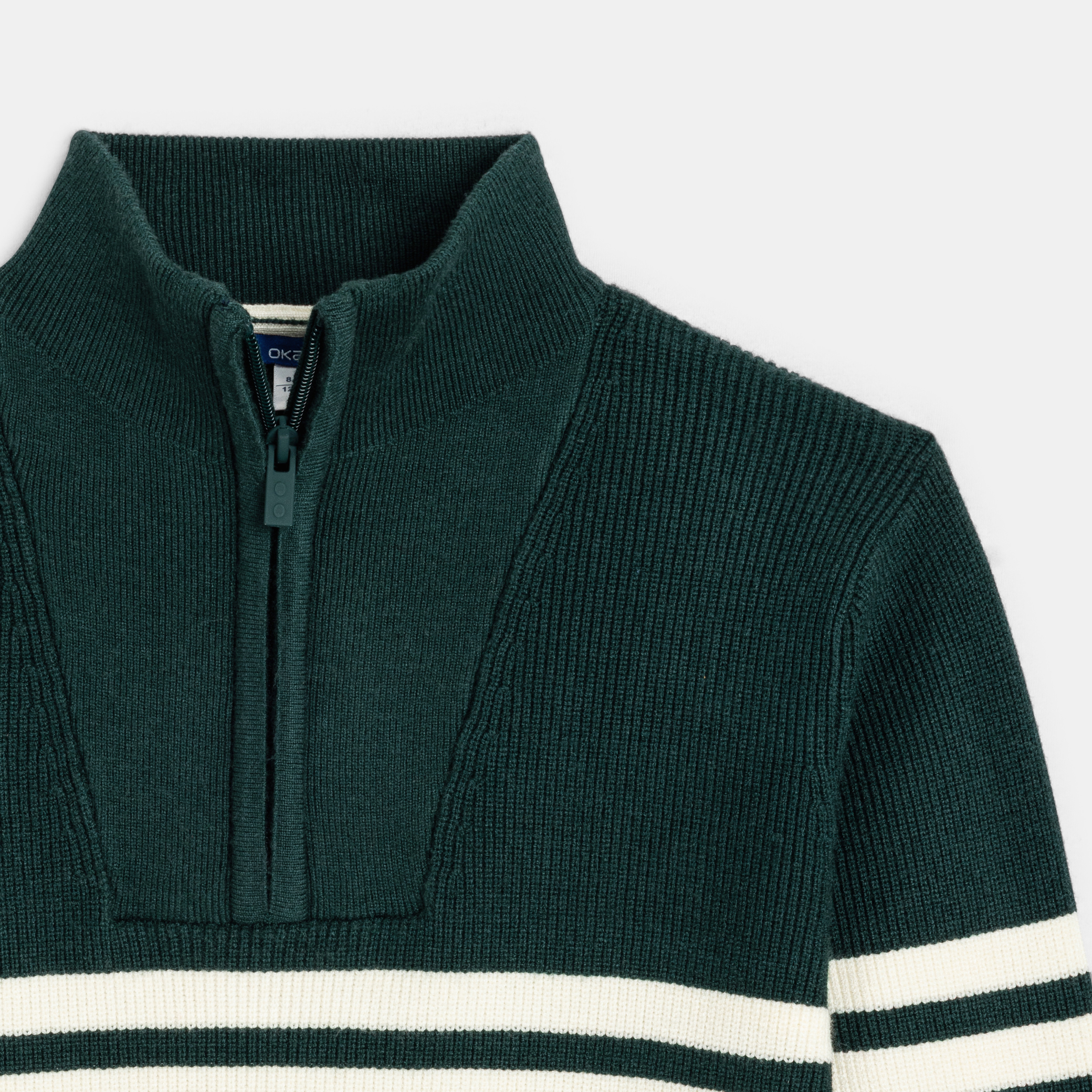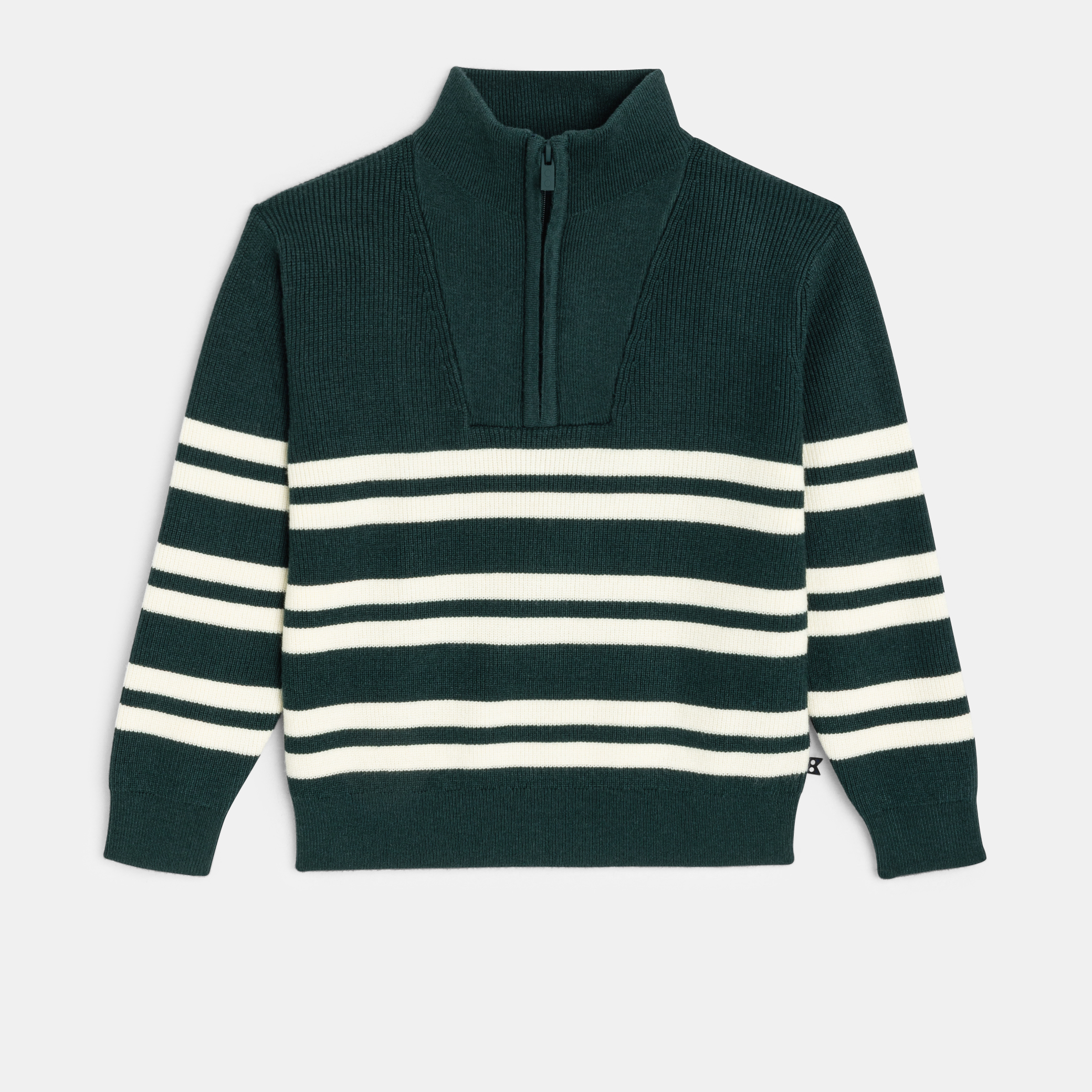 Морски вид и модерен дизайн за гардероба на момчетата! Този пуловер с цип (с яка) е посветен на града и природата. Леко стеснен в долния край. Дълги ръкави. Прав подгъв.Състав
