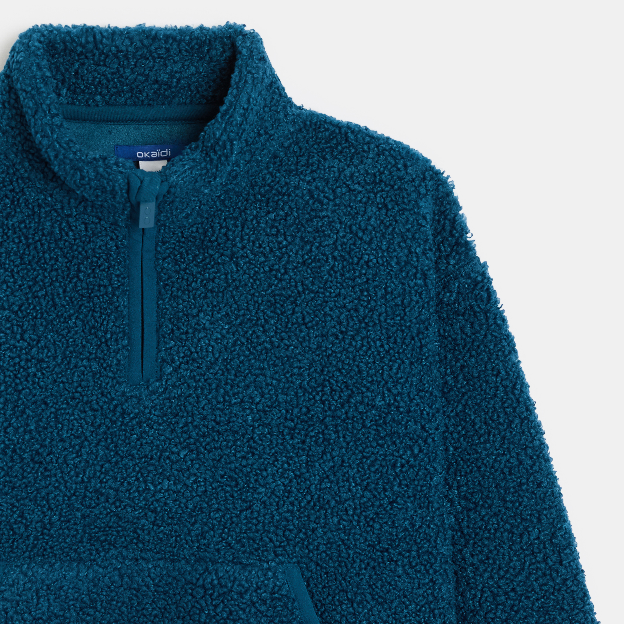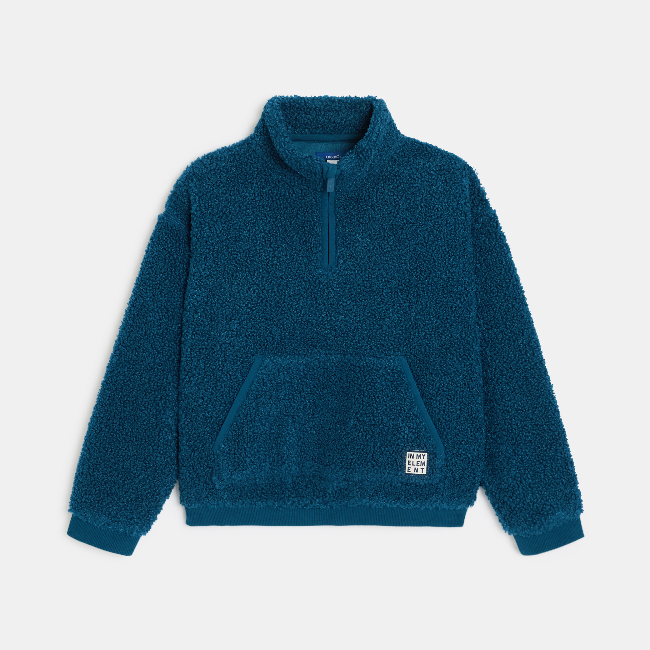 Невероятно удобен за уютно ежедневие: този мек суитшърт обгръща момчетата с мекота. С яка с цип, която покрива врата, дълги ръкави с оребрен кант и преден джоб, този суитшърт има всичко!
