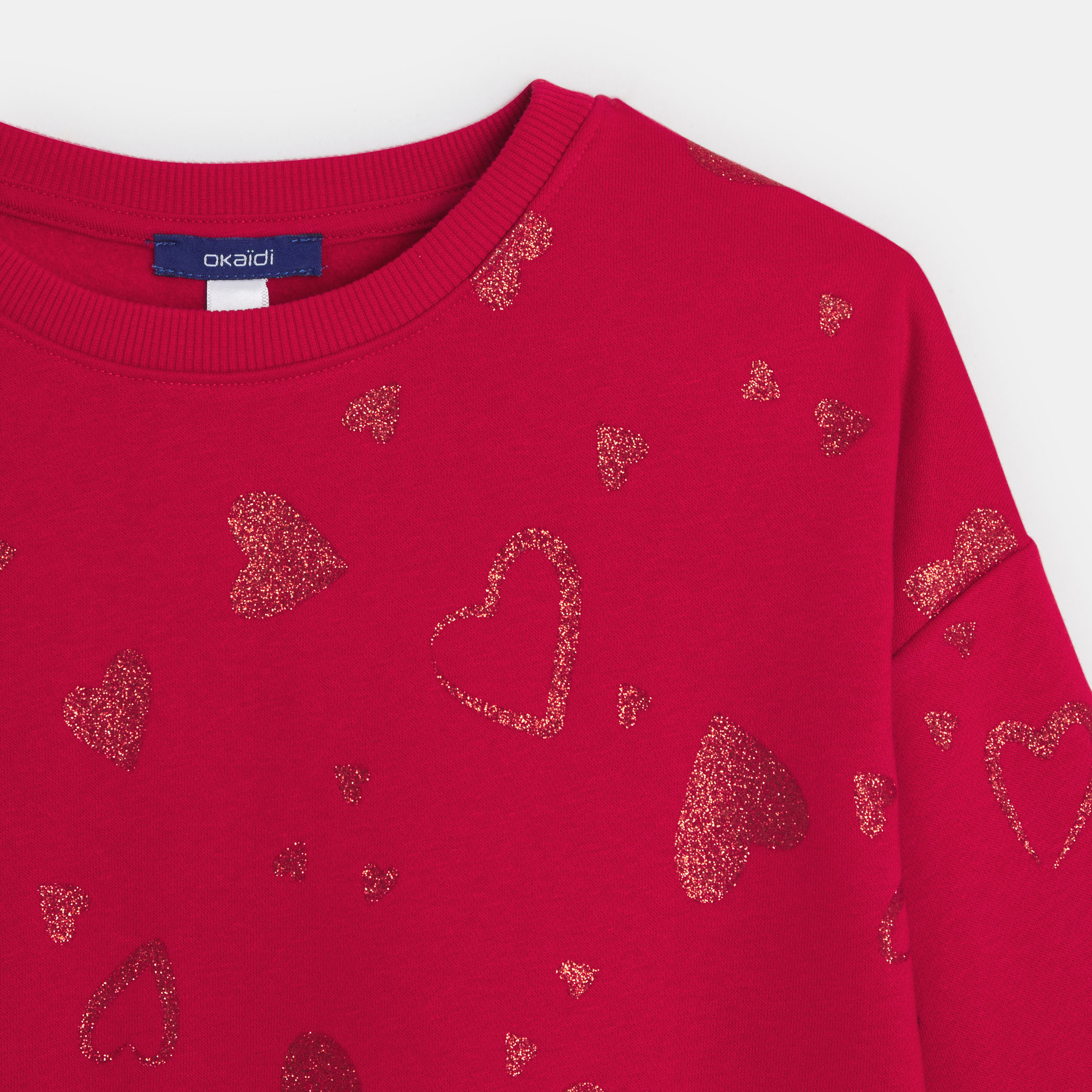 Шикозен и ярък, този червен суитшърт е украсен с искрящи сърца. Свободната му кройка и кръглото деколте предлагат непринуден вид. Изработен от мек полар, той осигурява оптимален комфорт. Идеален за ежедневно носене, лесен е за обличане благодарение на оребрените си маншети и подгъв.Състав