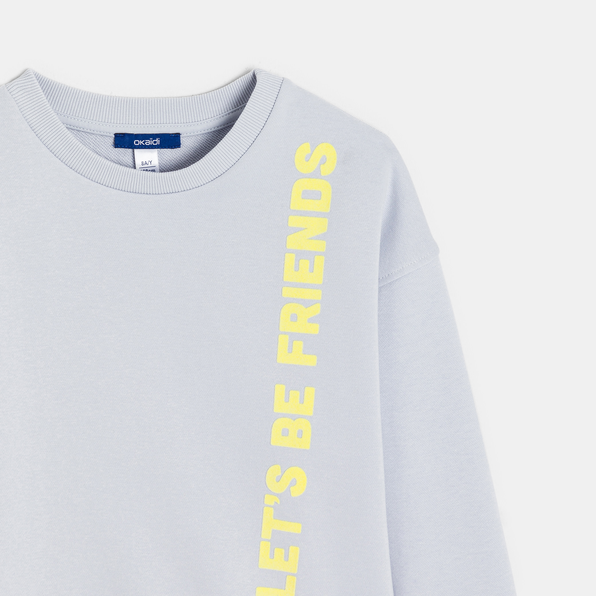 Момчетата могат да бъдат приятели в този суитшърт! Надписът е отпечатан вертикално за разнообразие. Хвътрешна част. Леко втален подгъв. Оребрена яка за лесно обличане и събличане. Дълги ръкави. Прав подгъв. Оребрени краища.Състав