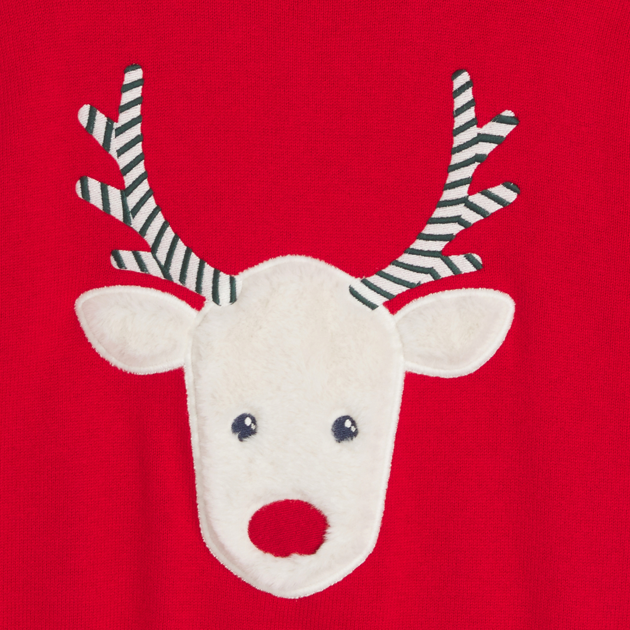 Ярък и празничен, този червен пуловер е с очарователен мотив на елени. Изработен от мека, удобна плетка, той има стандартна кройка, идеална за зимата. Оформеното деколте и дългите ръкави осигуряват топлина и стил. Идеален за партита или уютни дни у дома. Лесен за обличане за максимален комфорт. Закачлива и уютна незаменима дреха.Състав