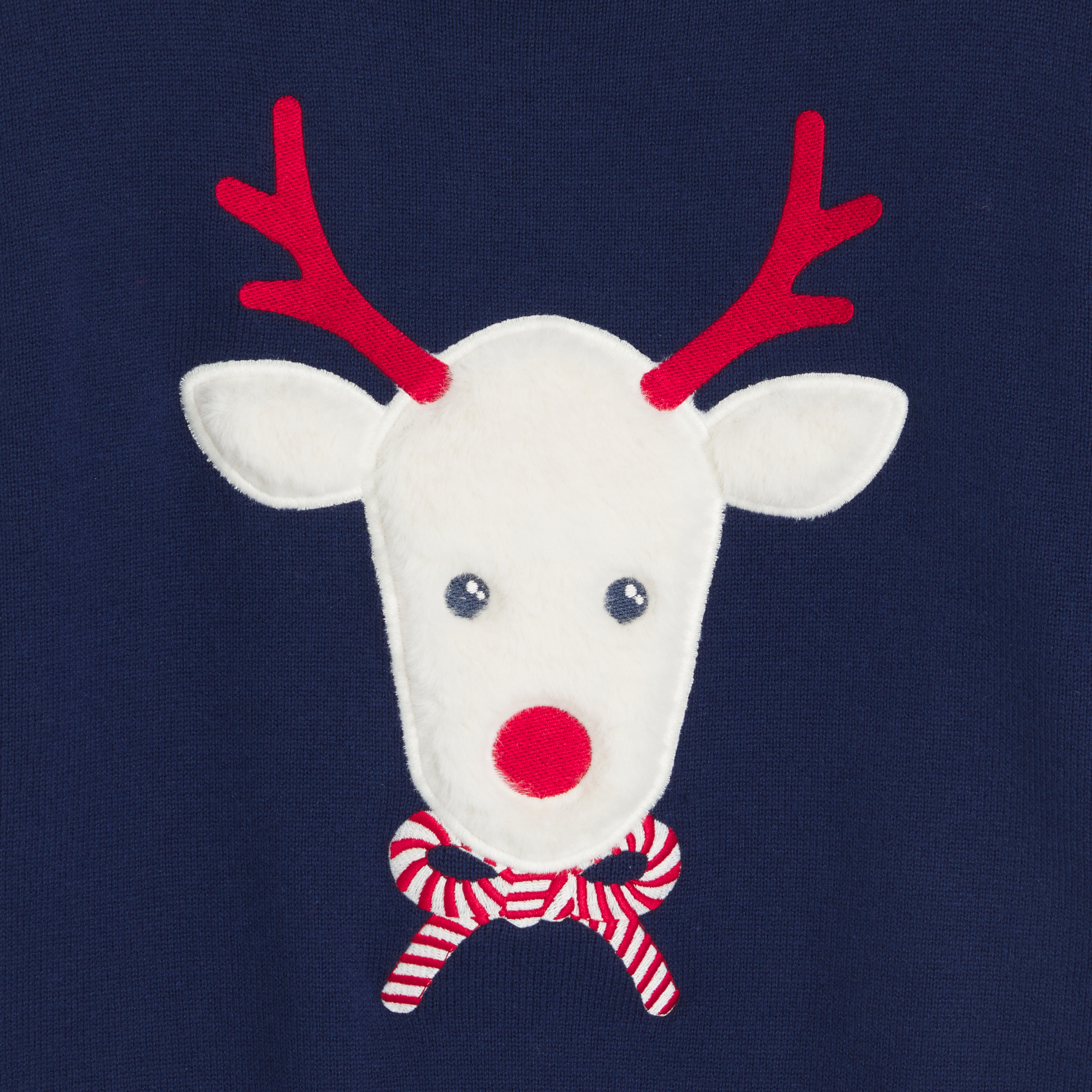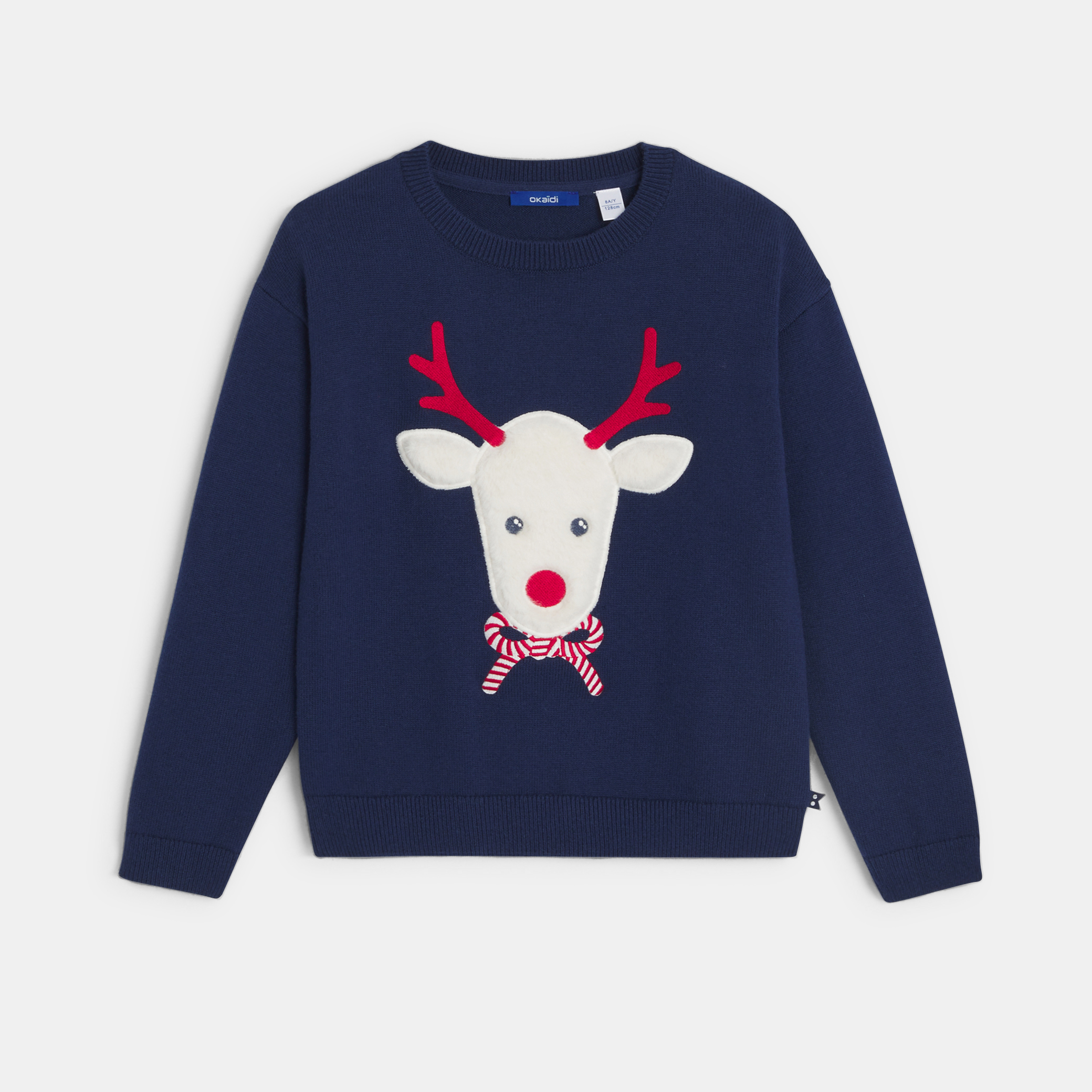 Този пуловер е с очарователен релефен елен за неустоимо празнично докосване. Стандартната му кройка и дългите ръкави осигуряват оптимален комфорт. Изработен от меко и топло трико, той е идеален за зимните дни. Идеален за празнуване на сезона със стил и топлина.Състав