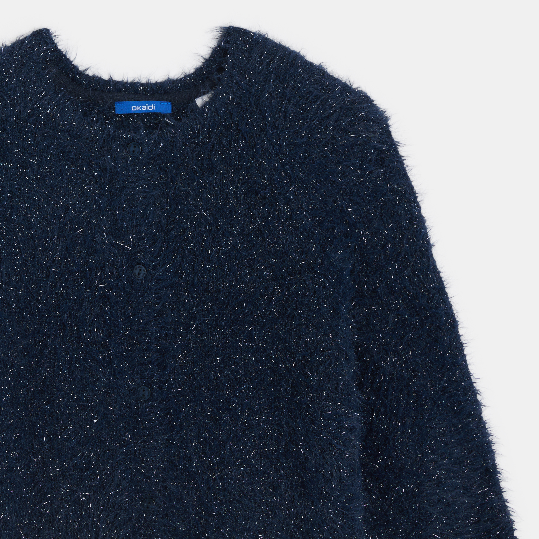 Момичетата, които търсят мекота, топлина, стил и оригиналност, са попаднали на правилното място: тази жилетка с шевици не чака празничния сезон, за да се появи на бял свят! Малко по-тясна кройка в долния край. Обло деколте. Закопчаване с копчета. Дълги ръкави.Състав