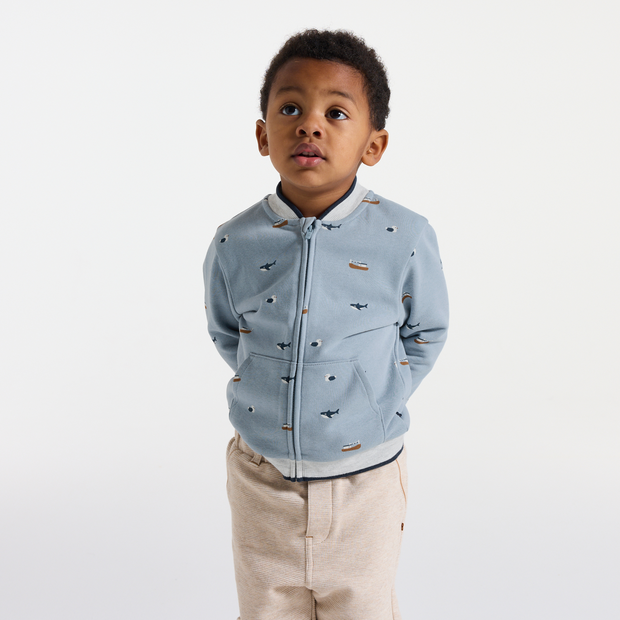 Това бейзболно яке е идеално за ежедневни приключения! Морски принт. Контрастната кръгла яка, дългите ръкави с еластични маншети и джобовете с джобове придават стил. Практично и удобно, идеално за разходки през по-хладните дни.Състав