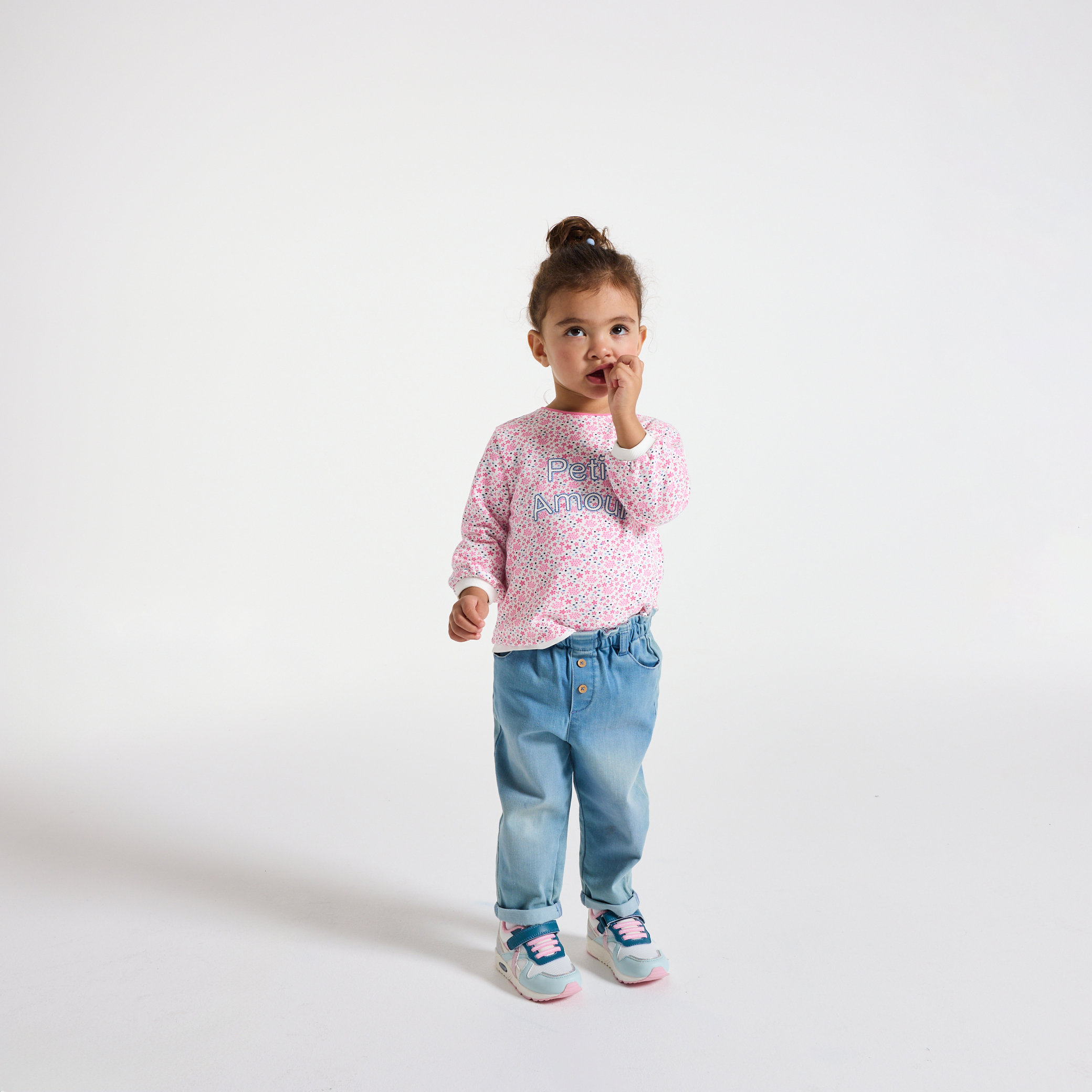 Очарователно послание върху супер мек суитшърт: момичетата ще харесат новия си пуловер! Изработен от топъл и удобен плат, с прав подгъв, вталени маншети и кръгло деколте.