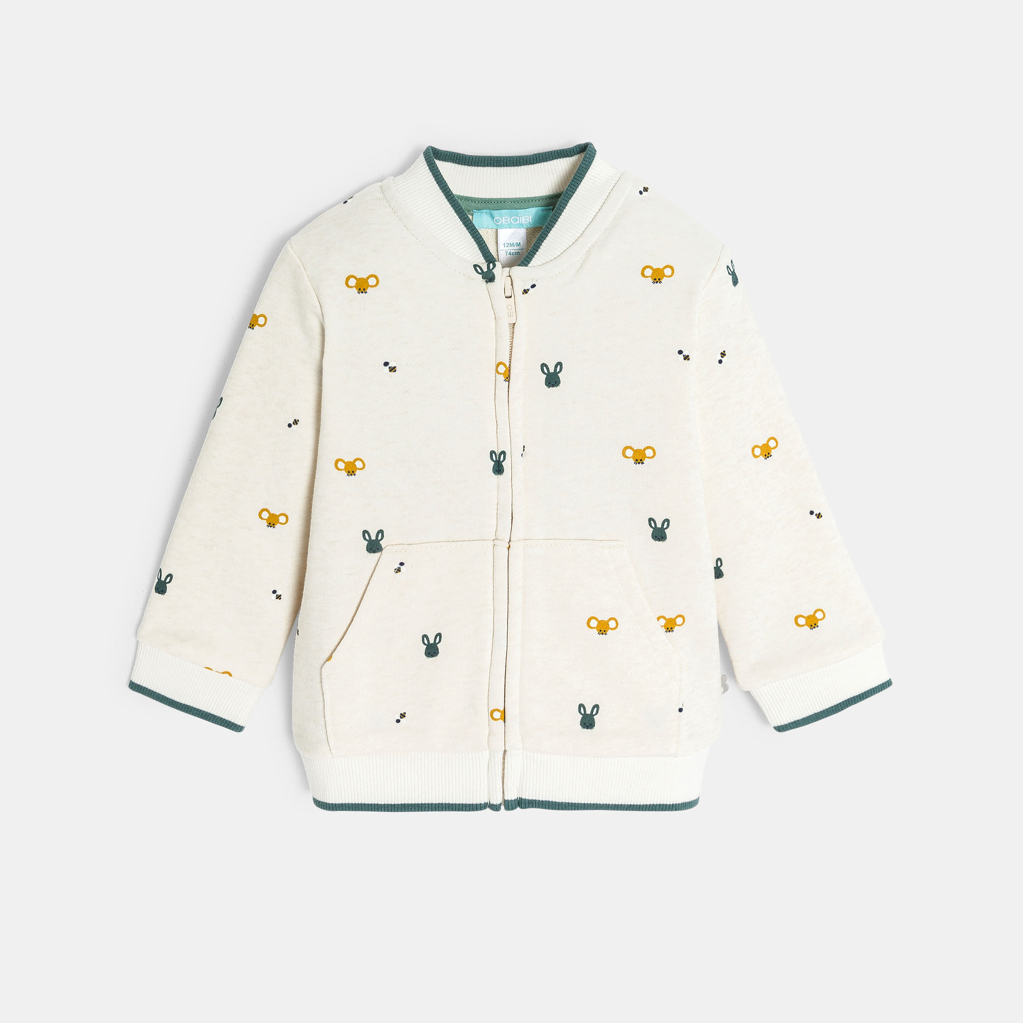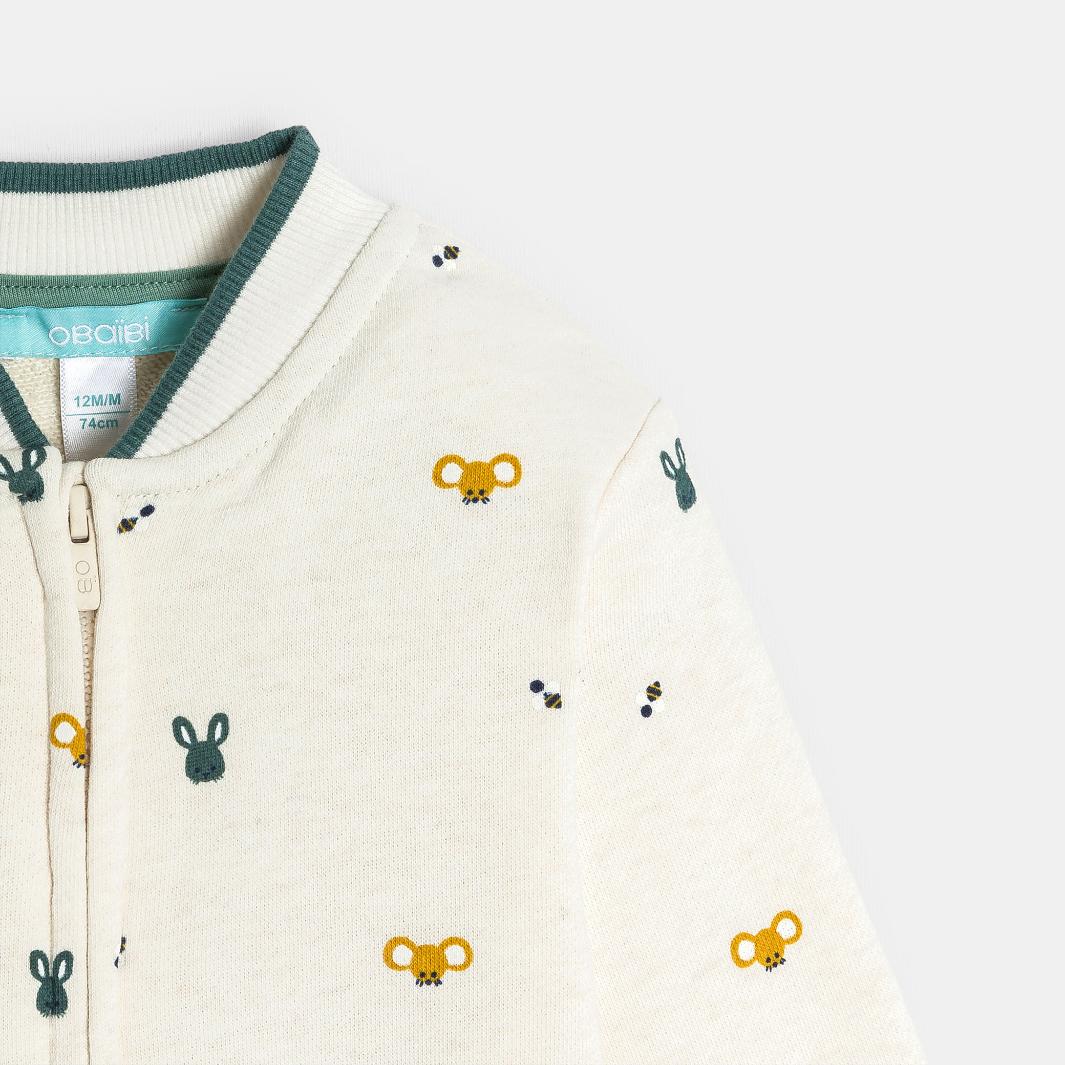 Бежов суитшърт с цип и принт
