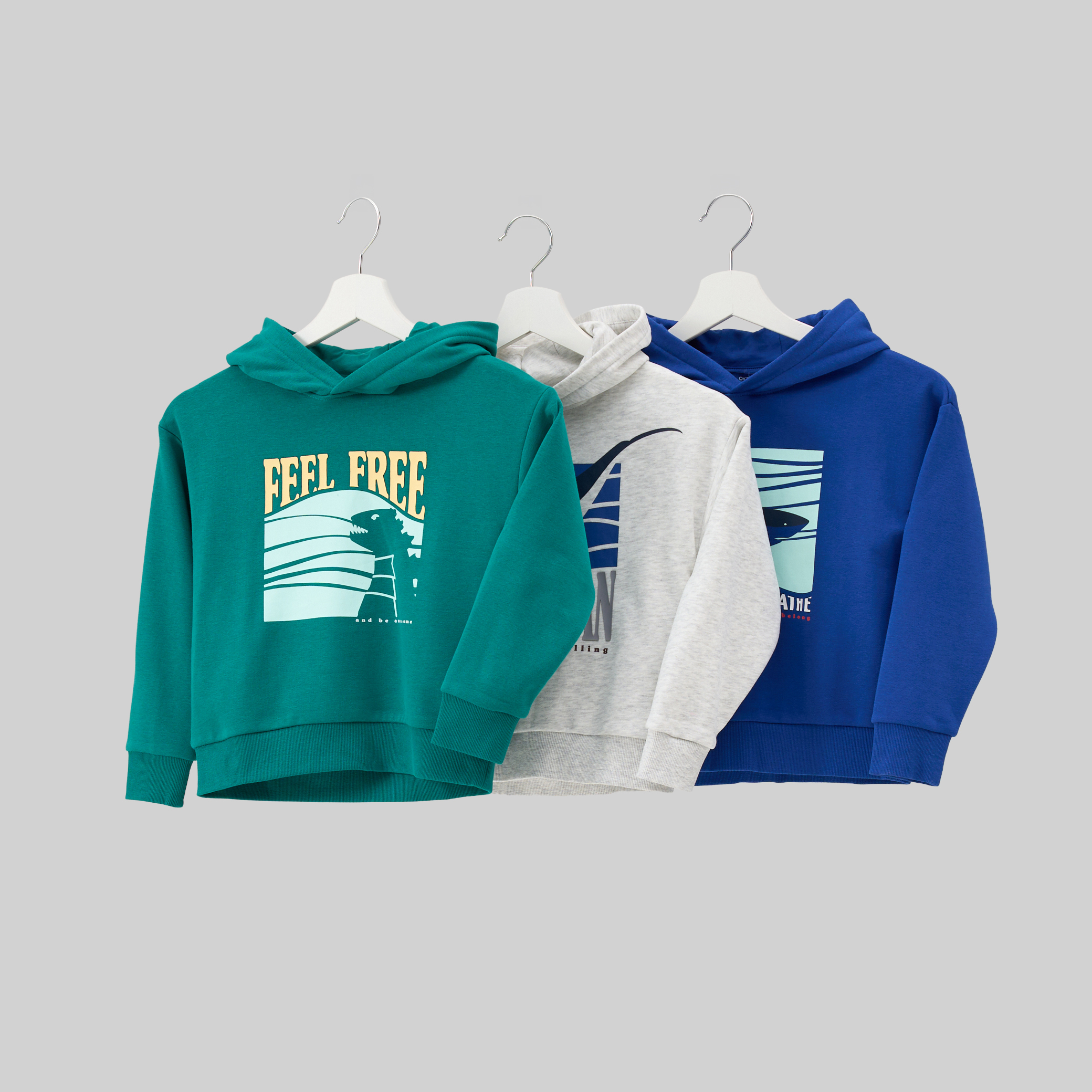 Топлината е от съществено значение, но го направете стилно! Този суитшърт ще осигури уют на момчетата през целия ден. Прав подгъв с оребрен кант, плътно прилепнала качулка и забавна илюстрация - това е фаворитът на сезона!Състав