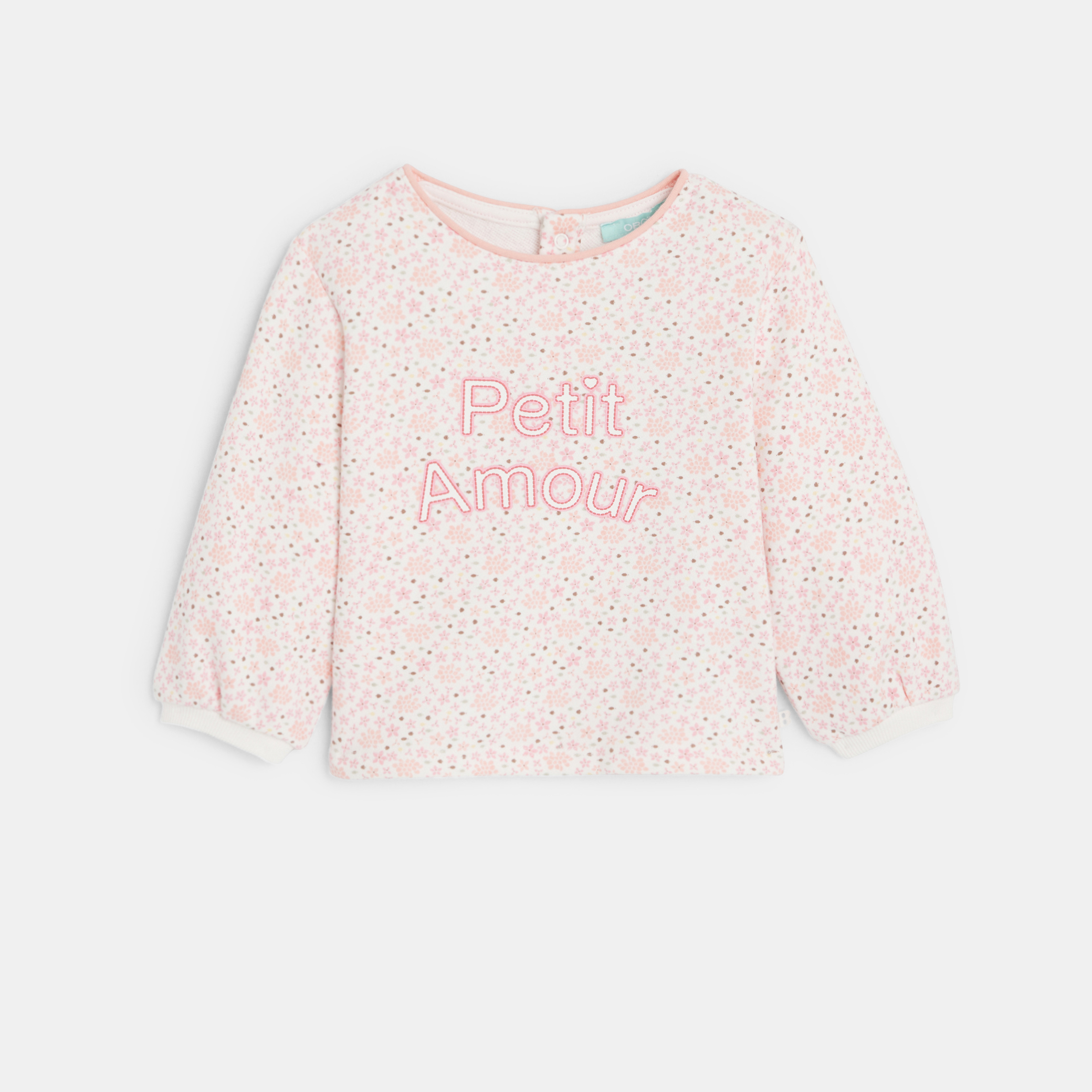 Розов суитшърт с флорални мотиви и надпис
