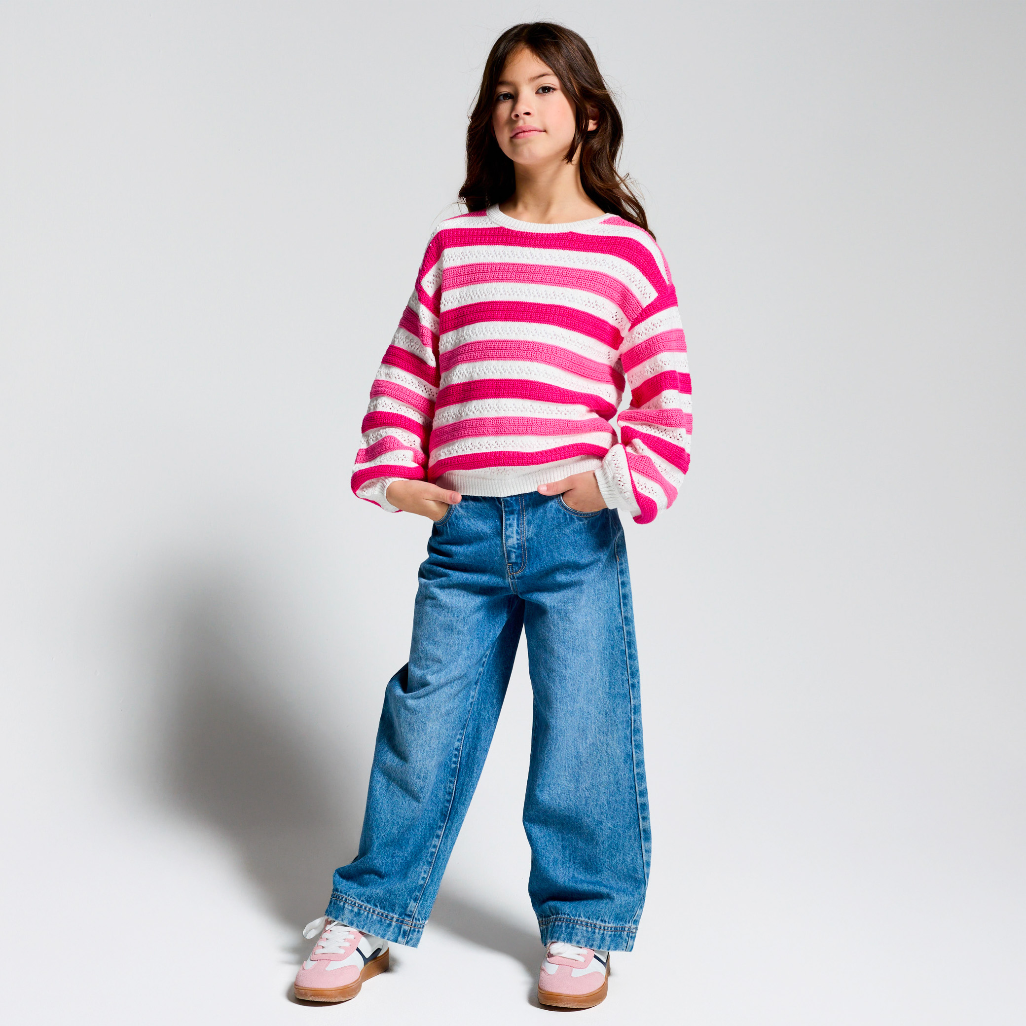 Розов раиран пуловер