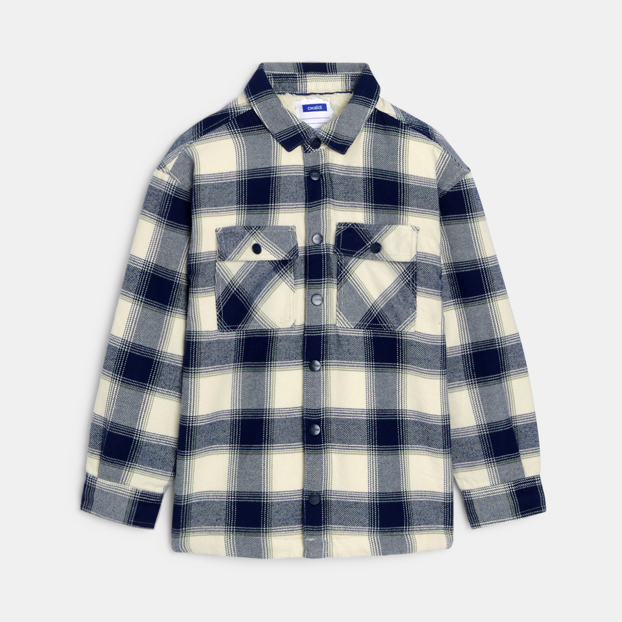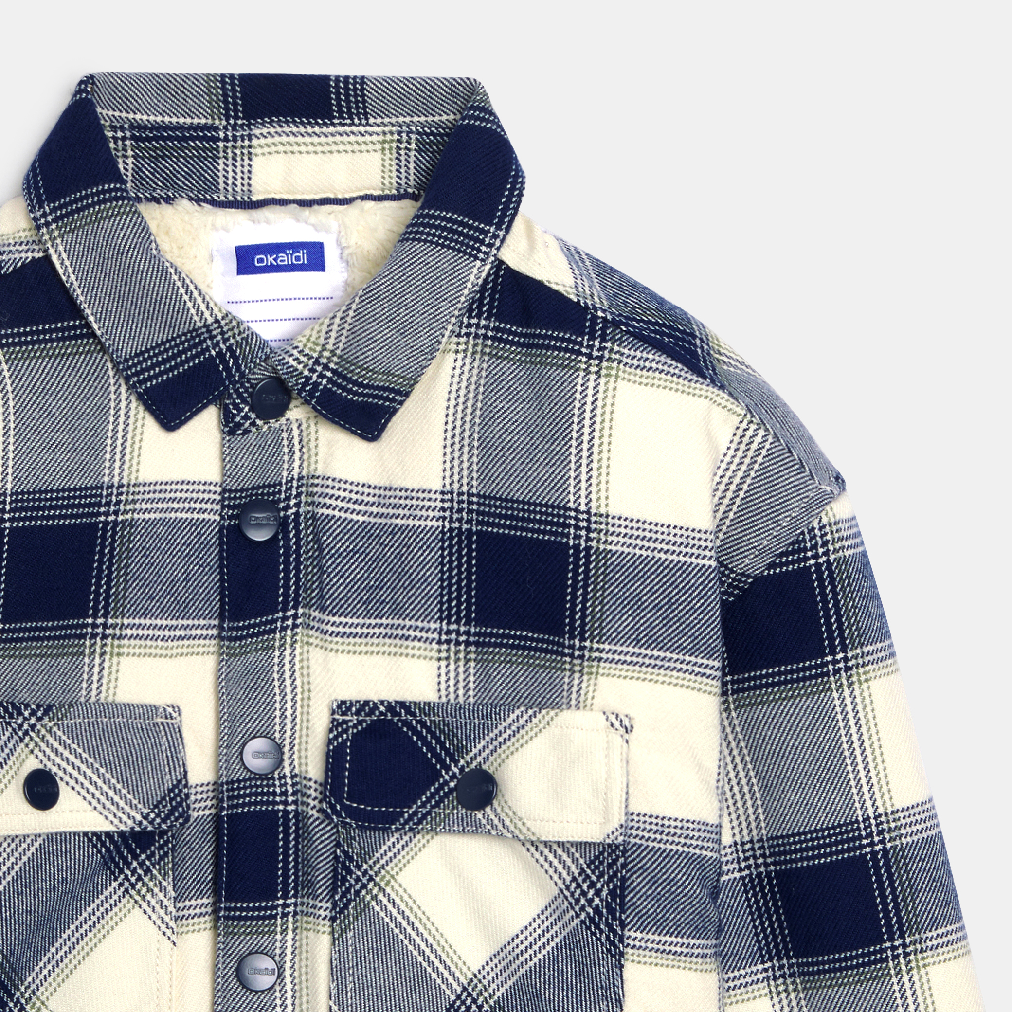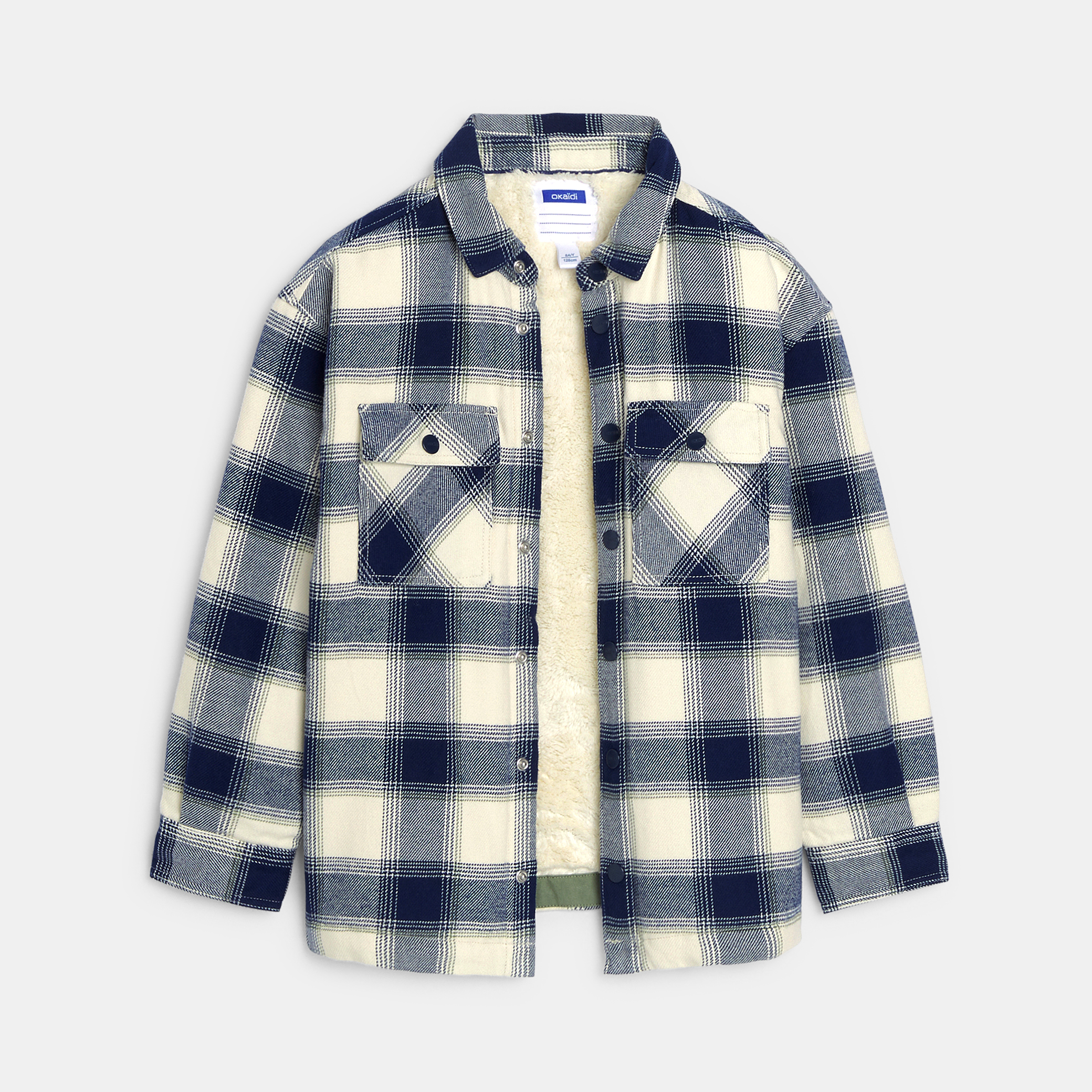 Риза, която е мека и уютна с топлата подплата от шерпа! Момчетата могат да я носят като яке в средата на сезона, със или без палто през зимата. Права кройка. Яка на риза. 2 джоба на гърдите със закопчаване с тик-так копче. Дълги ръкави, маншети с копчета. Закопчаване с тик-так копчета. Заоблен подгъв.Състав