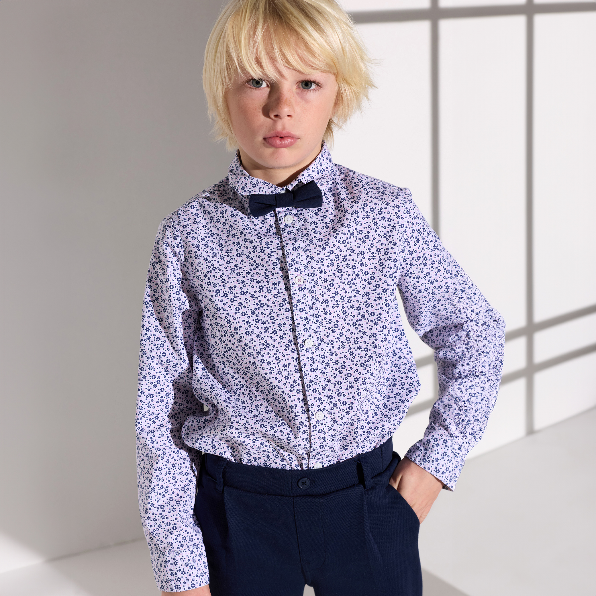 Риза с флорален принт и папийонка