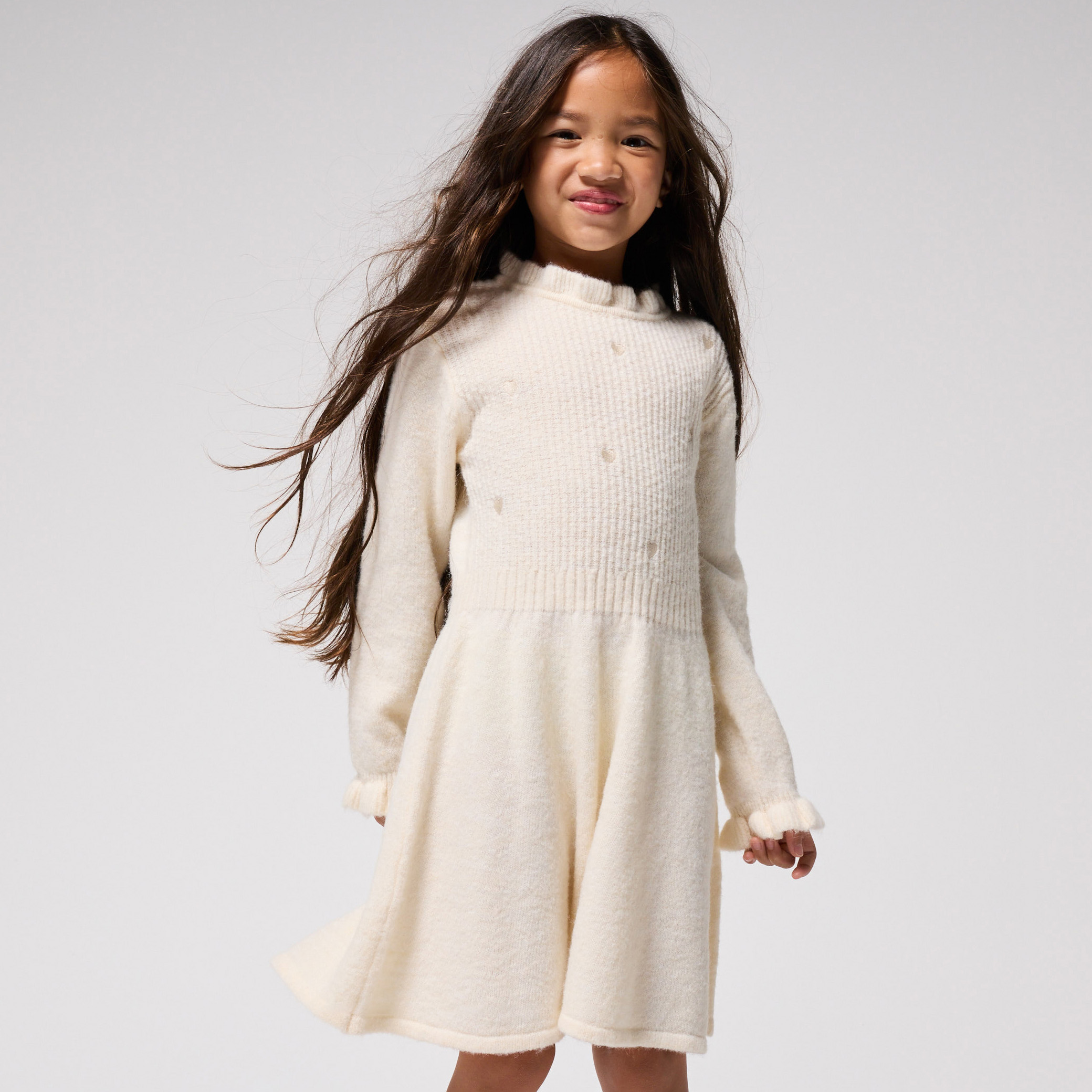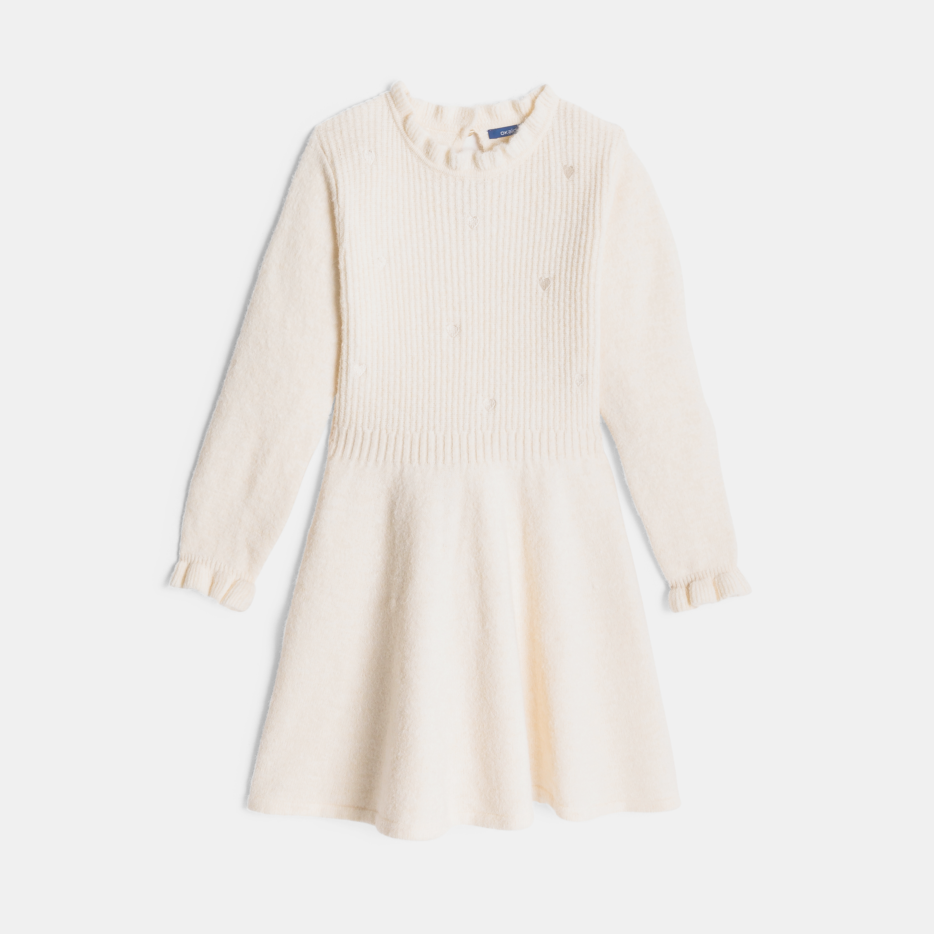 Бяла плетена рокля с яка