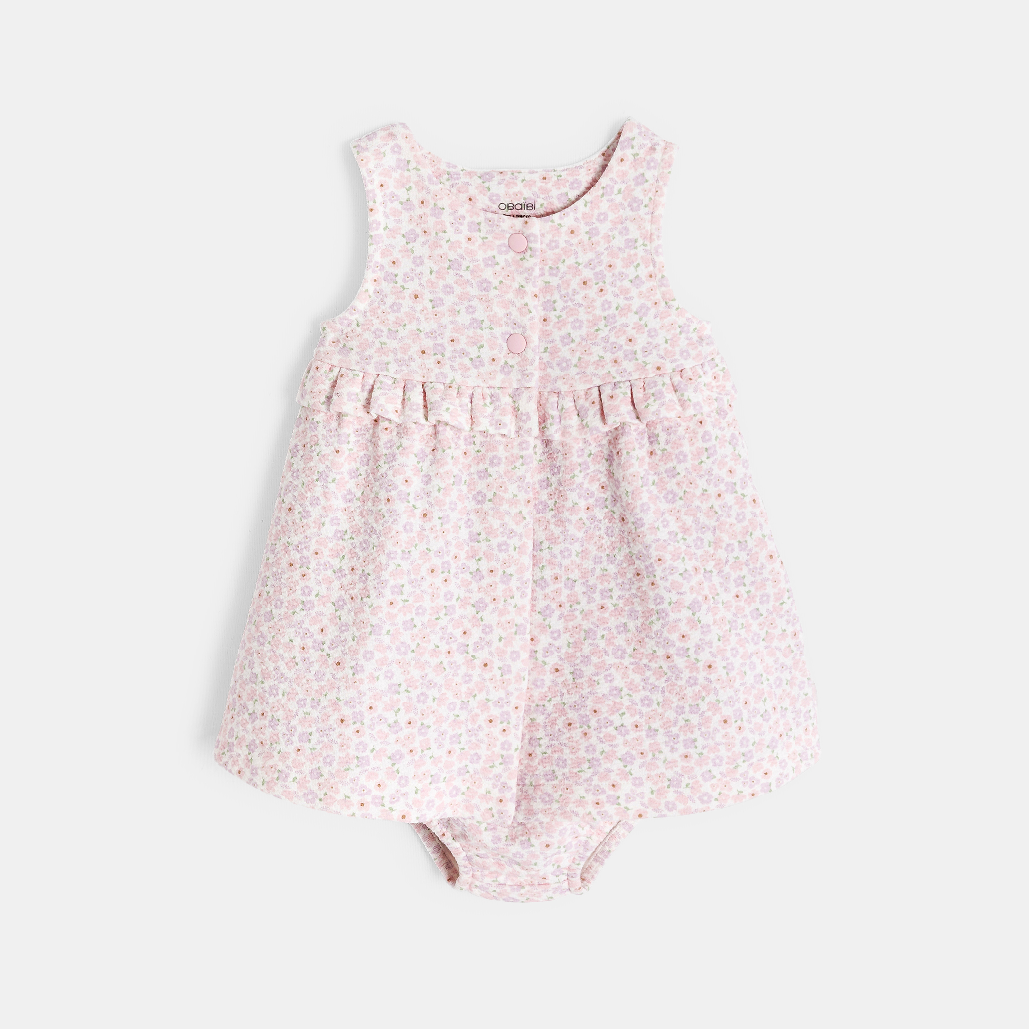 Тази розова рокля на цветя е идеална за ежедневието.Тя има деликатни презрамки и волани на талията. Практичното закопчаване отпред прави обличането бързо и лесно. Създадена да придружава всички малки приключенци, тя предлага абсолютен комфорт през целия ден.