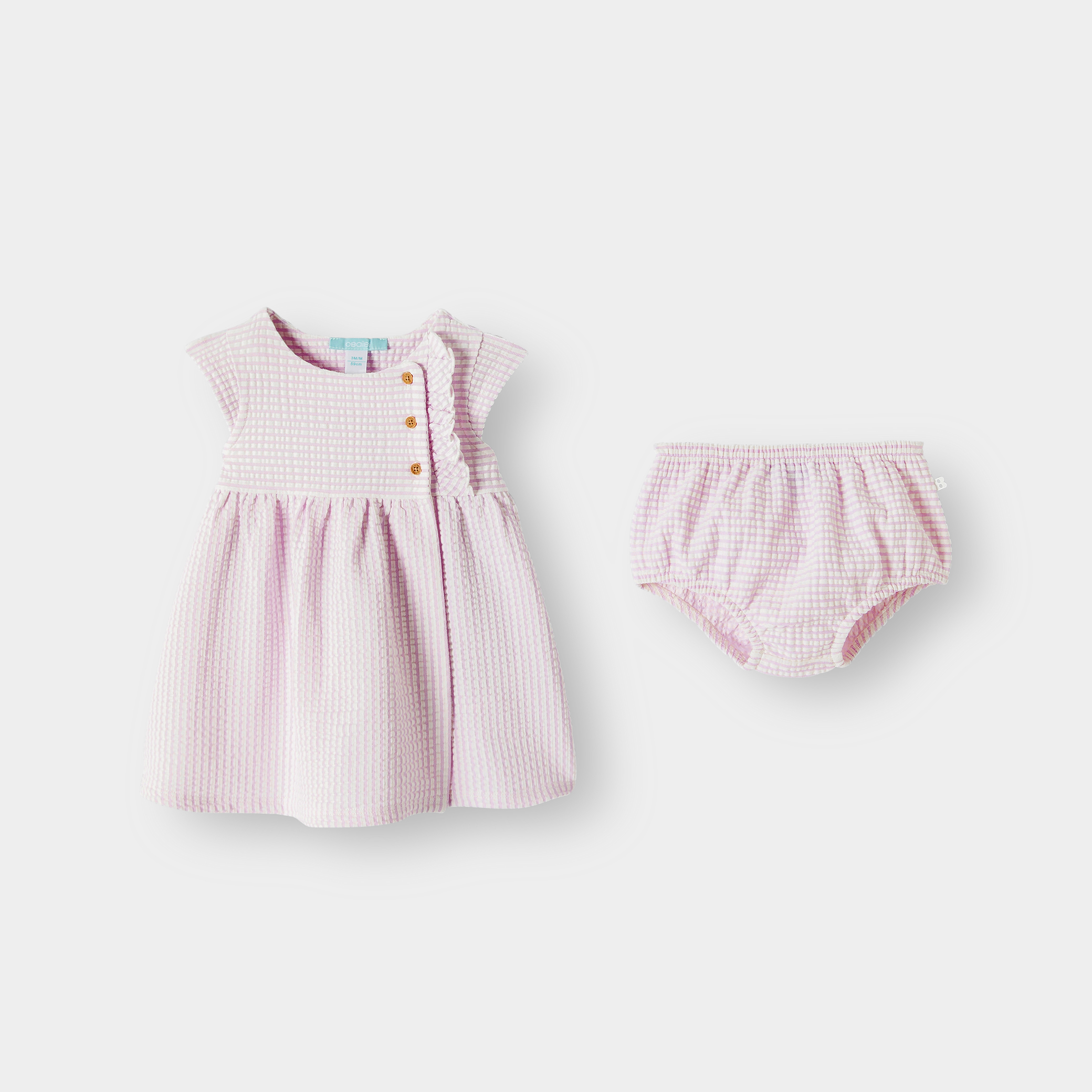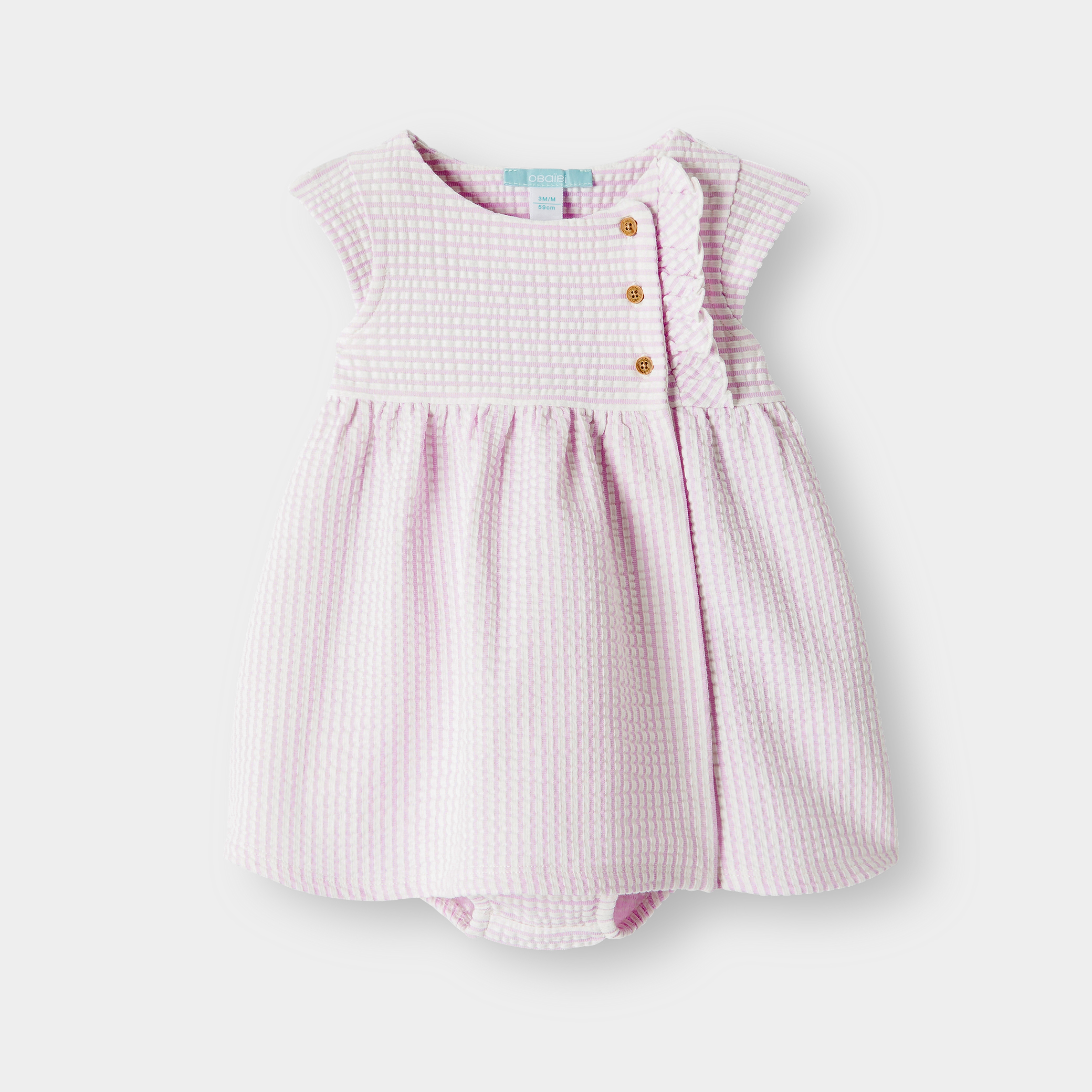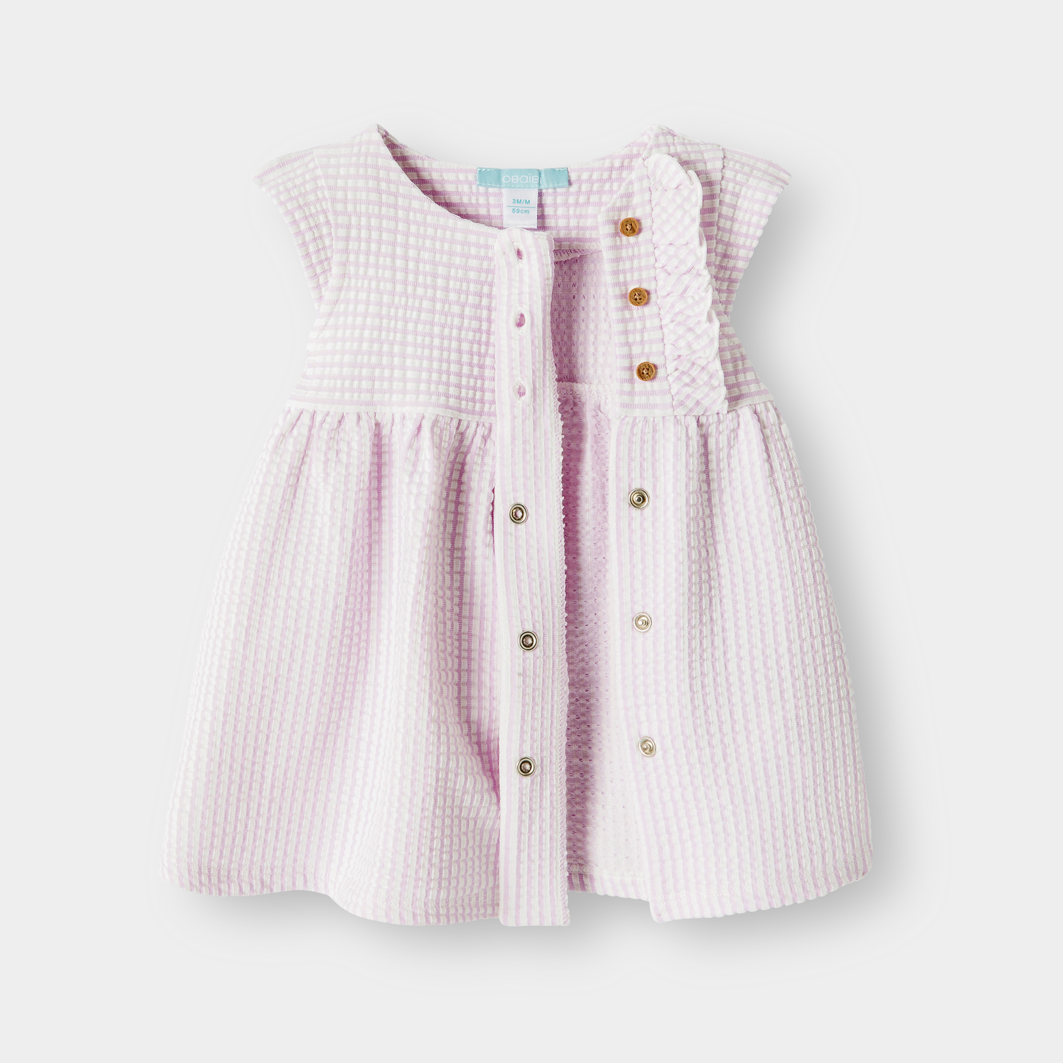 Тази очарователна рокля е идеална за елегантни излизания и празнични поводи за малки момиченца. Изработена от памук с вафлен ефект, тя предлага едновременно стил и комфорт. Разкроената ѝ кройка с къси ръкави и закопчаване с тик-так копчета улесняват обличането на момичетата. Тази дреха съчетава мекота и елегантност, за да озари всеки момент.Състав