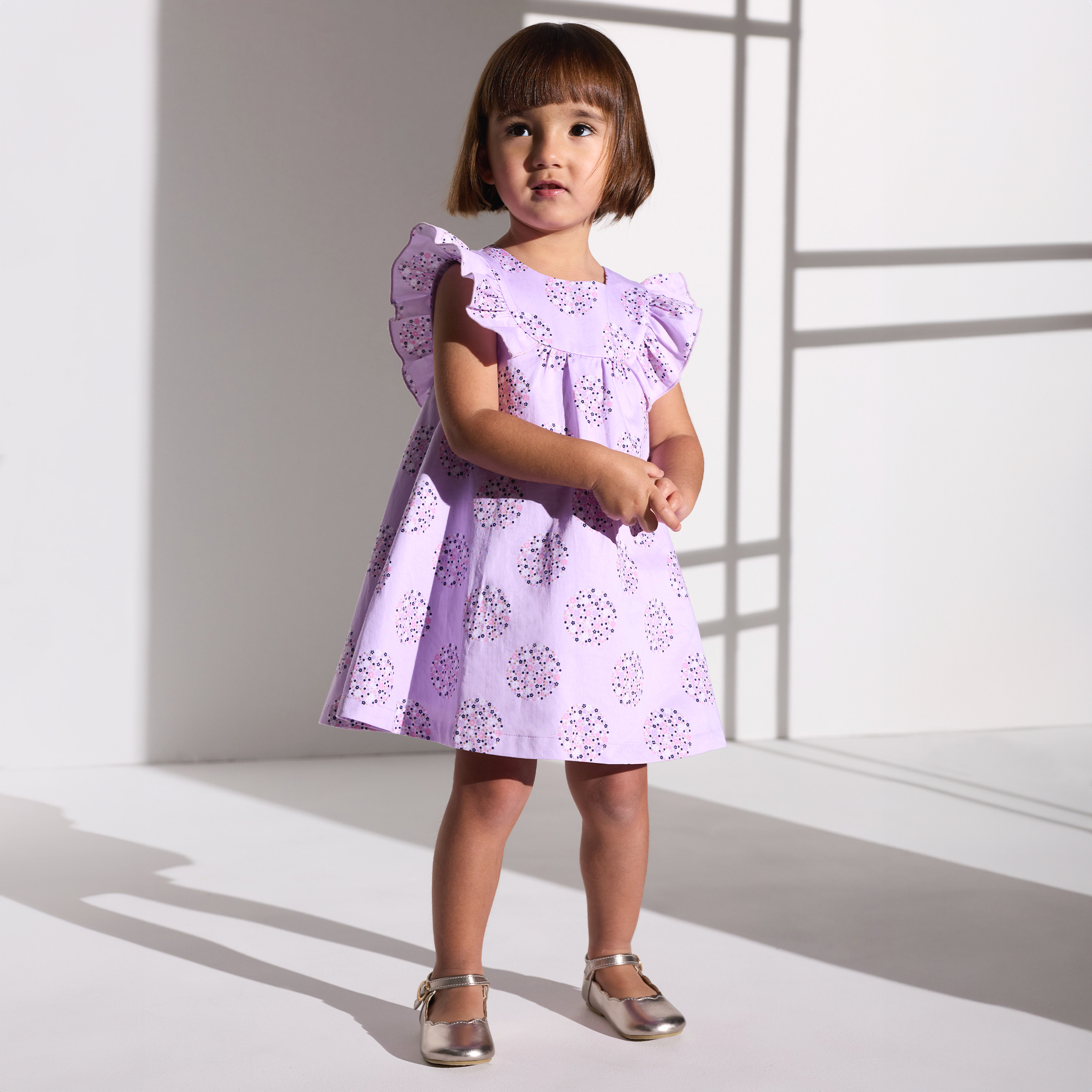 Лилава флорална рокля