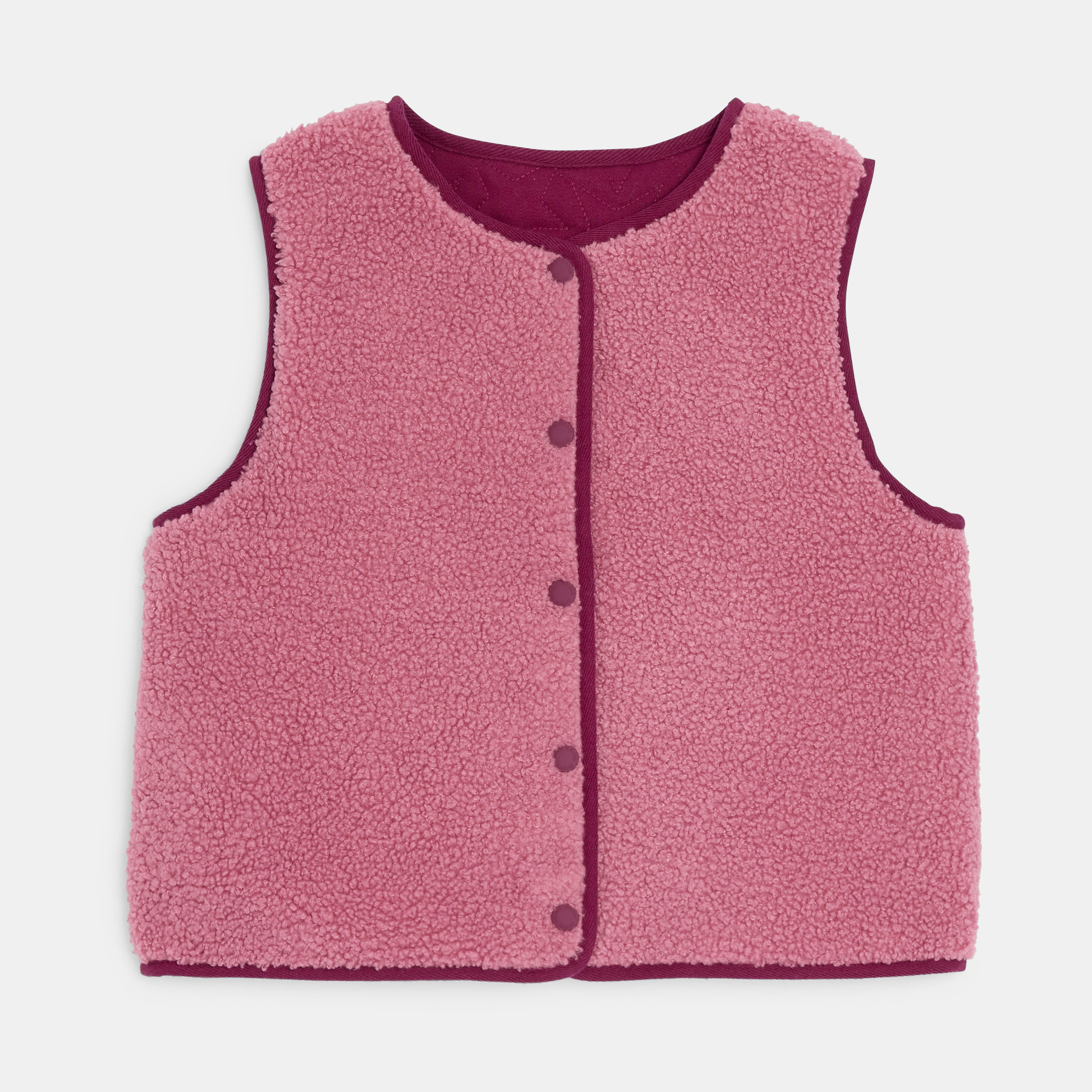 Влюбете се в тази двулицева розова жилетка, идеалена за шикозен и удобен външен вид. Изработена от мека шерпа-подобна материал, той предлага кройка без ръкави, идеална за наслояване. Разполага с практично закопчаване с тик-так за лесно обличане. Идеална за хладни дни, тя съчетава топлина и стил.Състав