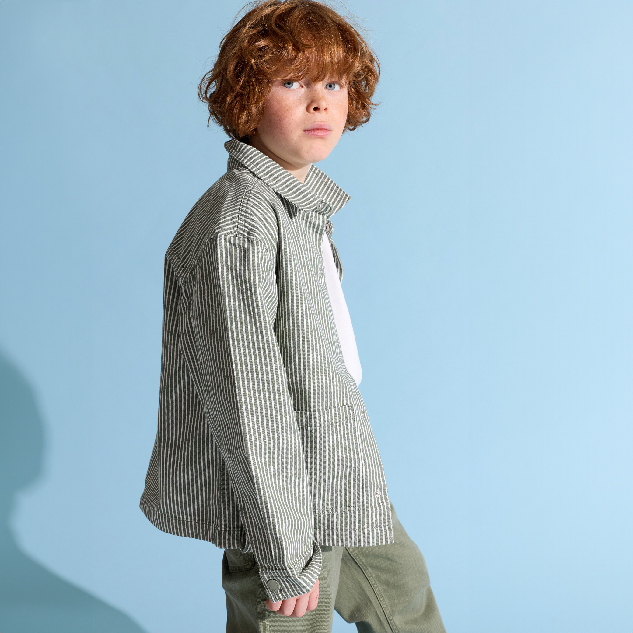 Зелено раирано яке тип риза