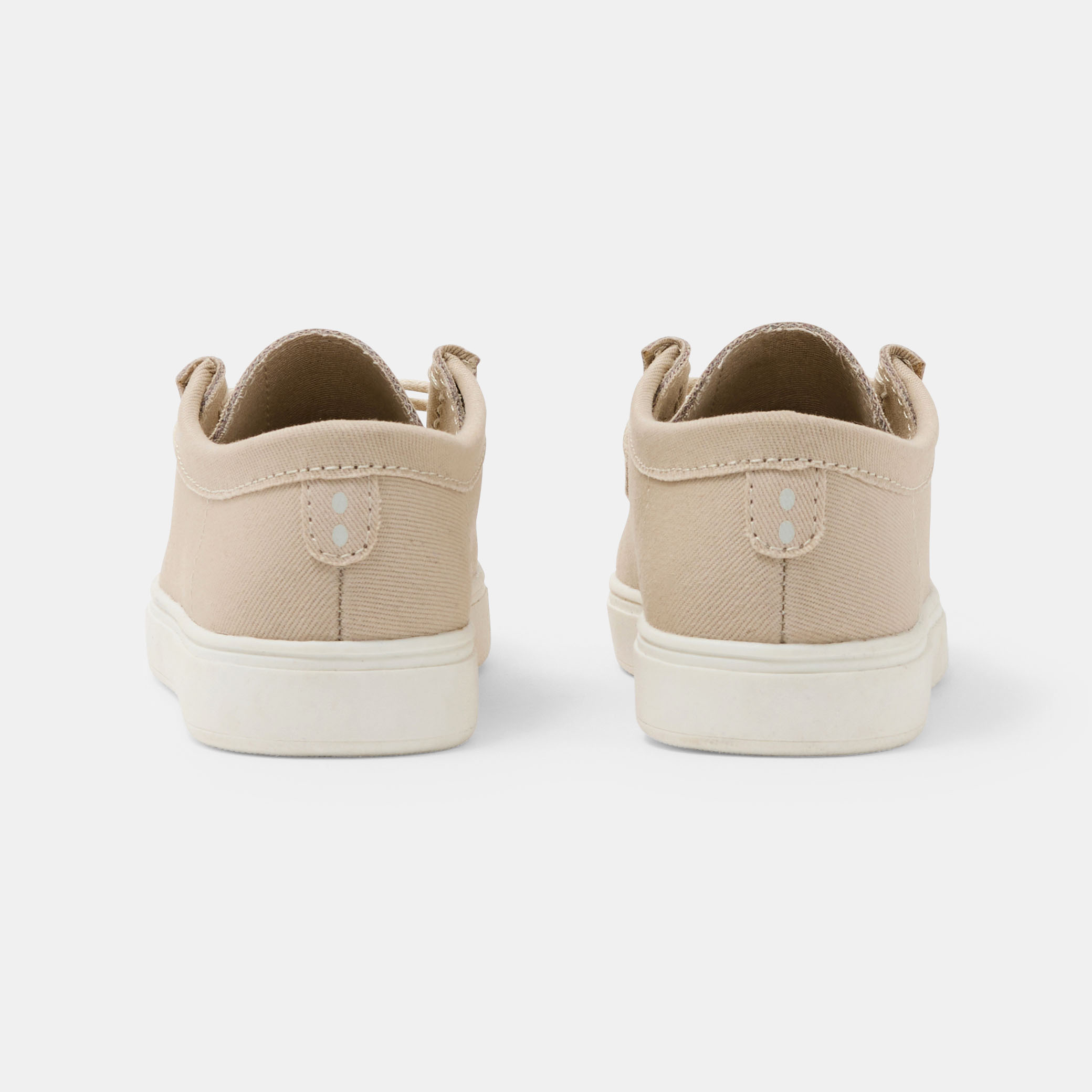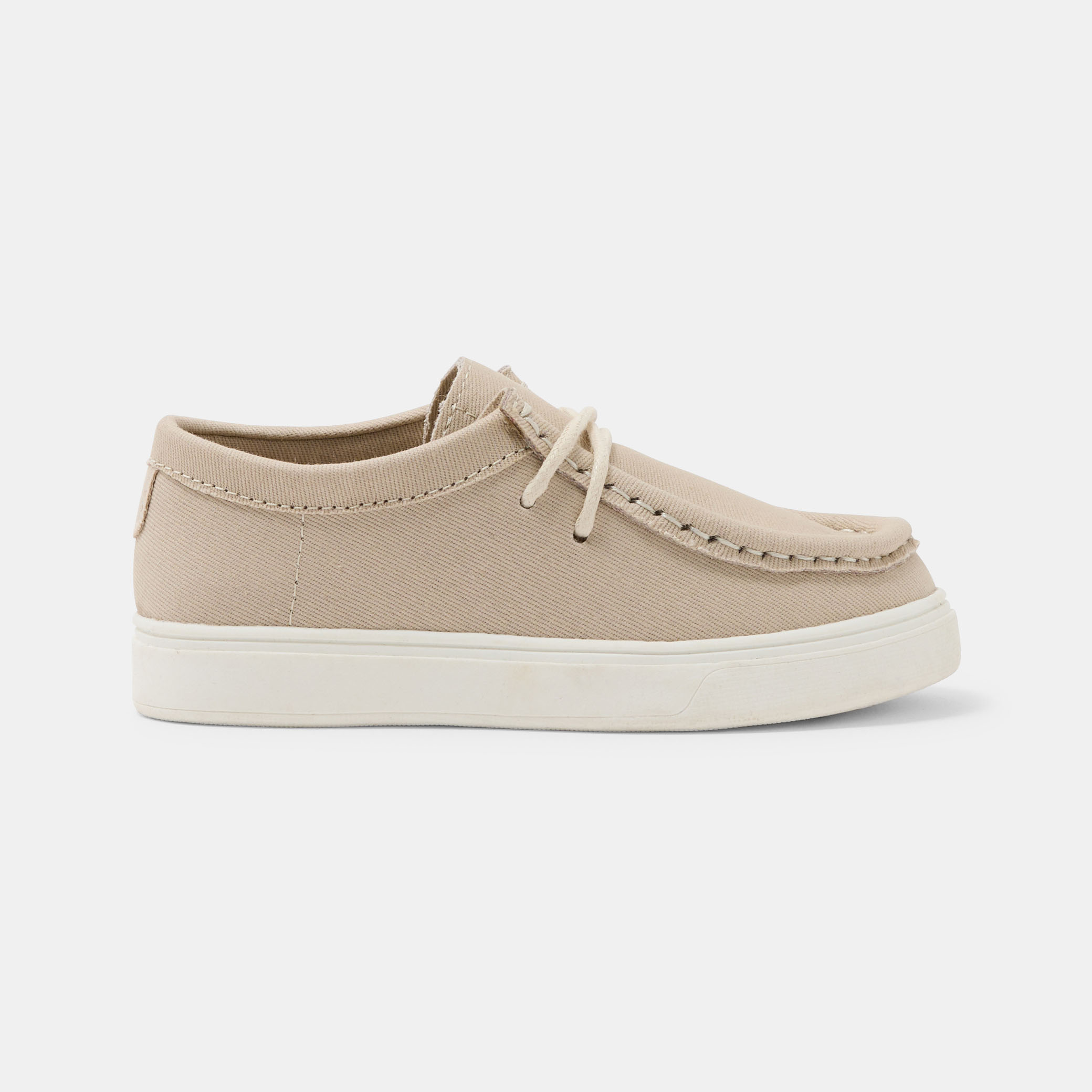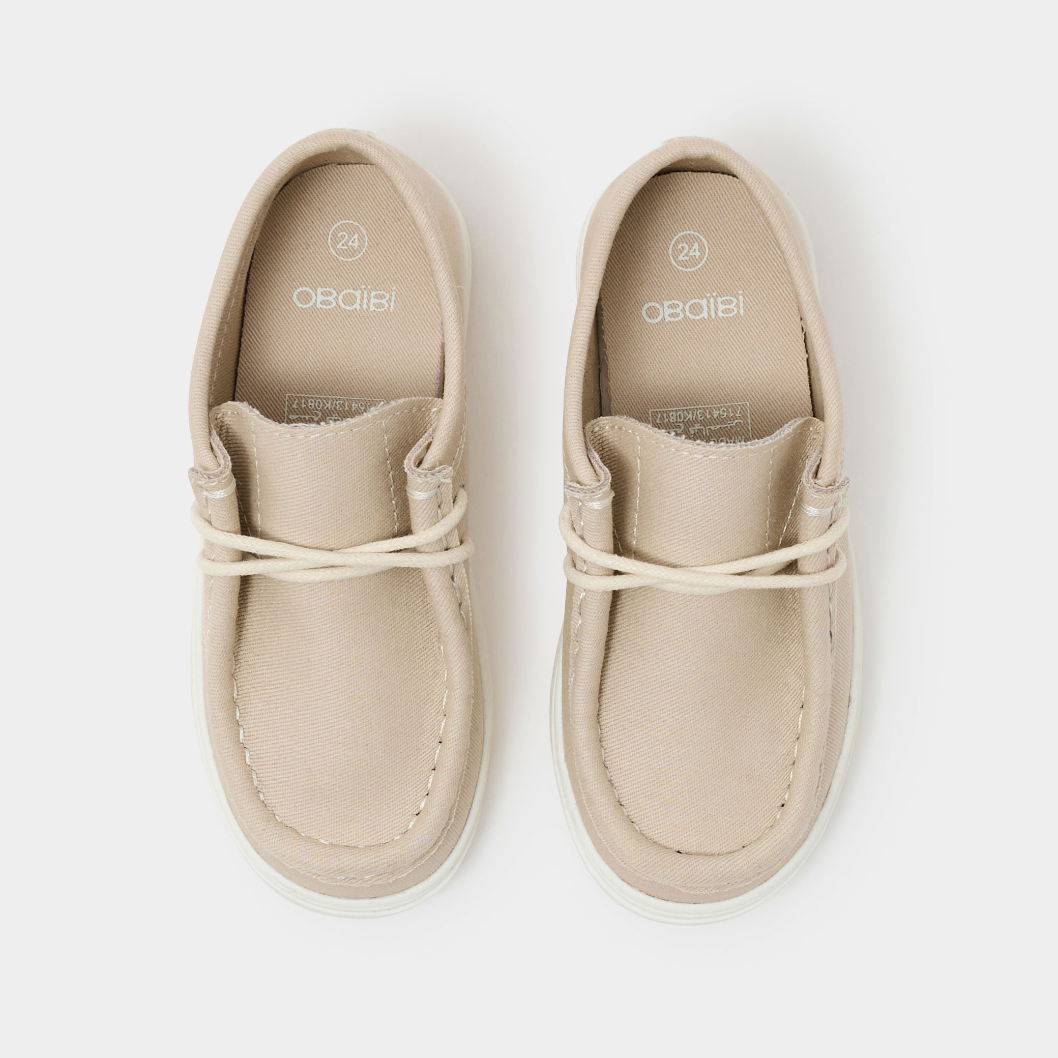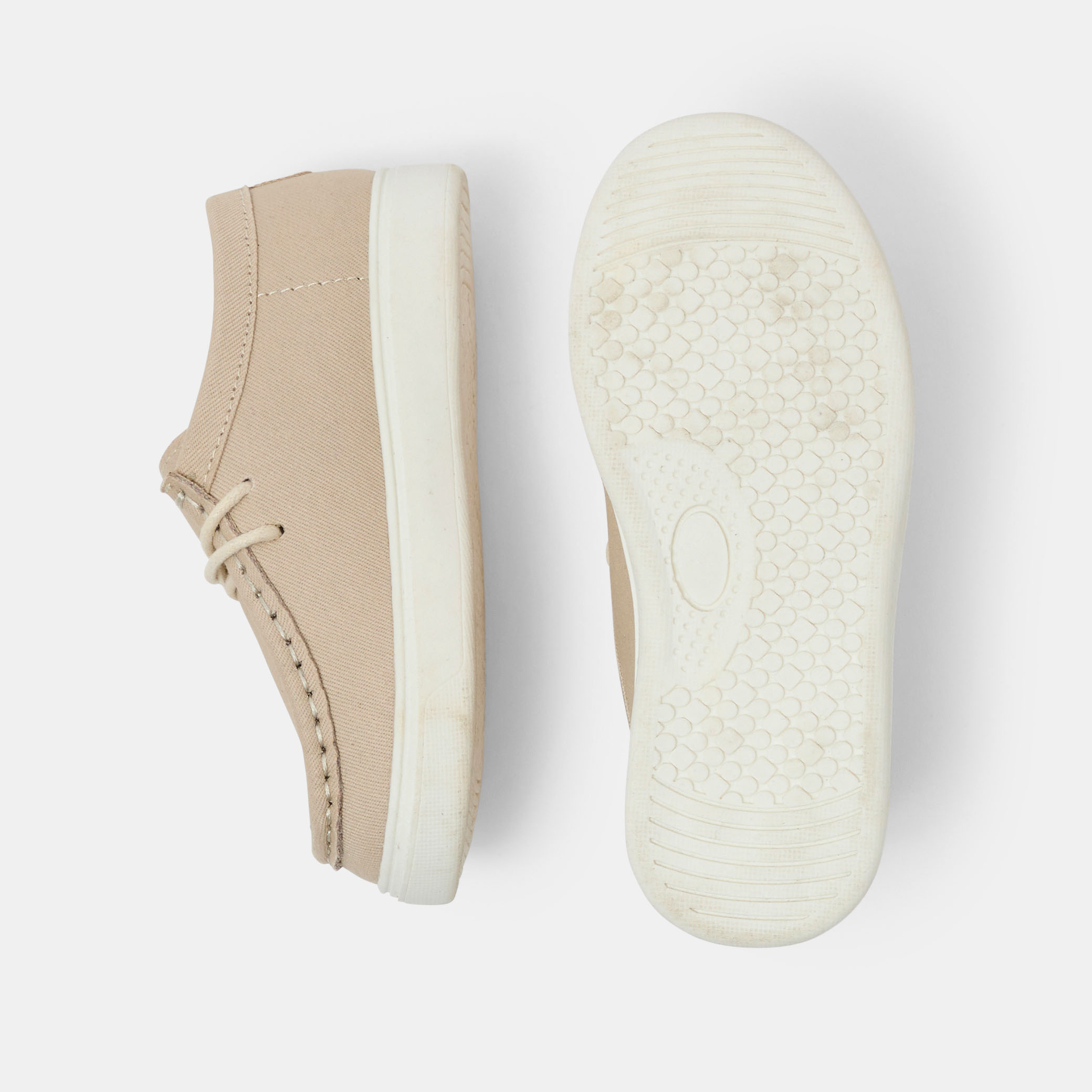 Бежови обувки. Изработени от мек плат с ниско деколте, предлагат оптимален комфорт благодарение на омекотената си стелка. Тънки връзки в тон на обувката за перфектно прилягане. Идеални за ежедневно носене или за небрежни излизания. Гумена подметка за максимално сцепление.