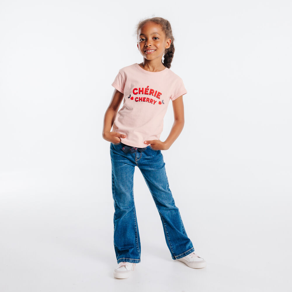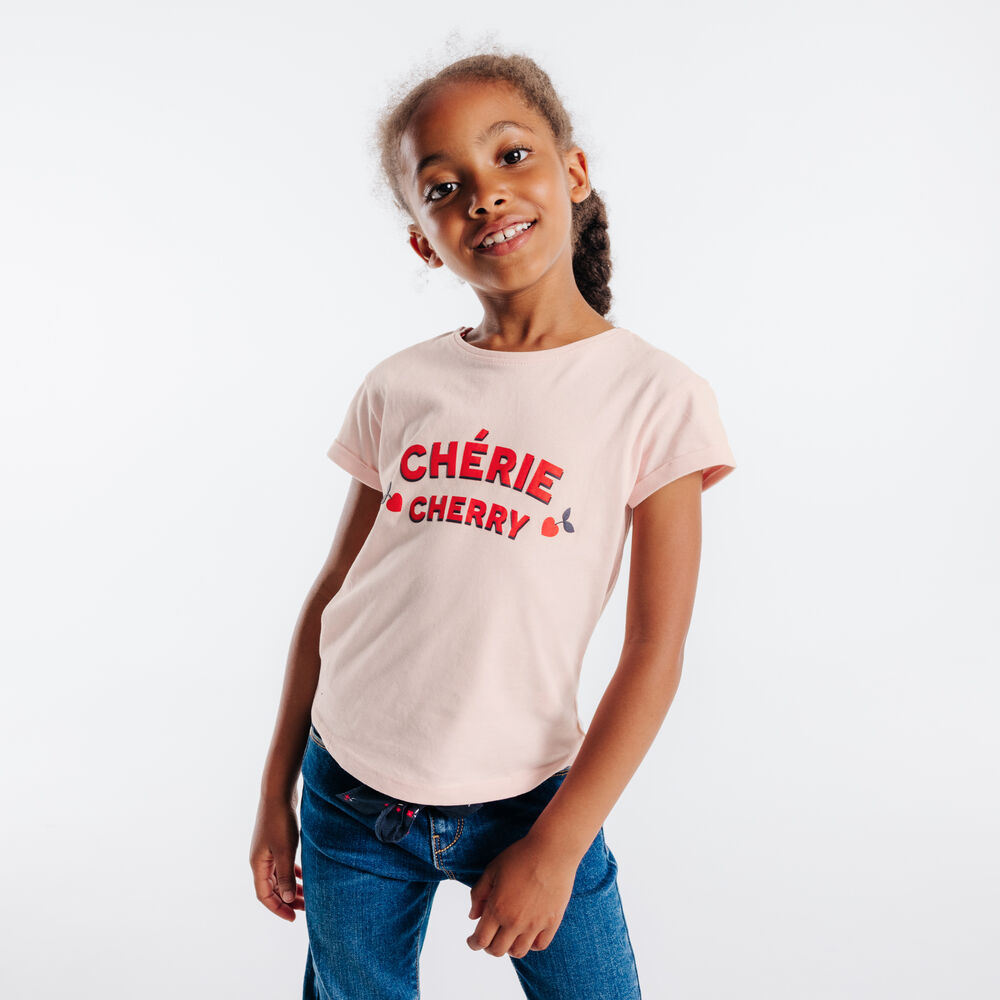 Тениска с къси ръкави в класически модел за момичета. Изработена от памук с обло деколте. Подходяща за комбиниране с дънки, пола, гащеризон и т.н. Атрактивен дизайн с модерен слоган.