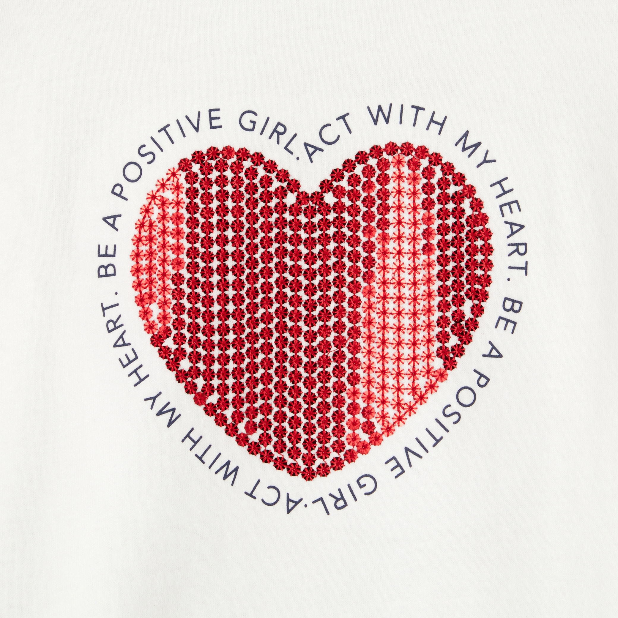 Послание за споделяне с всички. Голямо сърце с бродирани пайети. О, колко подходяща е тази тениска за всички визии на сезона! Меко трико. Права кройка. Обло деколте. Десен отпред, изчистен гръб. Дълги ръкави. Права основа. Тон в тон шевове.