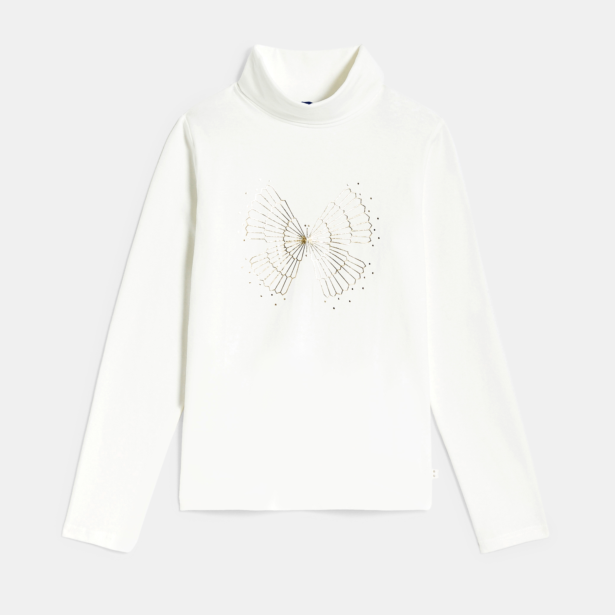 Тениската с дълги ръкави се стреми да направи разлика с блестящата си шарка отпред: красива е! Меко трико. Права кройка. Висока яка. Изчистен гръб. Права основа. Тон в тон шевове.