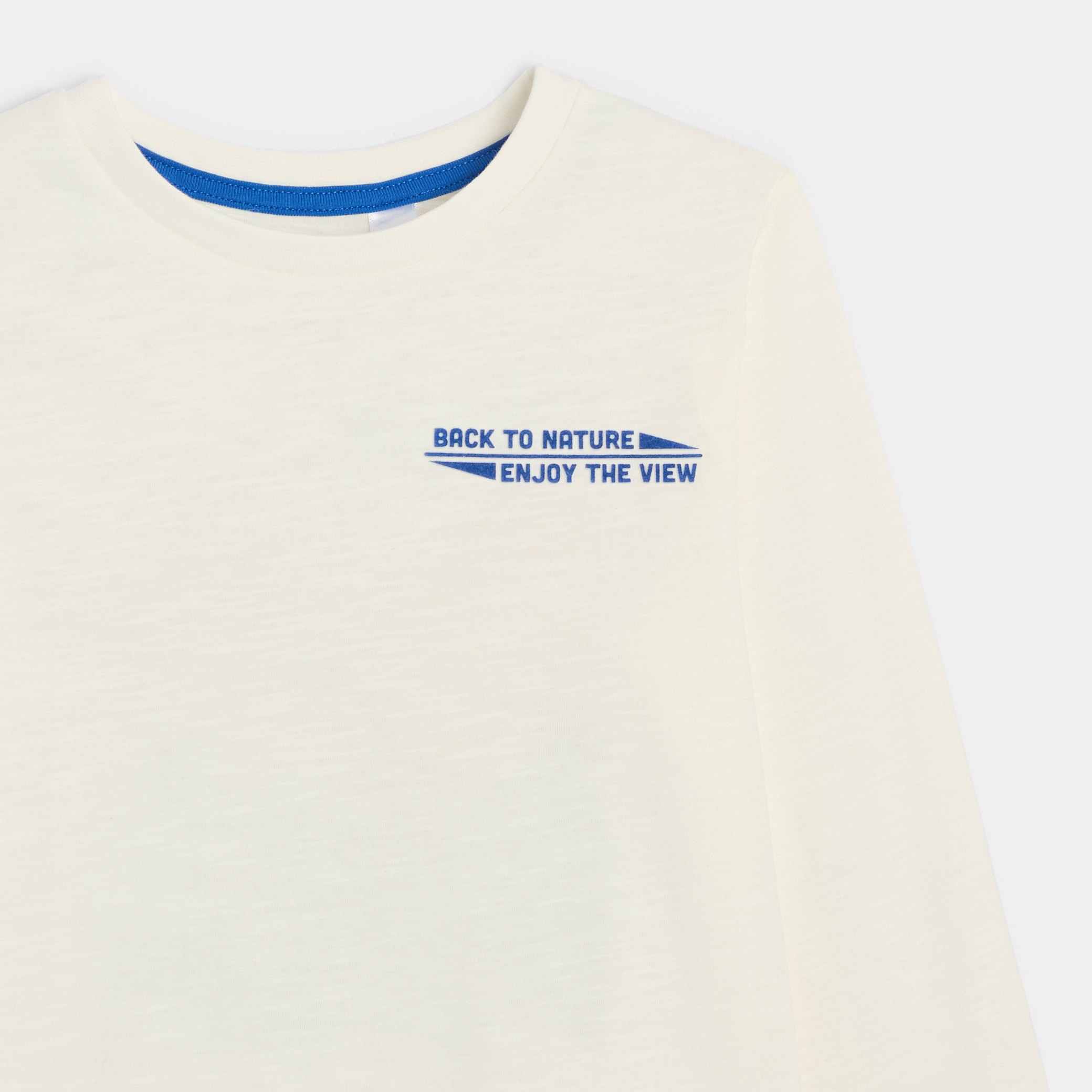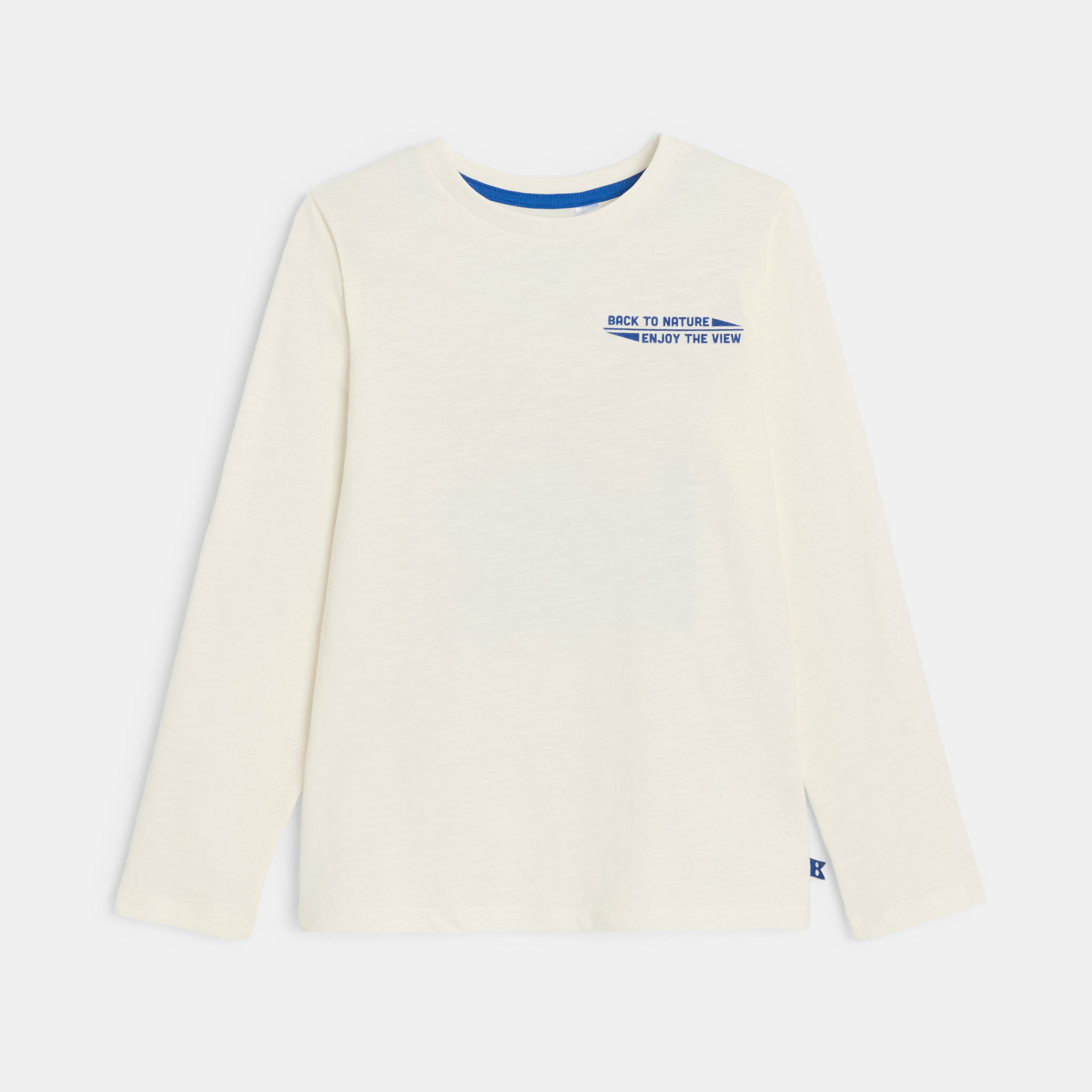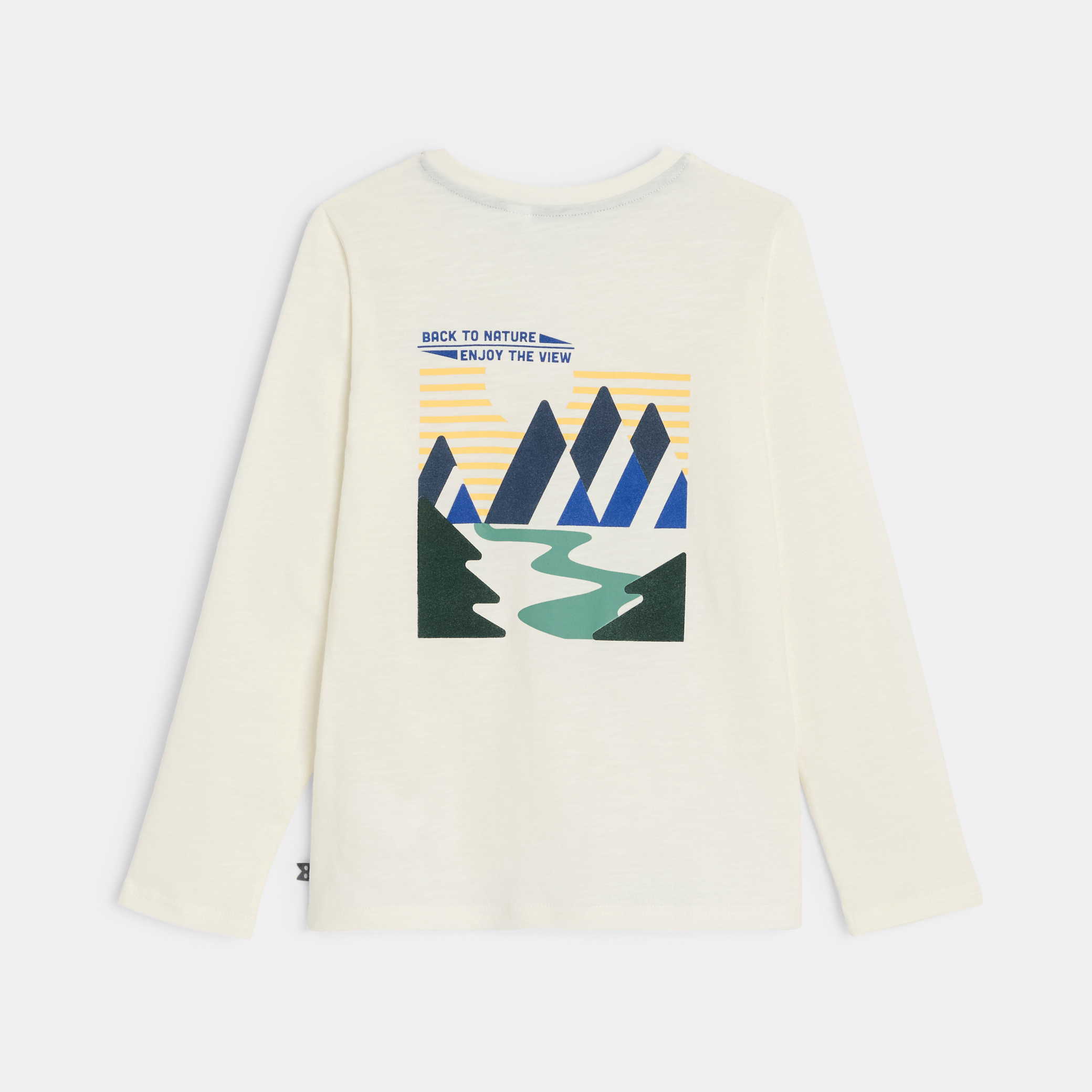 Бяла тениска с дълъг ръкав и мотив на гърба