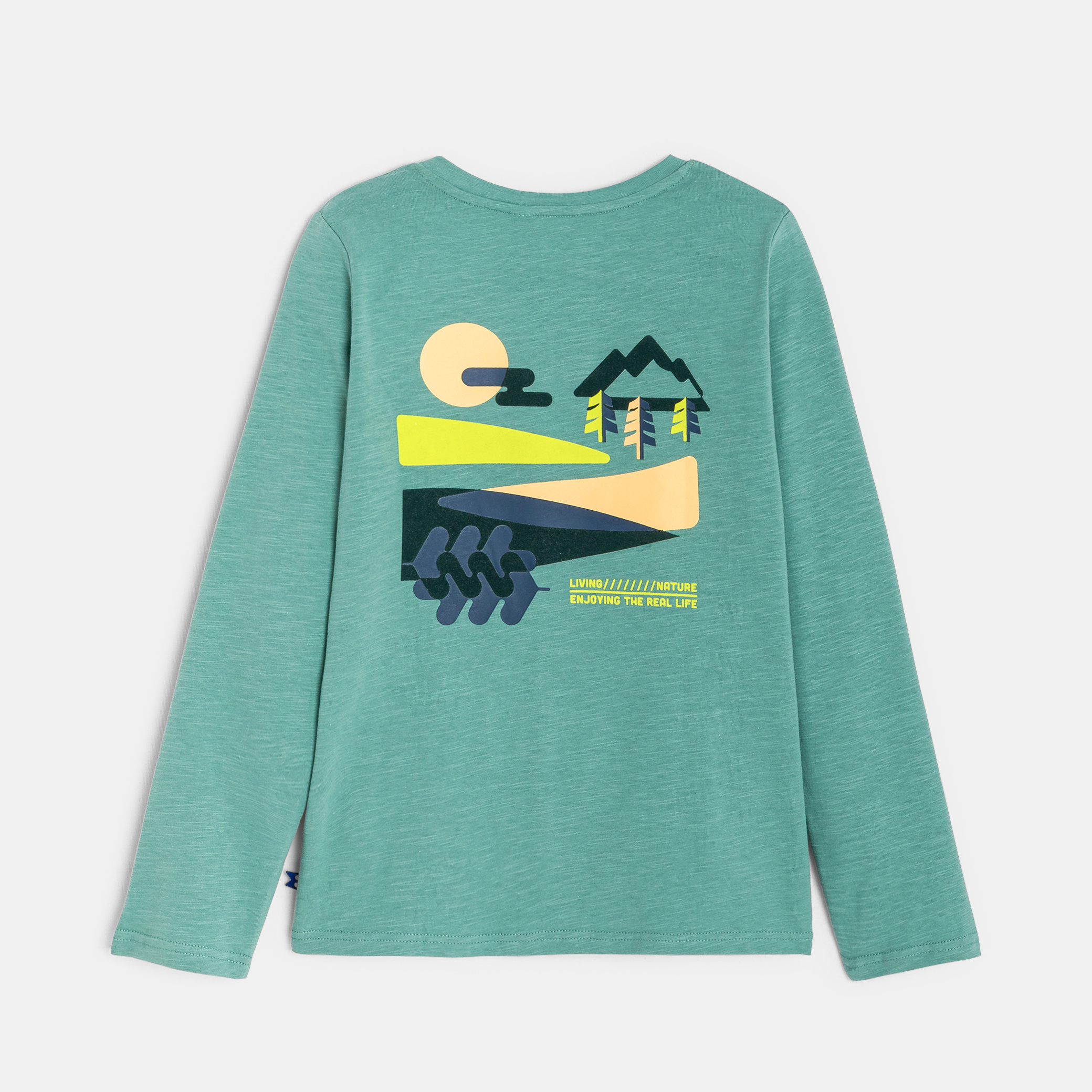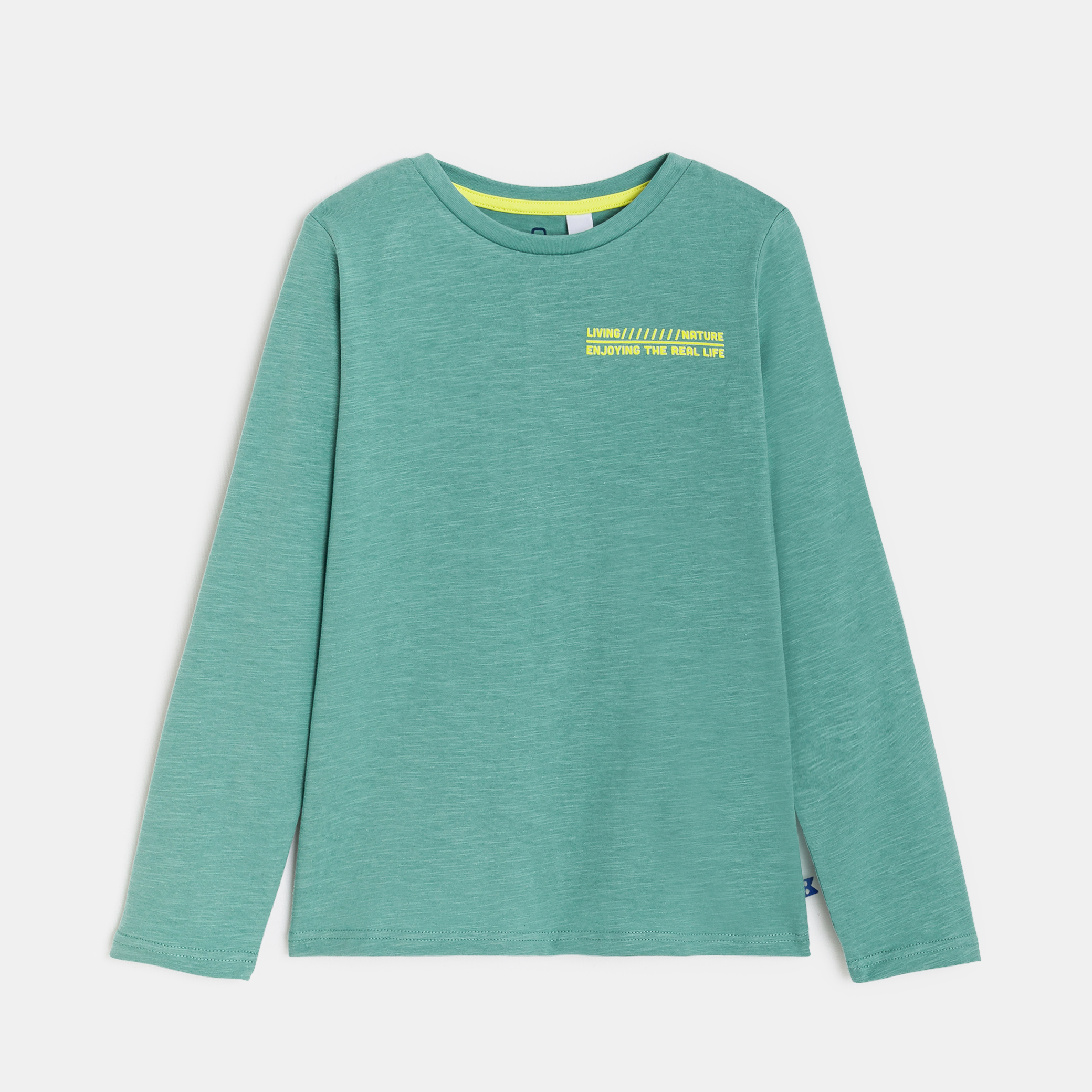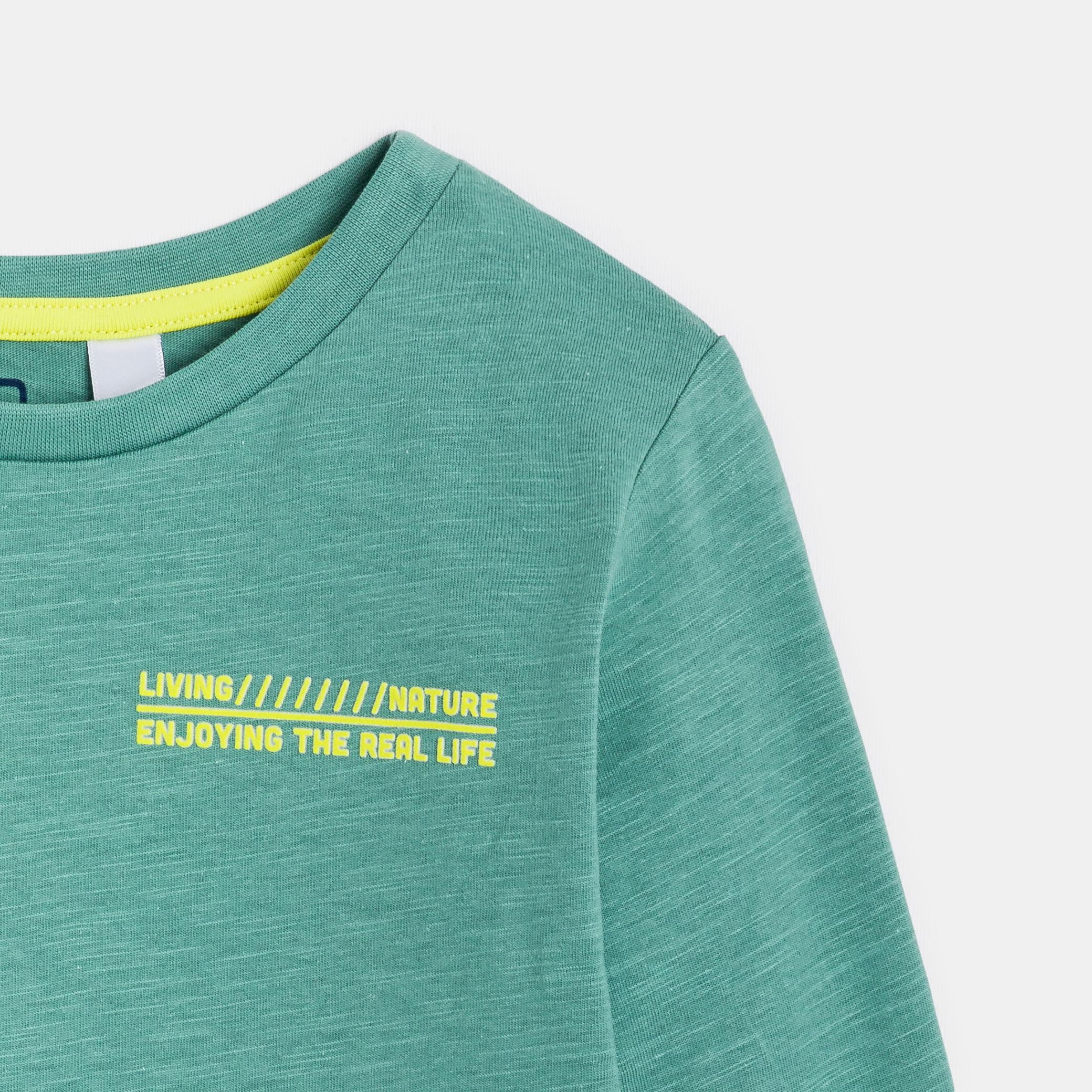 Зелена тениска с надпис и щампа
